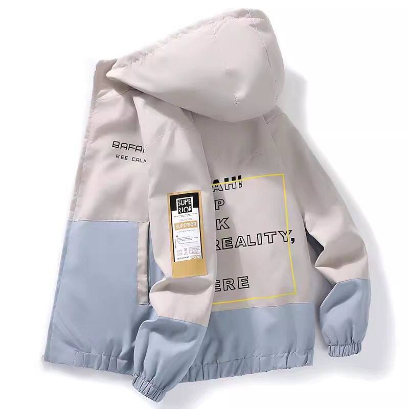Осенняя демисезонная куртка, ветрозащитная толстовка с капюшоном для отдыха для школьников, оверсайз