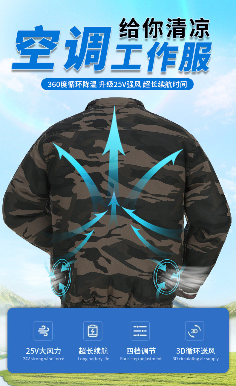 Летний охлаждающий дорожный вентилятор для работы, мужская камуфляжная куртка