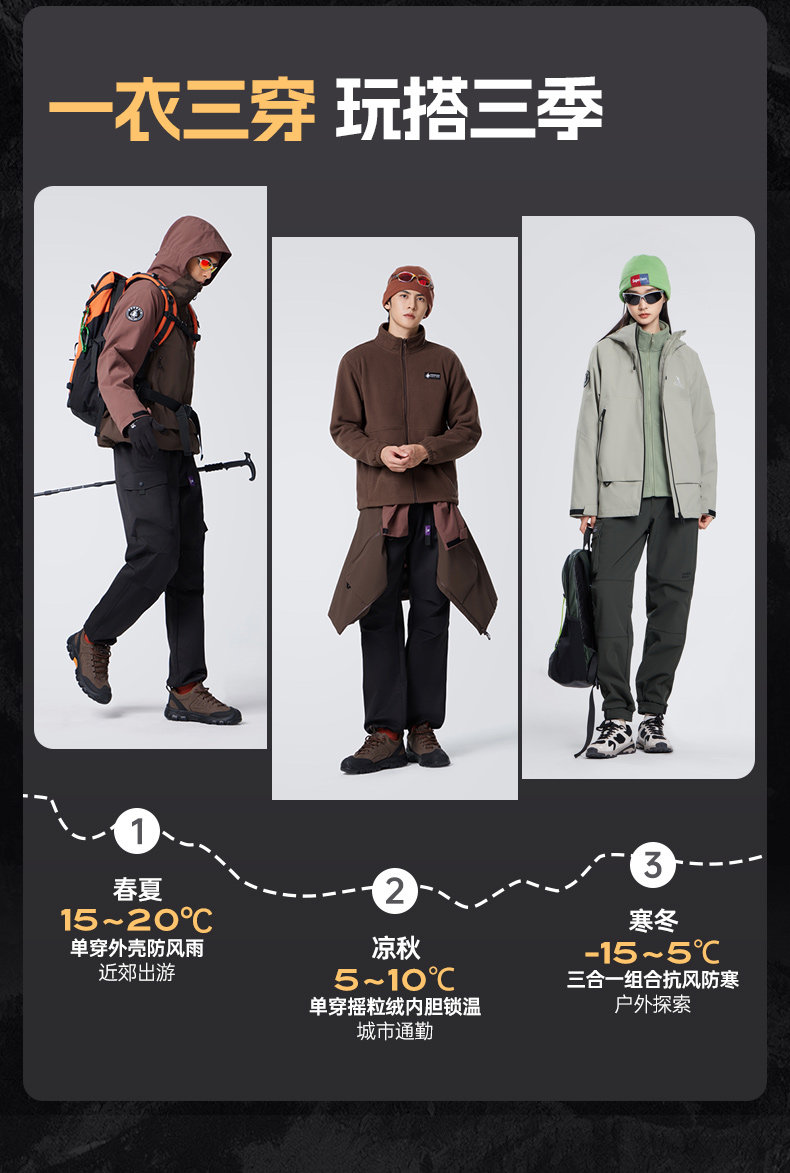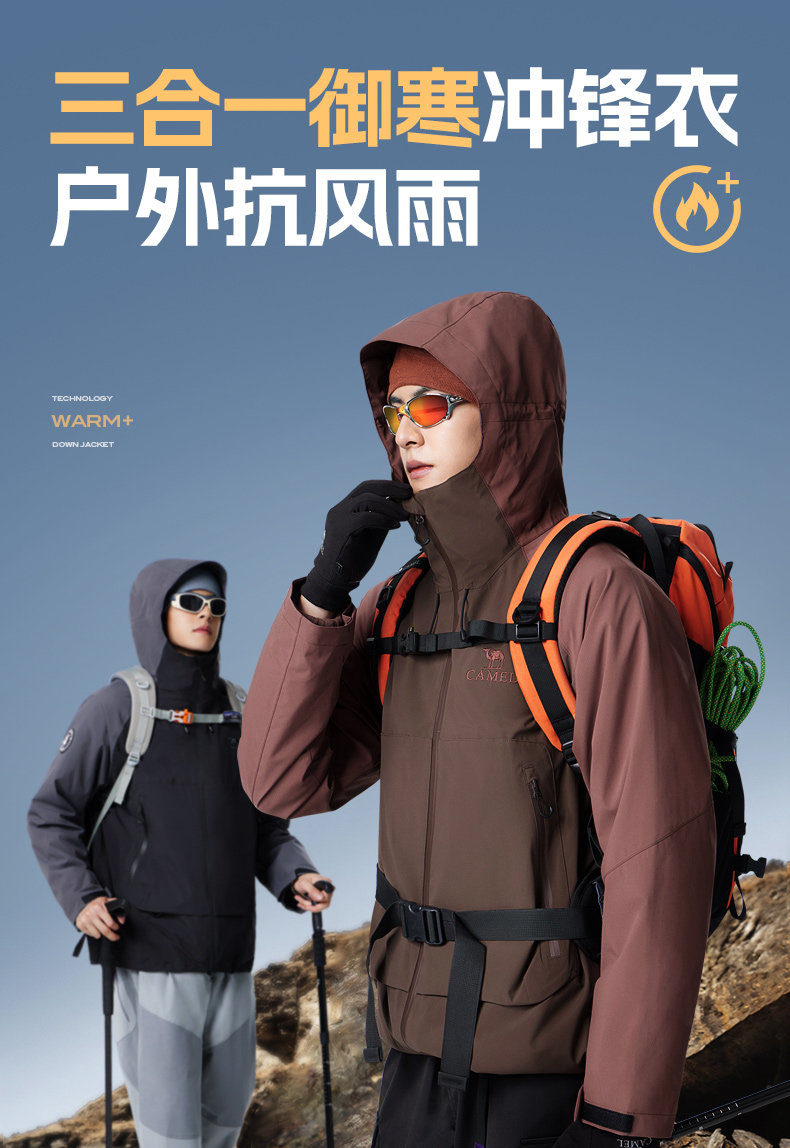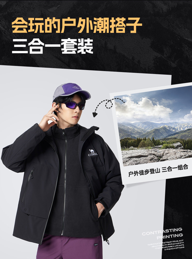 Съемная ветрозащитная водонепроницаемая альпинистская мужская куртка подходит для мужчин и женщин, «три в одном»