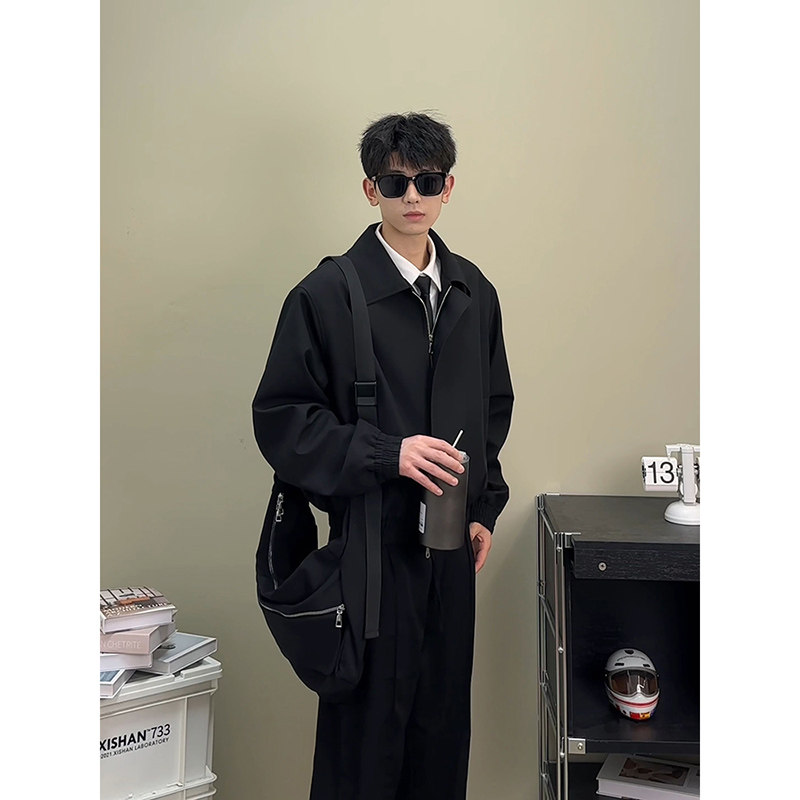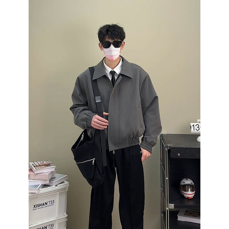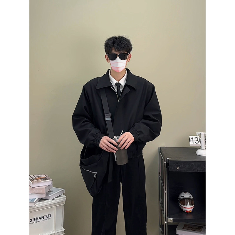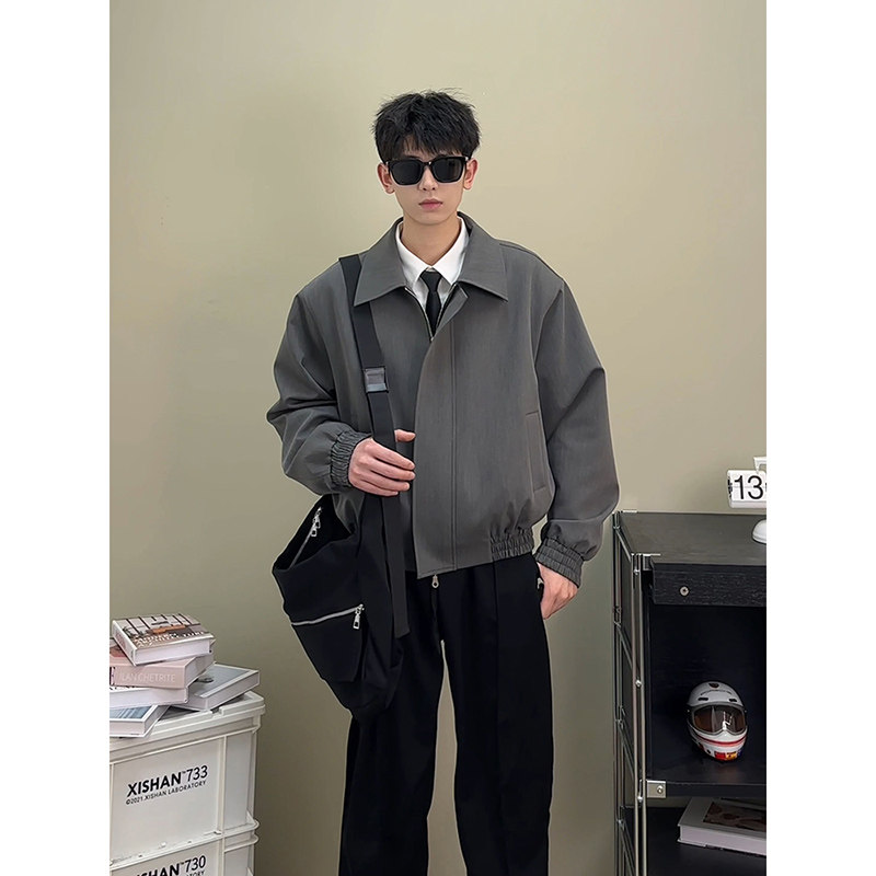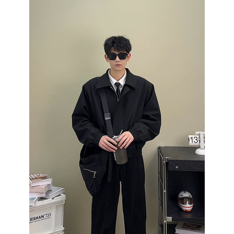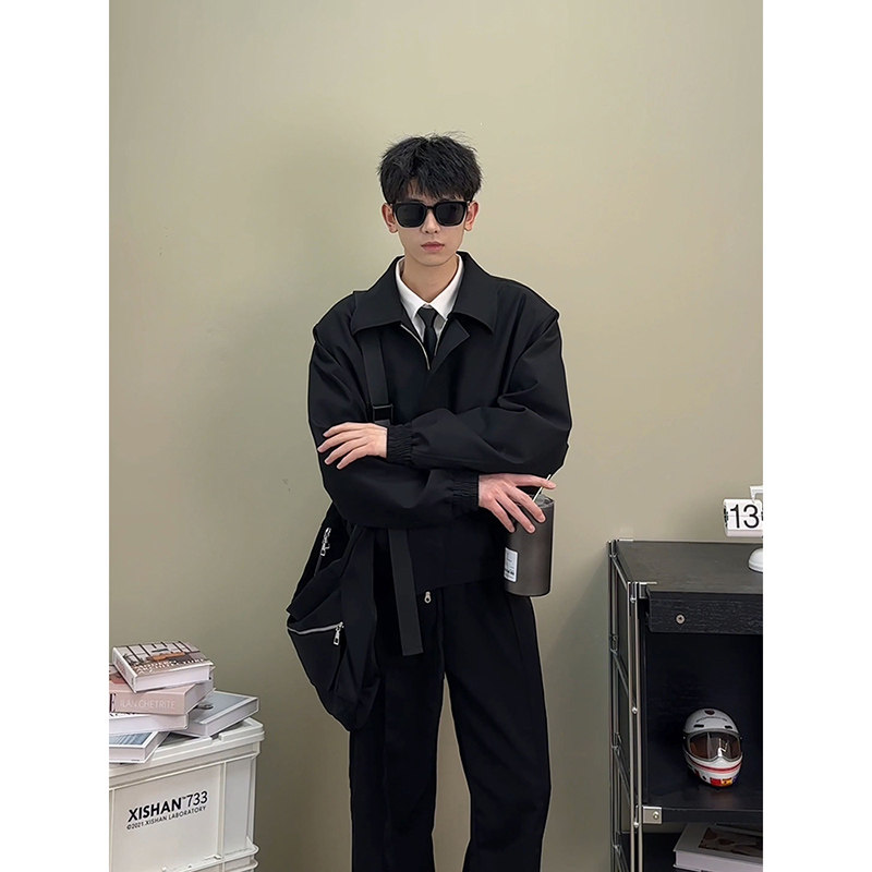 Осенняя куртка, короткий костюм, бейсбольные наплечники, форма, в американском стиле, мужской стиль