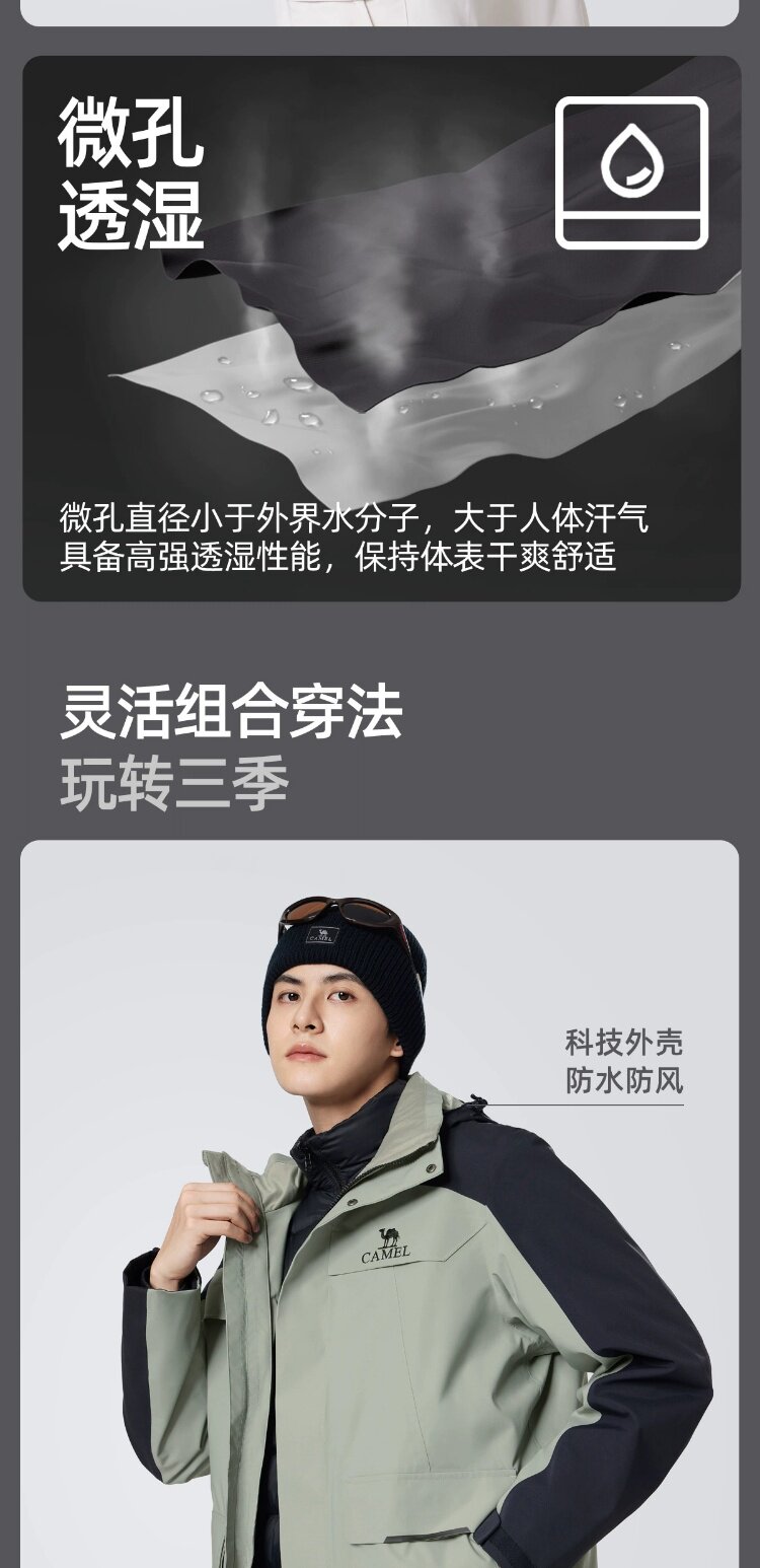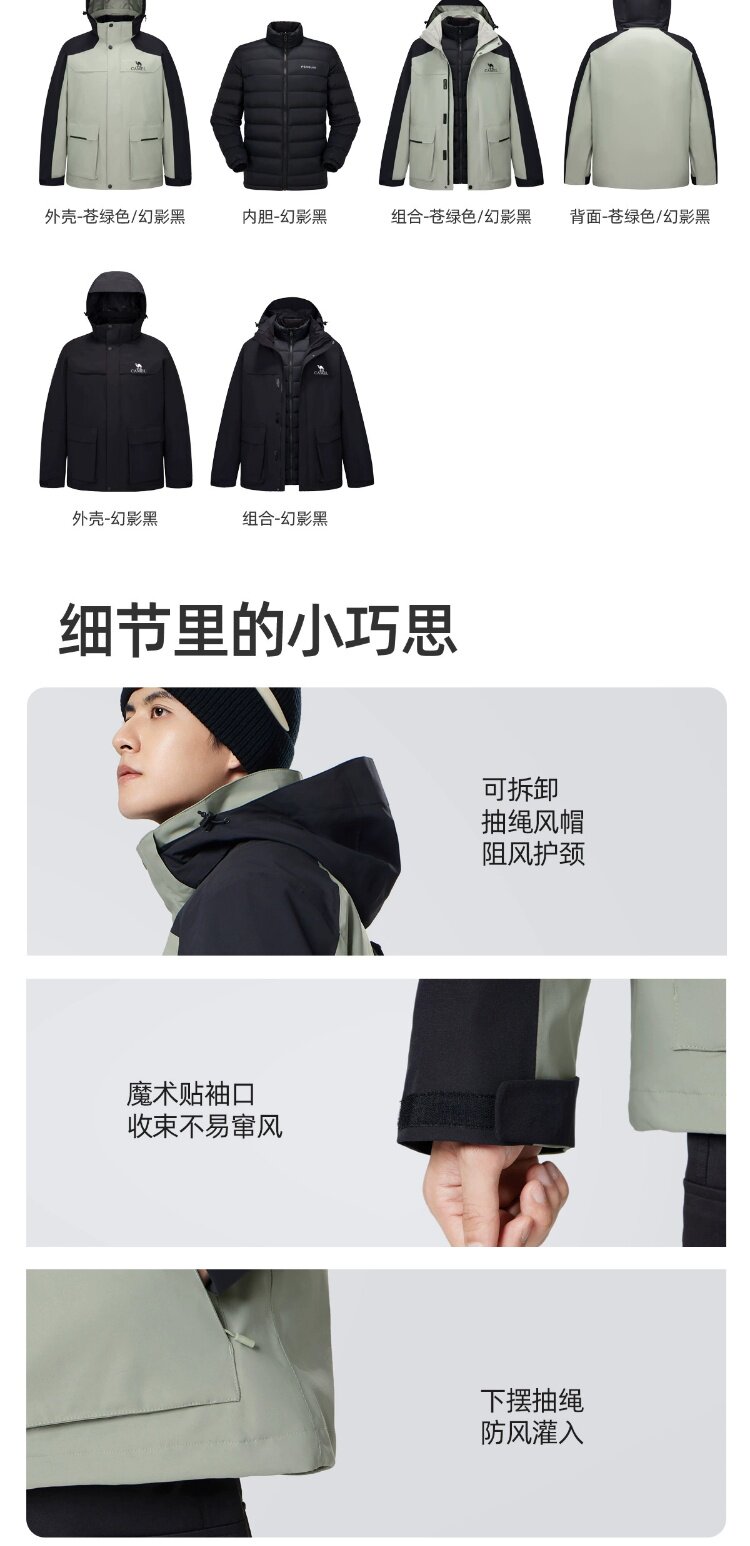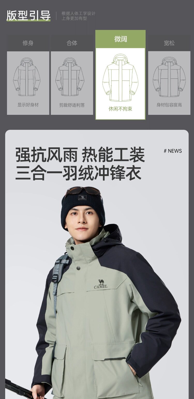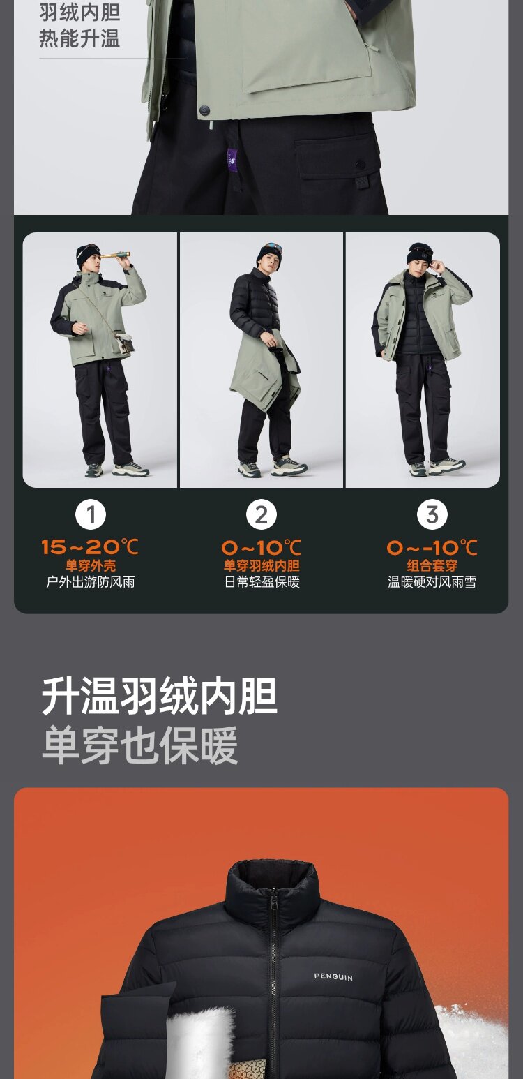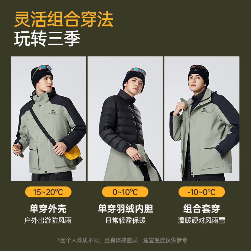 Демисезонная альпинистская мужская куртка с пухом, «три в одном», увеличенная толщина