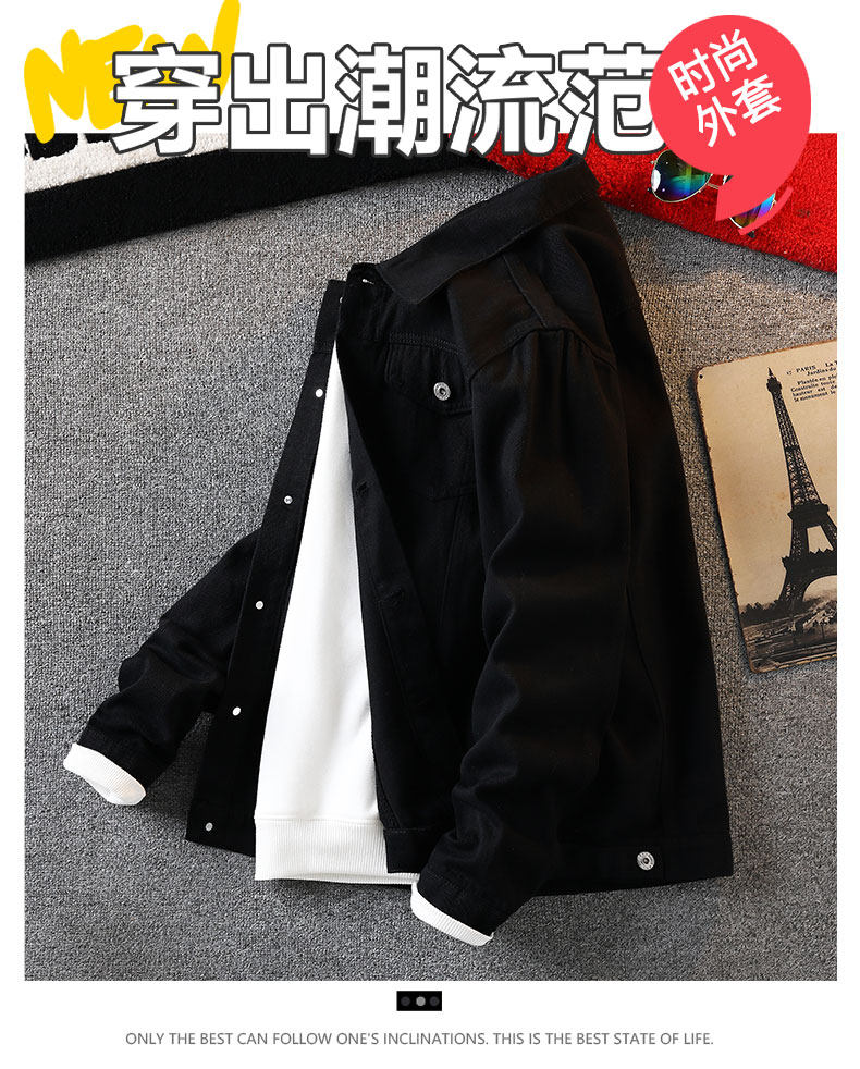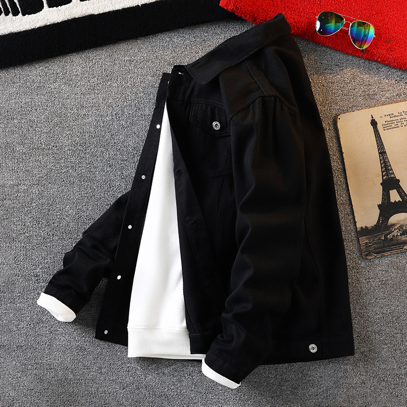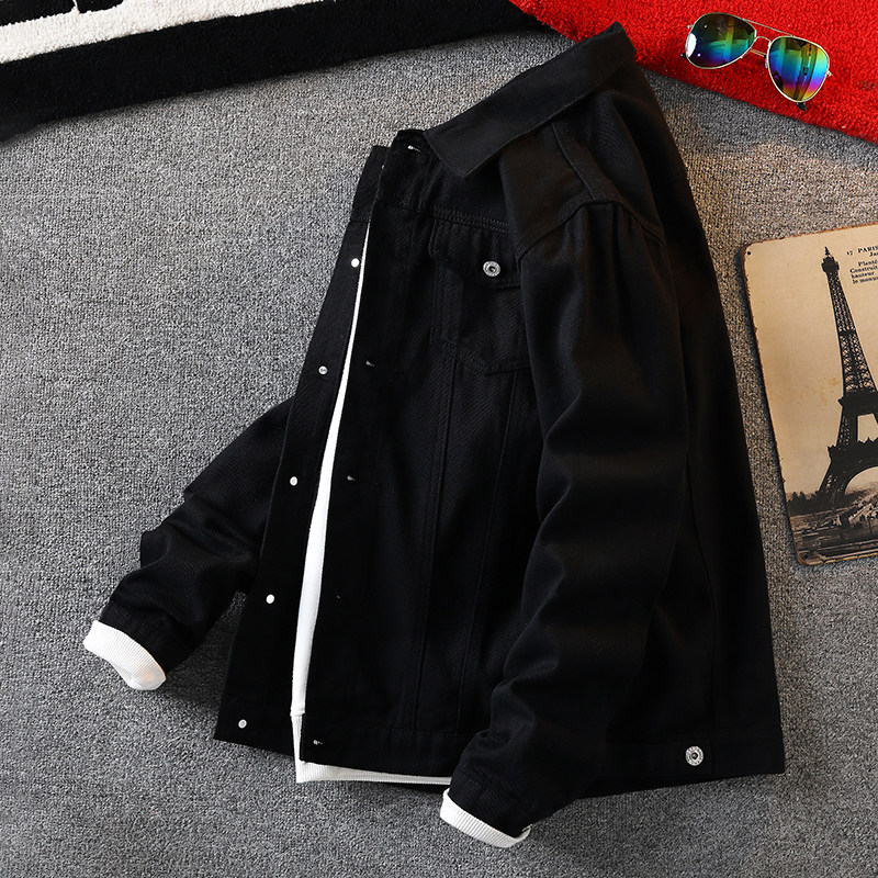 Мужская весенняя джинсовая осенняя черная куртка, в корейском стиле, в американском стиле