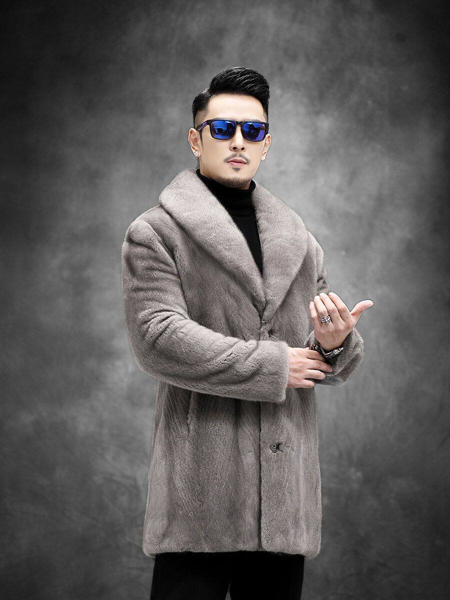 Норковая шуба, мужская осенне-зимняя норковая шуба средней длины, большой меховой воротник, шуба из енота большого размера