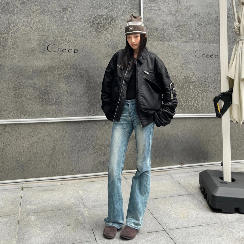 Короткий бомбер широкого кроя Американский повседневный стиль и унисекс.