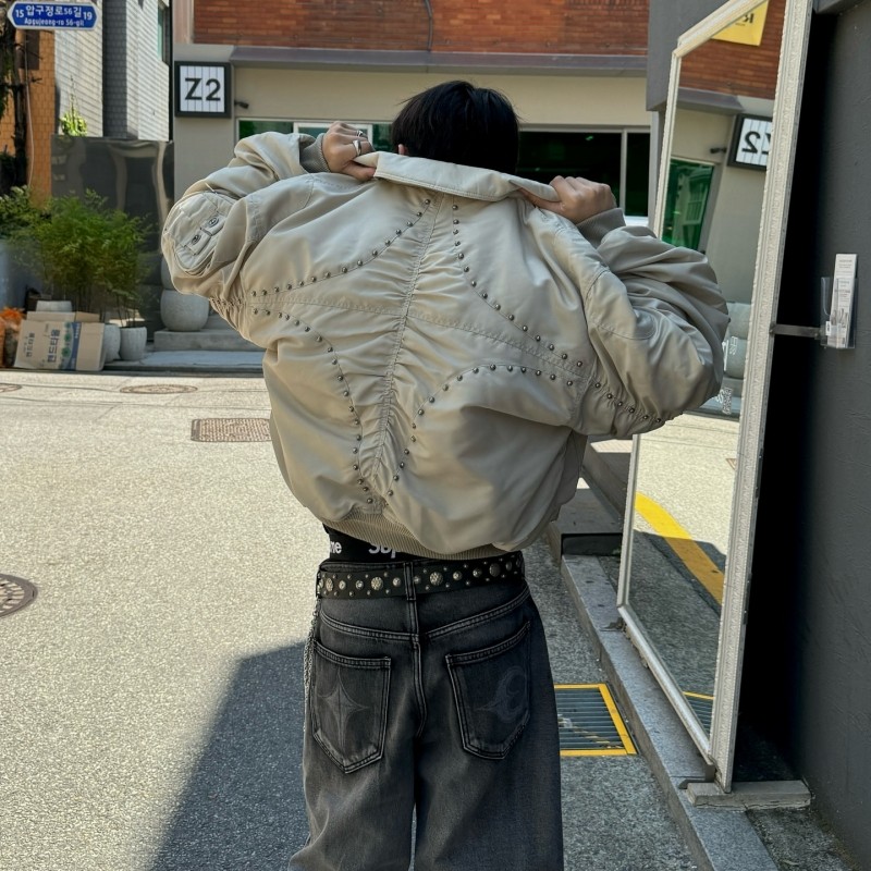 Летная куртка-бомбер с заклепками Thug Club, хлопковая куртка, американская осенне-зимняя тяжелая повседневная куртка