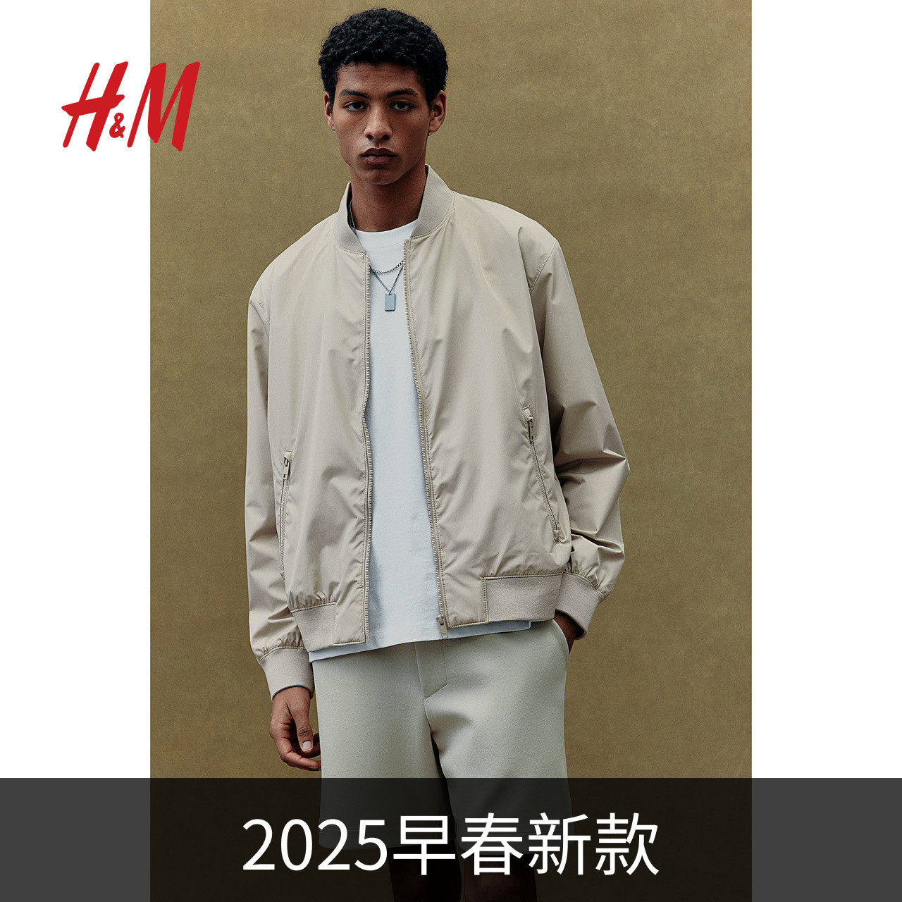 Мужская легкая куртка-бомбер стандартного кроя HM, весенняя новинка 2025 г., 1257561