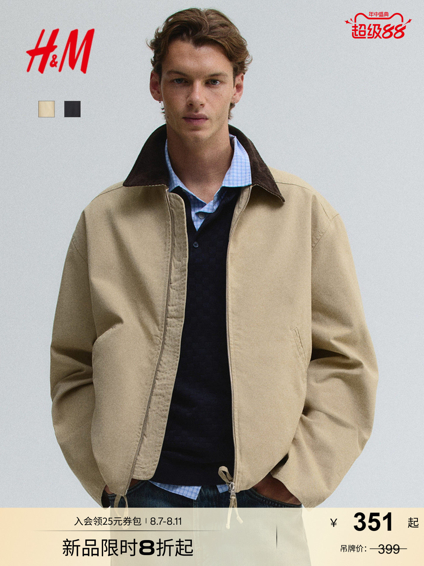 Hm2025 новая осенняя мужская стандартная куртка 1286496