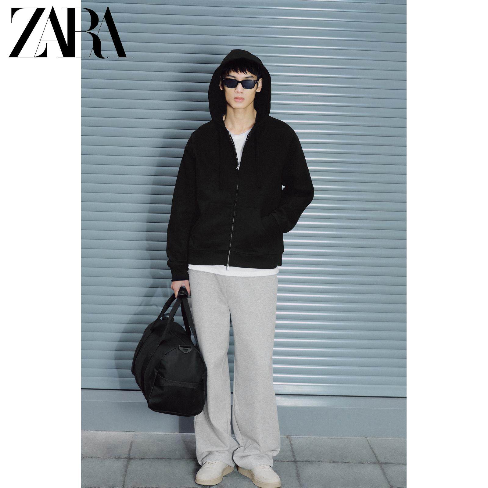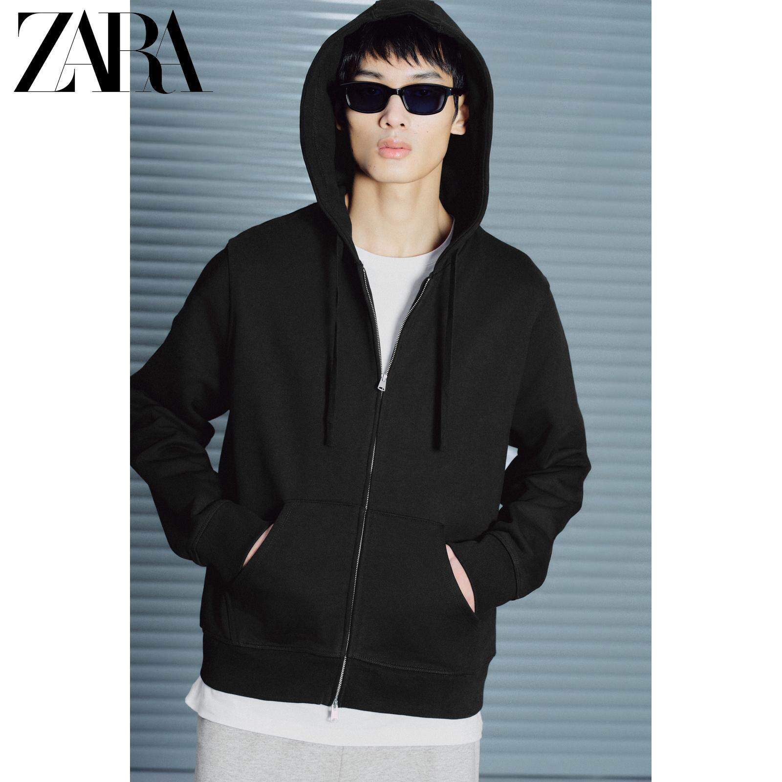 ZARA [Происхождение] Мужская свободная толстовка из плотного хлопка с капюшоном и двойной молнией 4393400 800