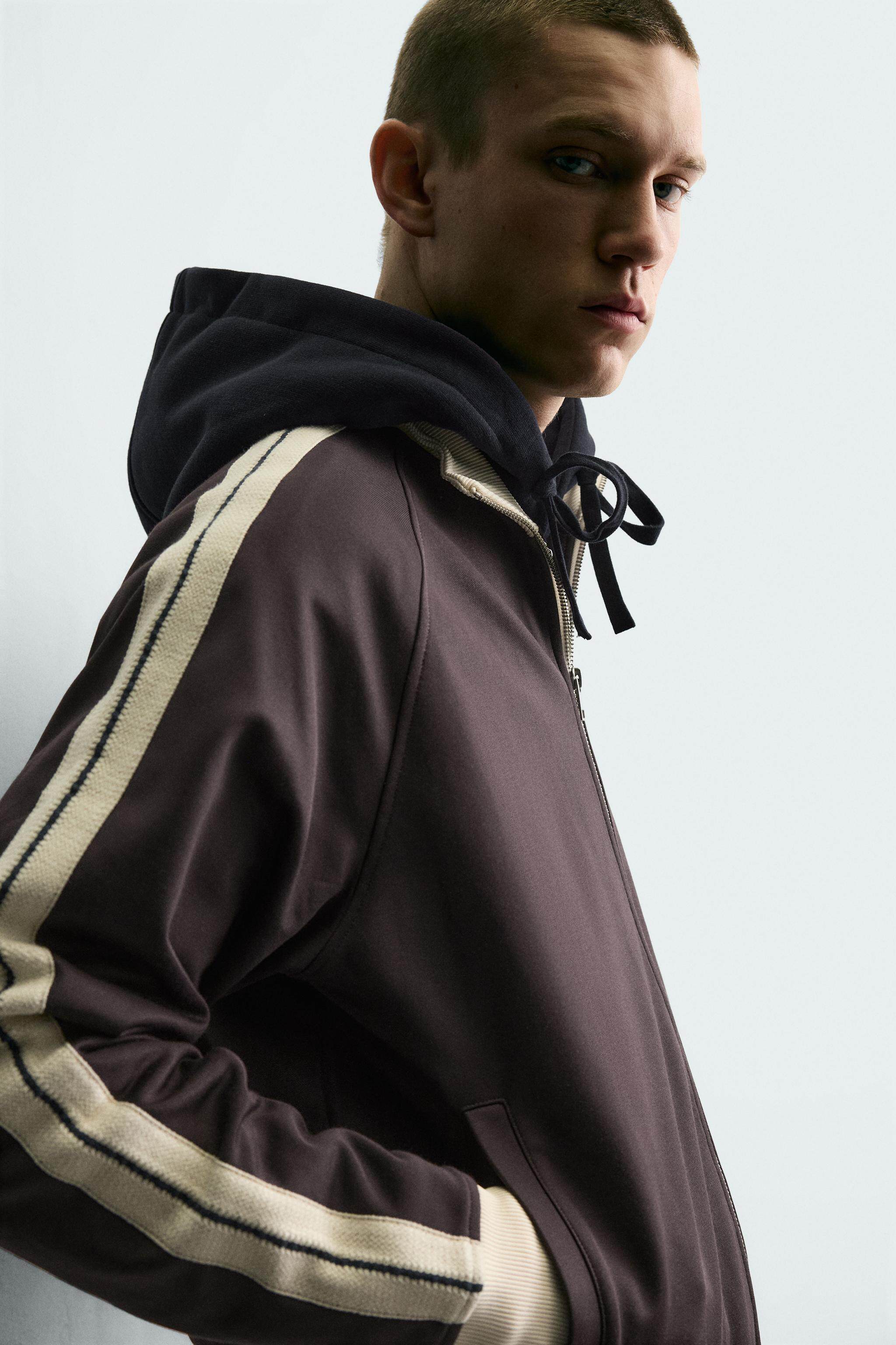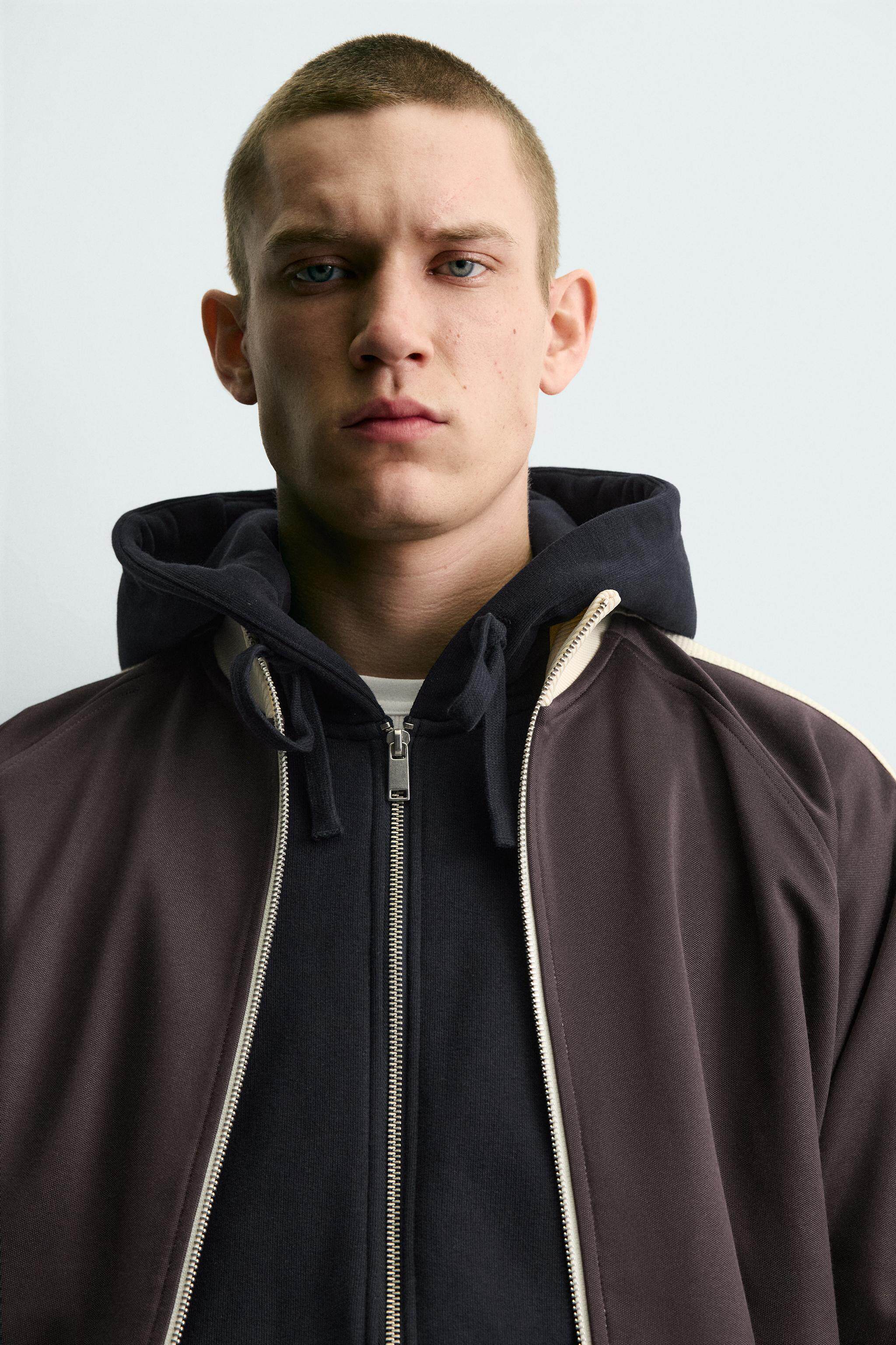 ZARA Новое поступление весны и лета 2026, мужская свободная толстовка в полоску на молнии с воротником-стойкой 0526305 686