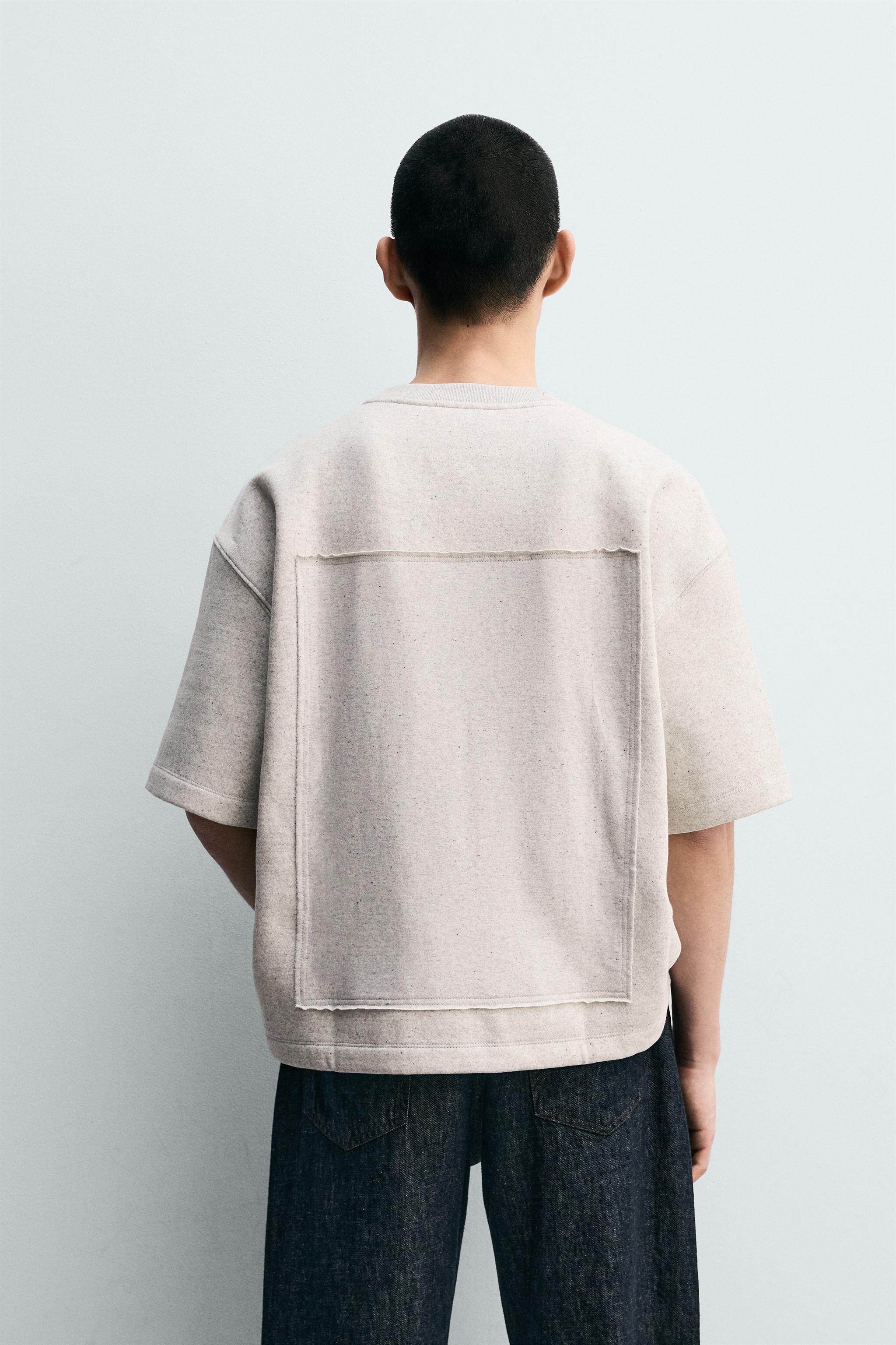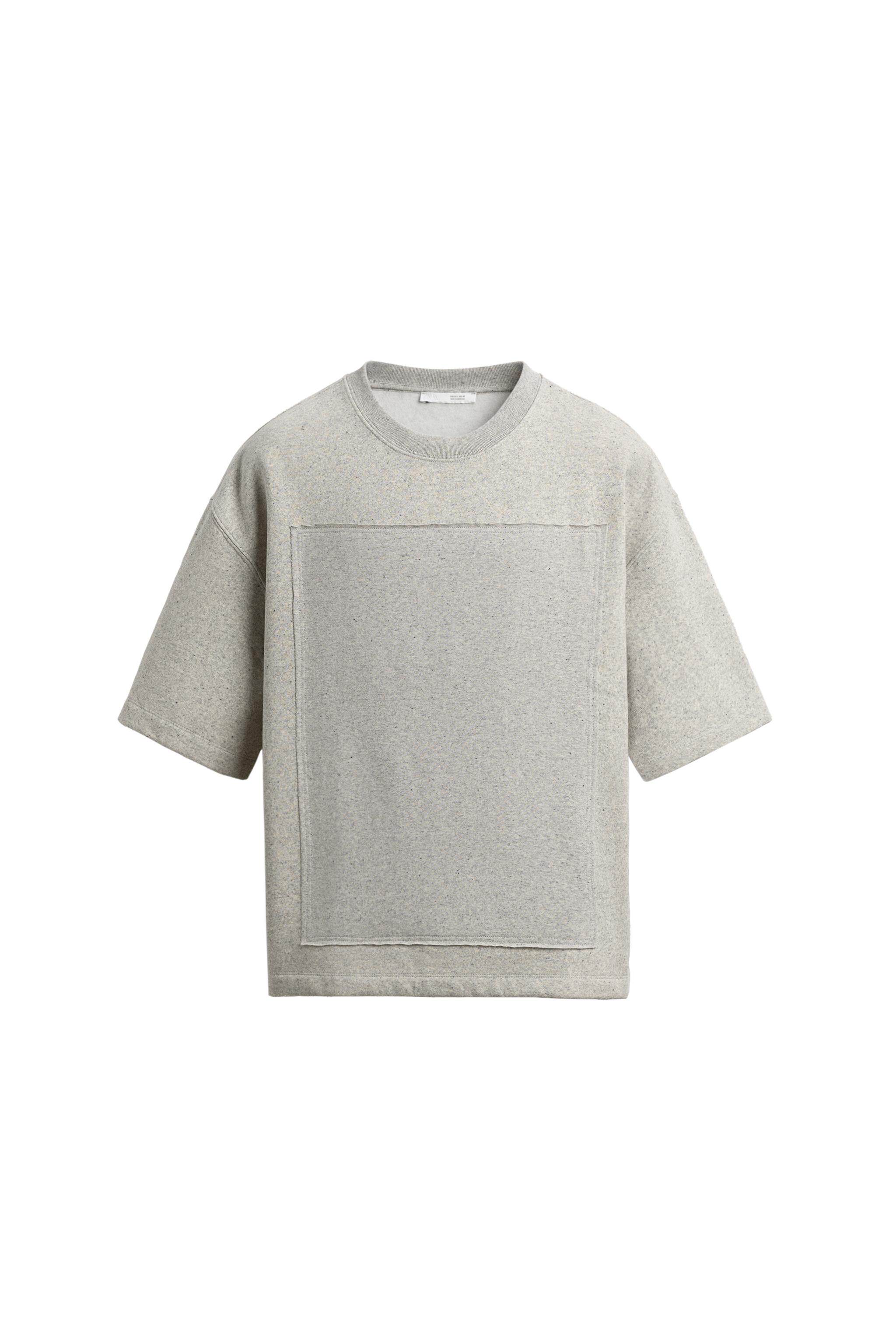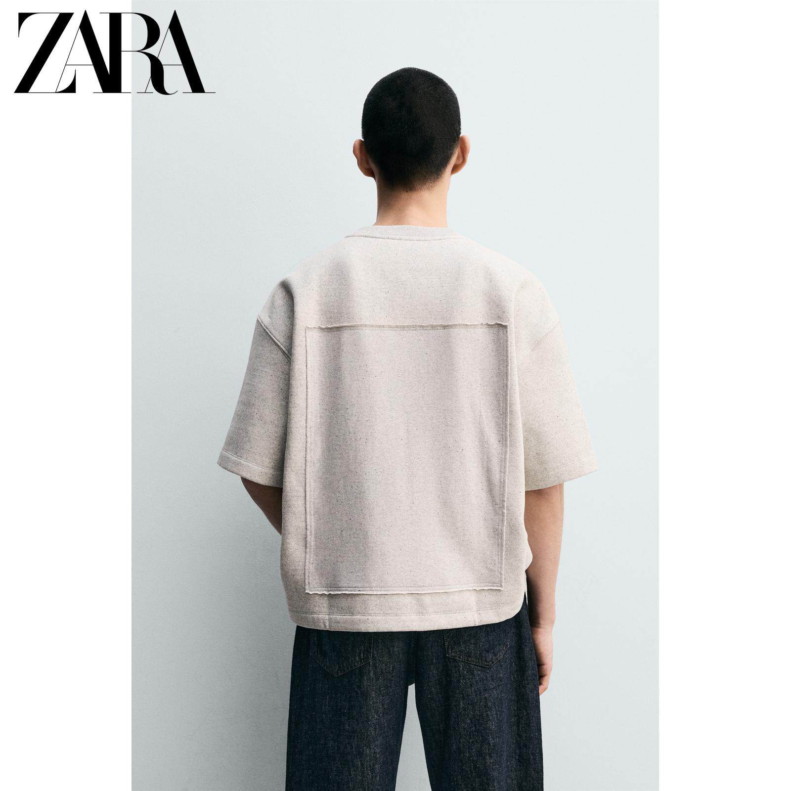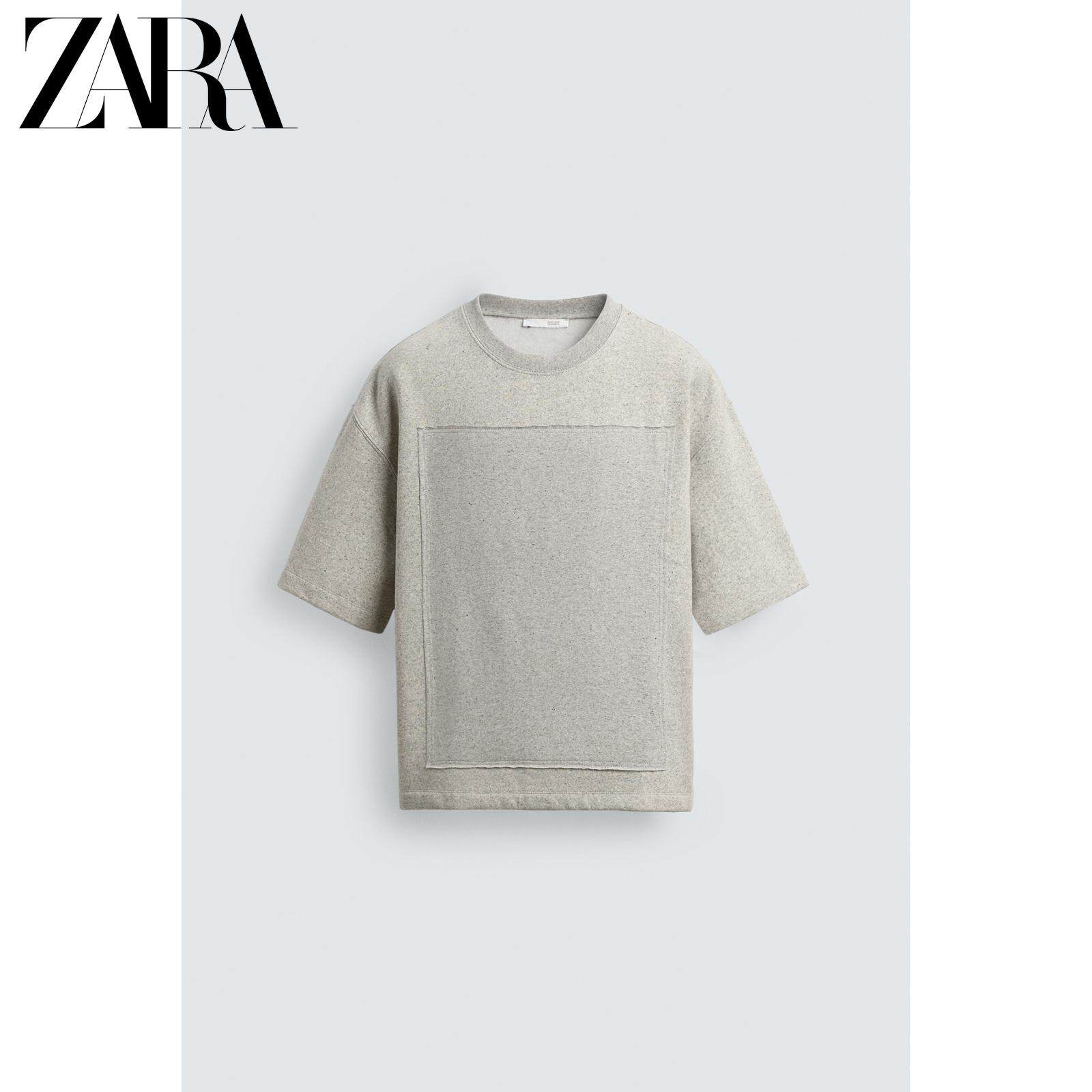 ZARA Новое поступление весны и лета 2026, мужская свободная лоскутная толстовка с круглым вырезом и короткими рукавами 5644465 803