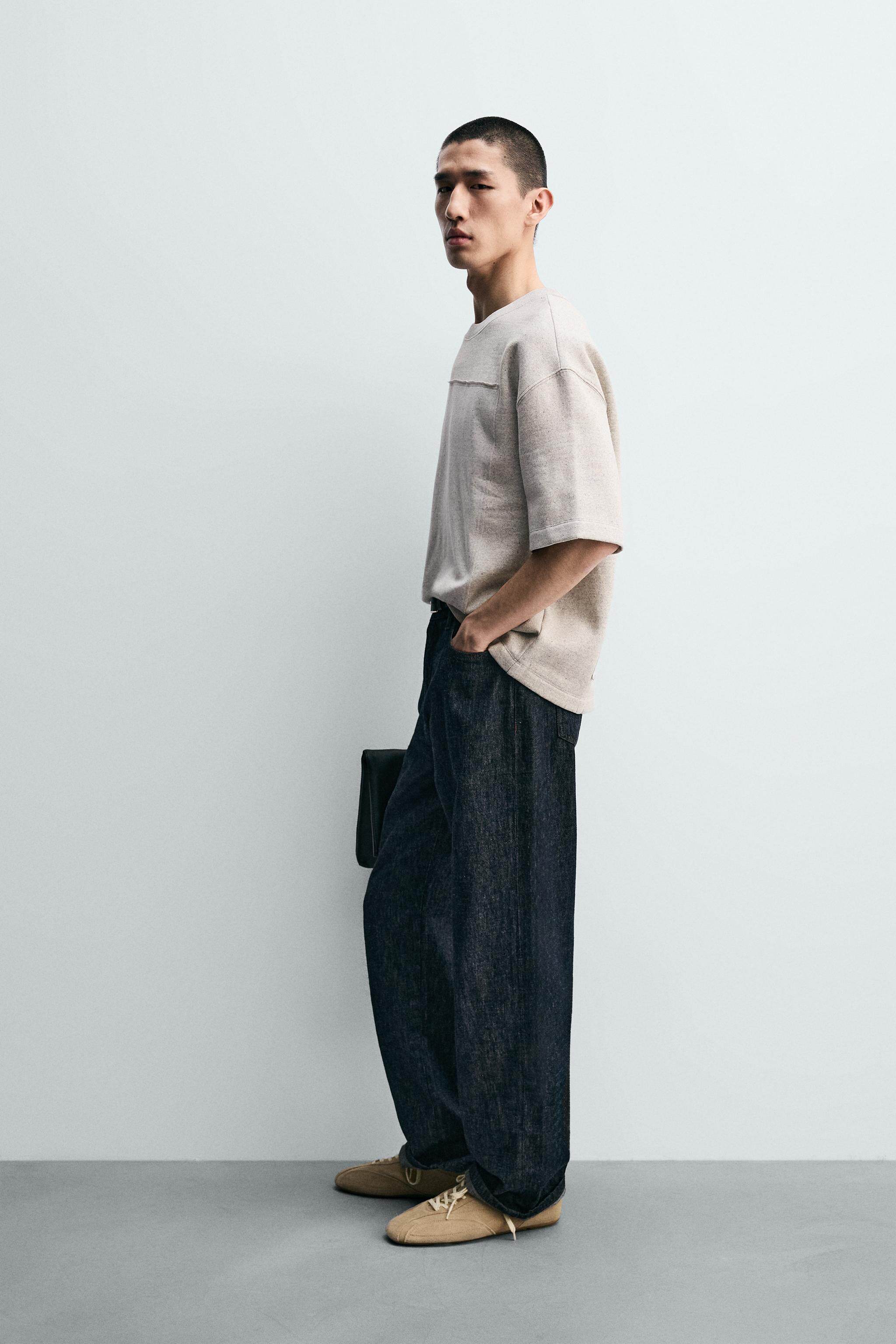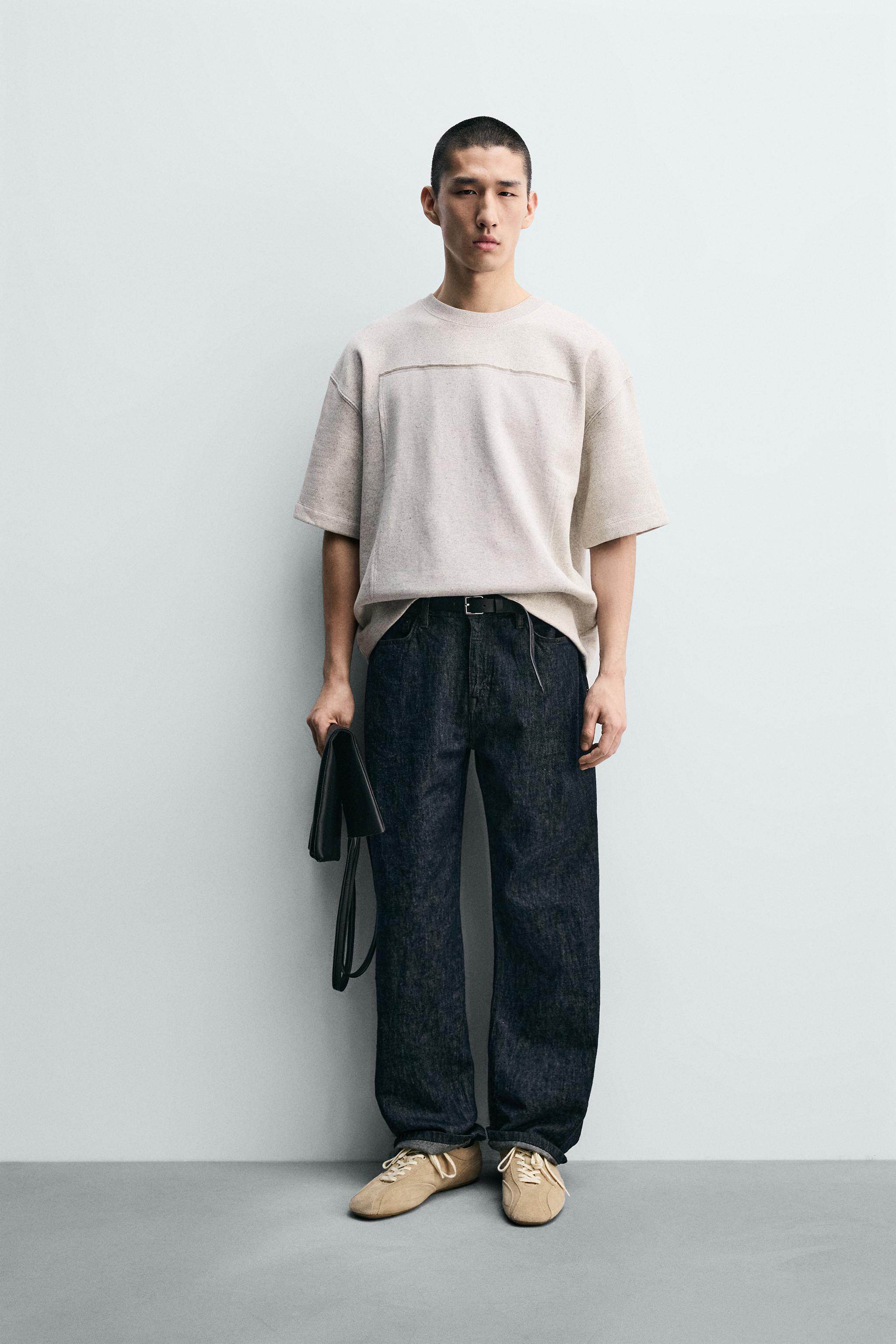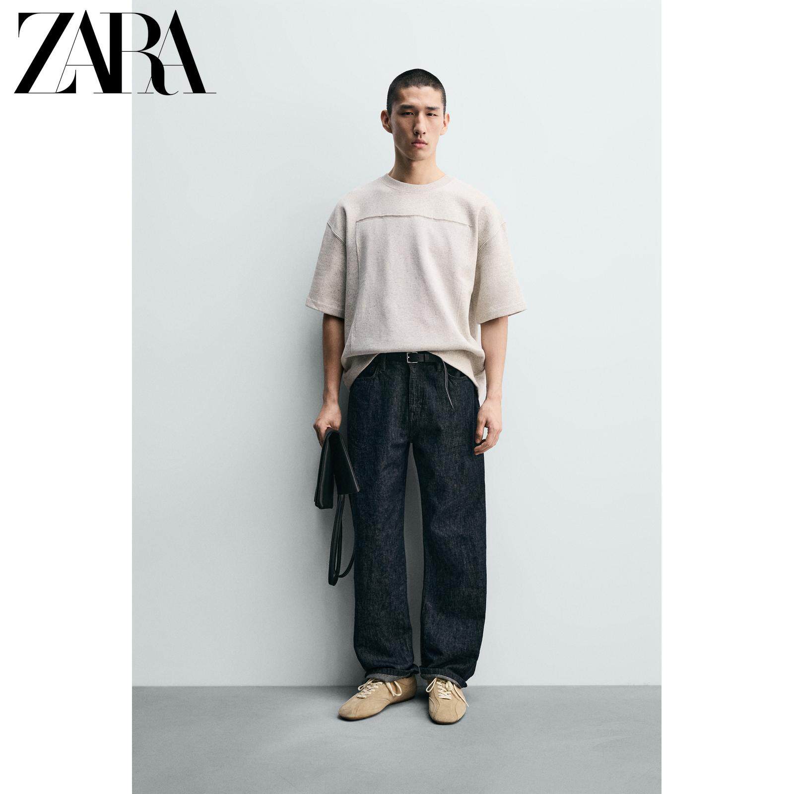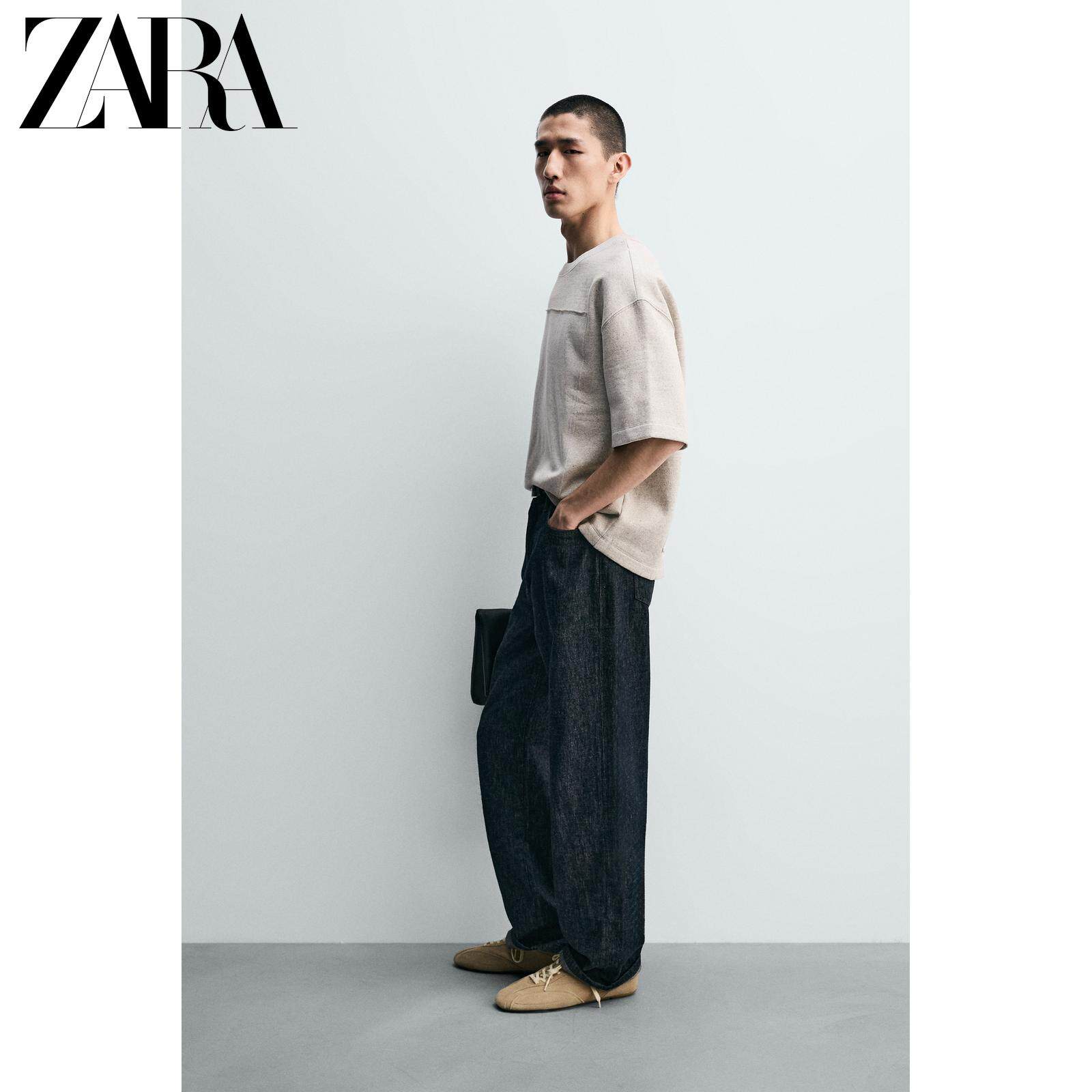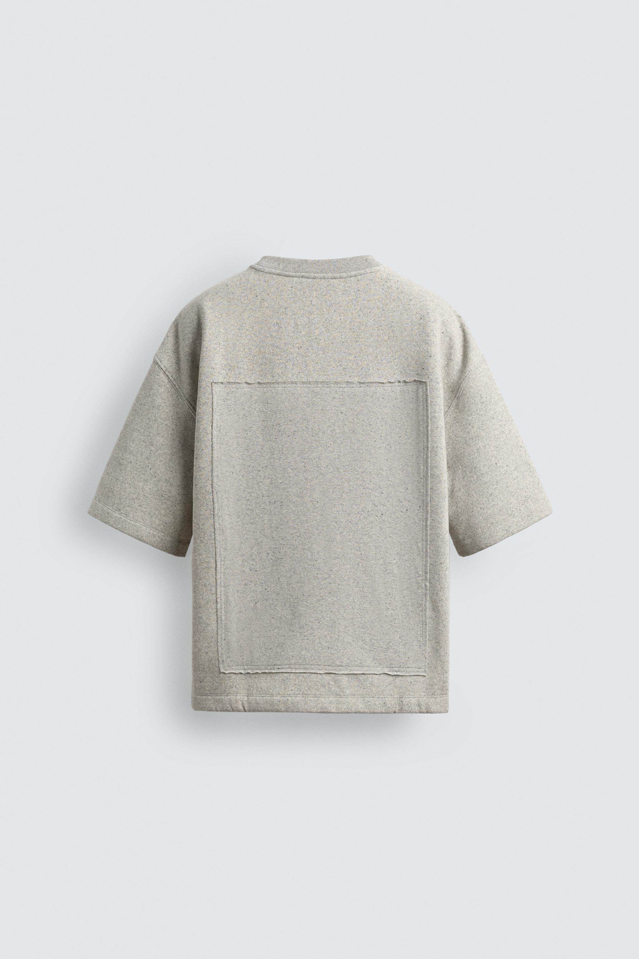 ZARA Новое поступление весны и лета 2026, мужская свободная лоскутная толстовка с круглым вырезом и короткими рукавами 5644465 803