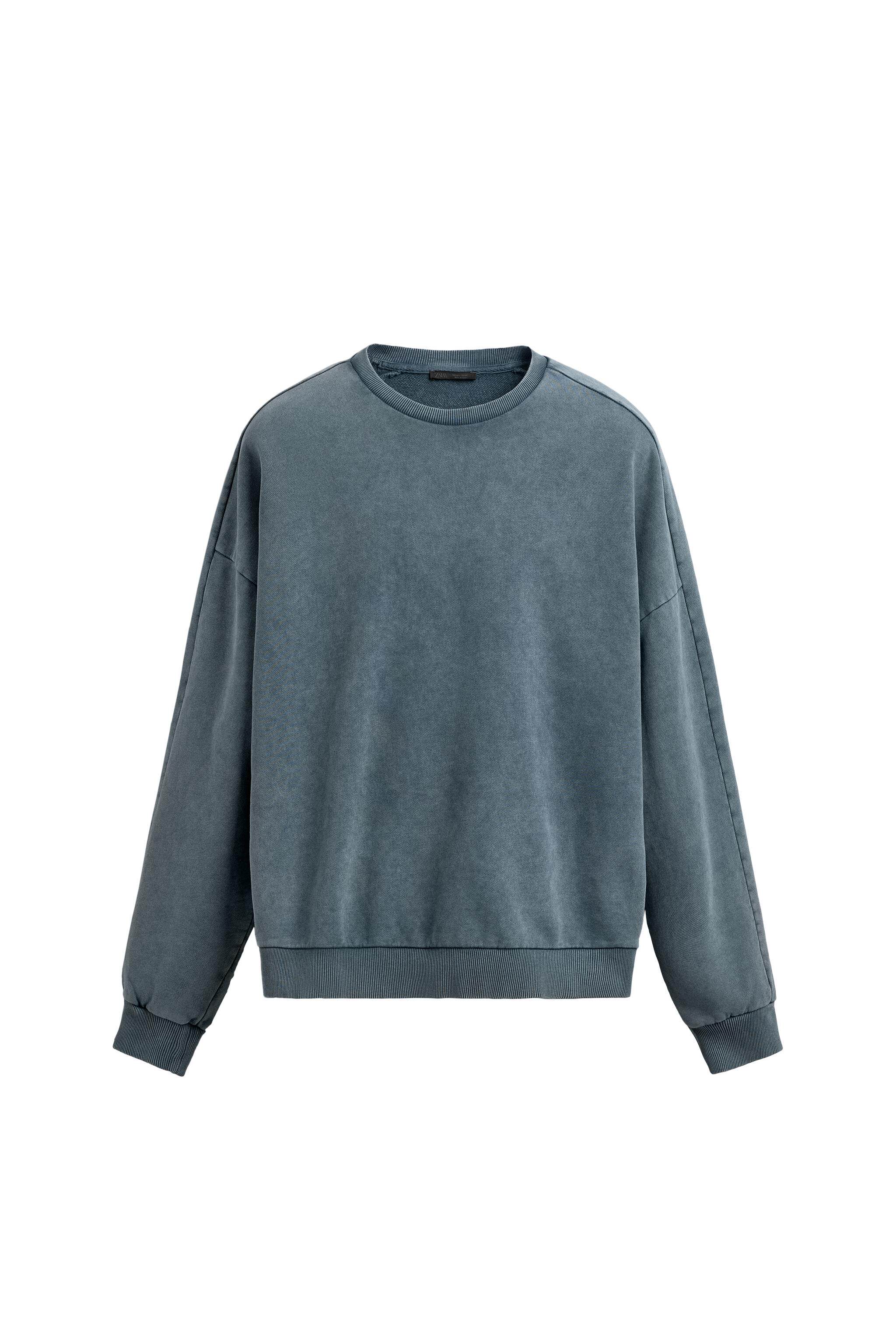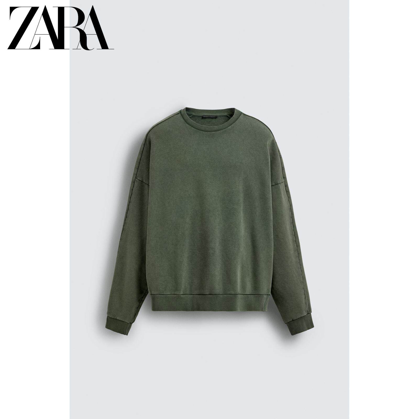 ZARA Новинка весны и лета 2026, мужская свободная хлопковая толстовка с круглым вырезом и длинными рукавами 4087820 400