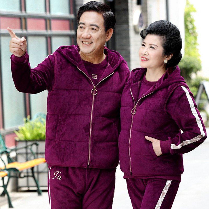 Демисезонный спортивный костюм, утепленная куртка, толстовка для пожилых людей, жилет, комплект, оверсайз, для среднего возраста, 3 предмета