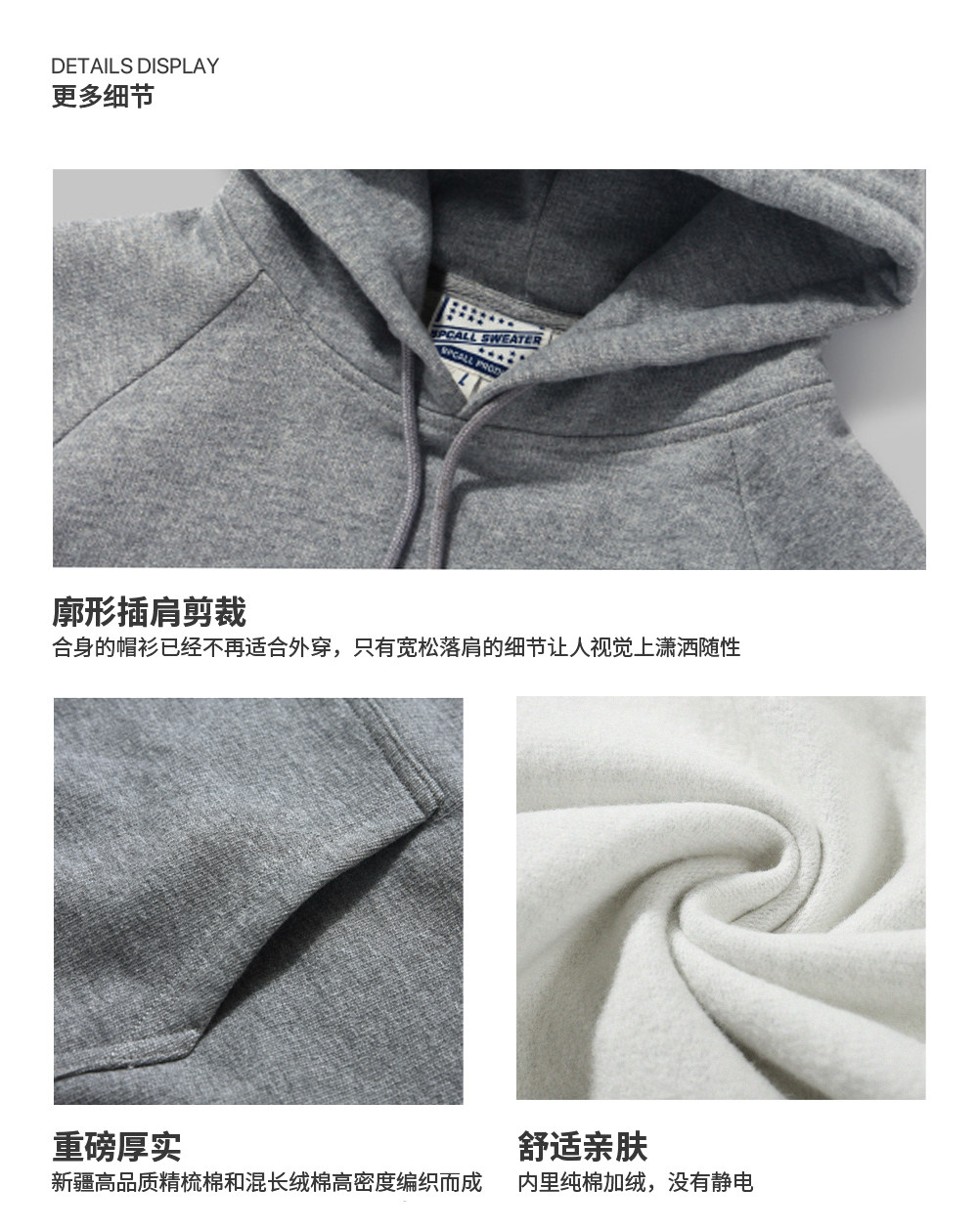 BPCALL Хлопковая утепленная толстовка, толстовка с капюшоном, 520 грамм