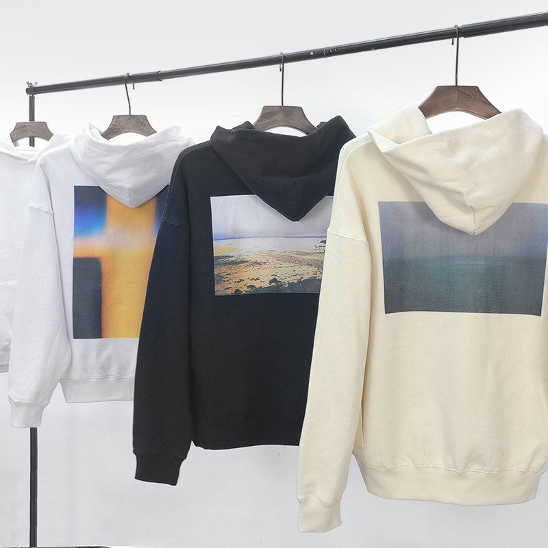 Страх перед Богом туманные предметы Воссоединения линия Калифорния Фото пототок с капюшоном с капюшоном с капюшоном, держась по мужчинам на высокой улице.