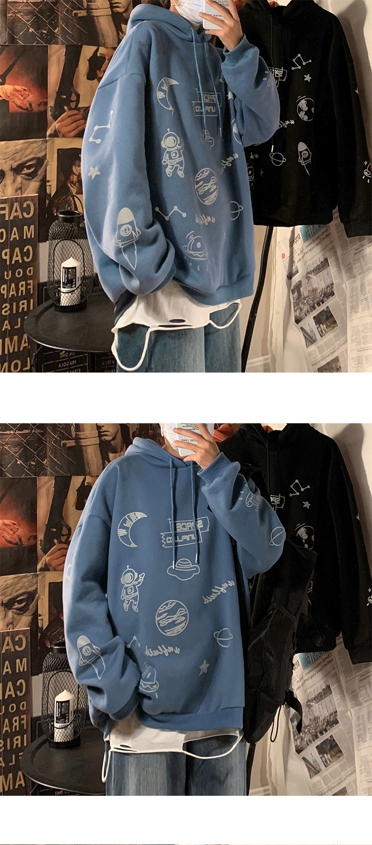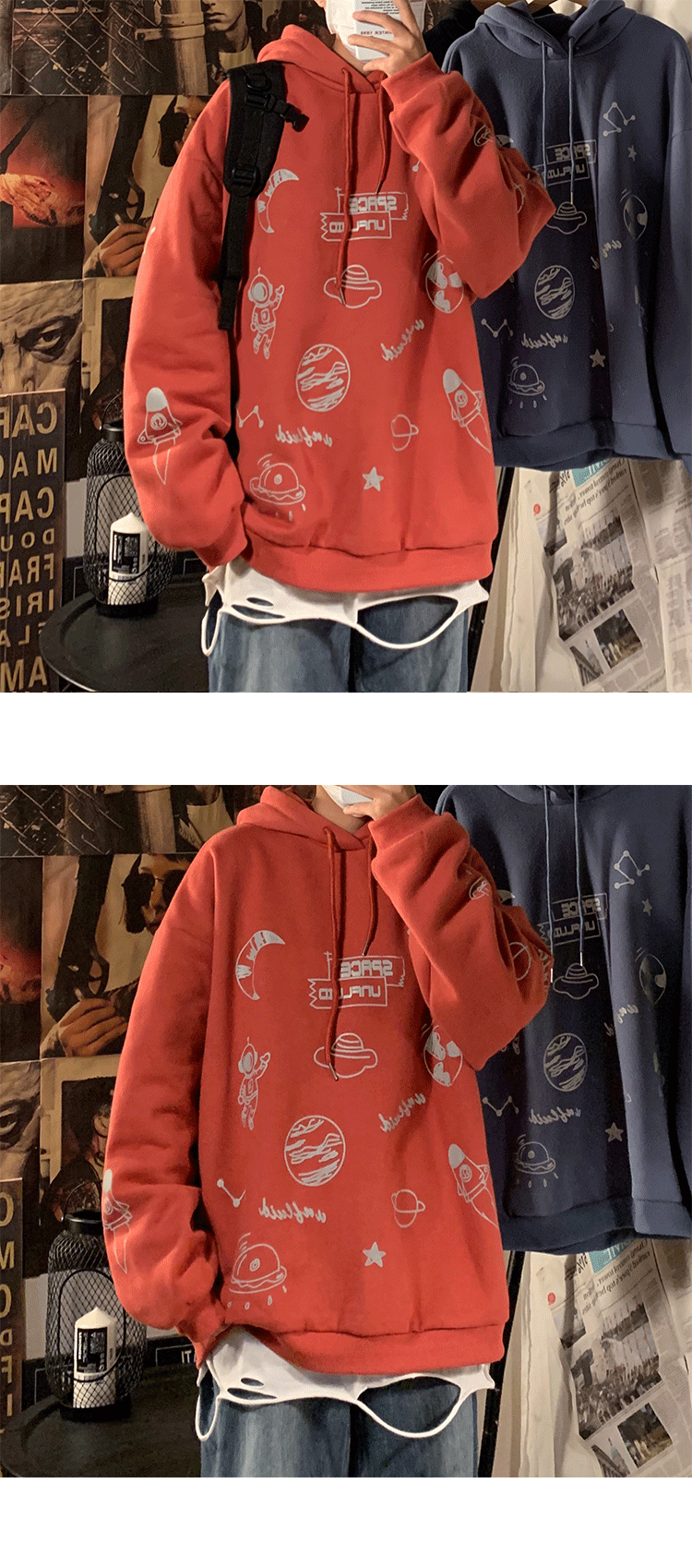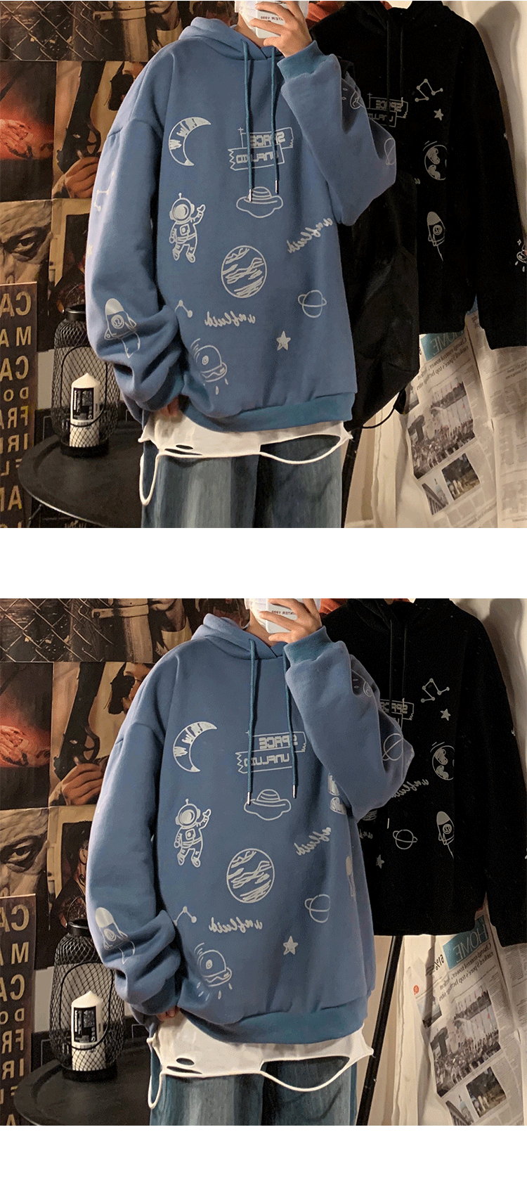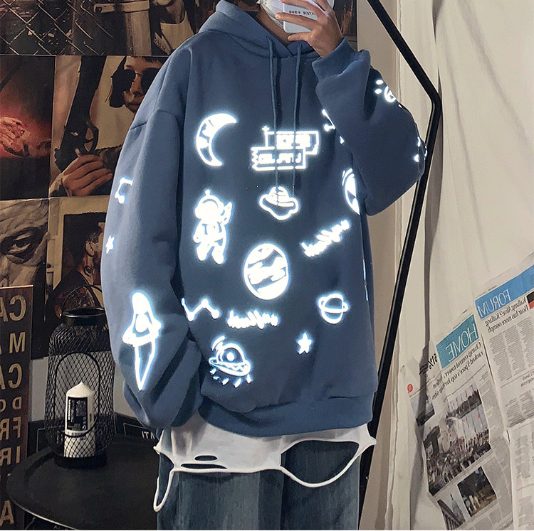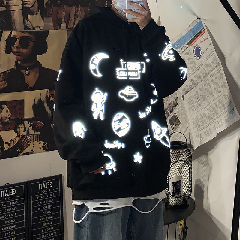 Tide, светоотражающая трендовая демисезонная толстовка с капюшоном, куртка, в корейском стиле, оверсайз