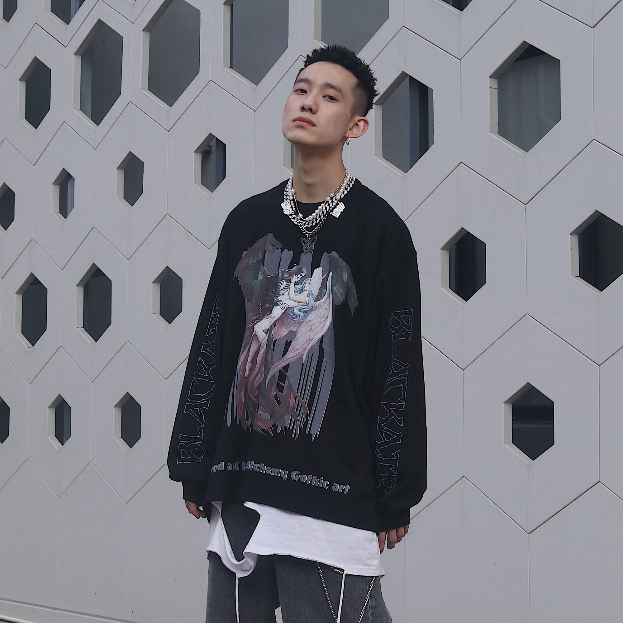 Blacklists Retro Dark Ascetic Funerals -это приливная бренда с длинными брендами, мужской хип -хоп -хоп Ваганта Вик