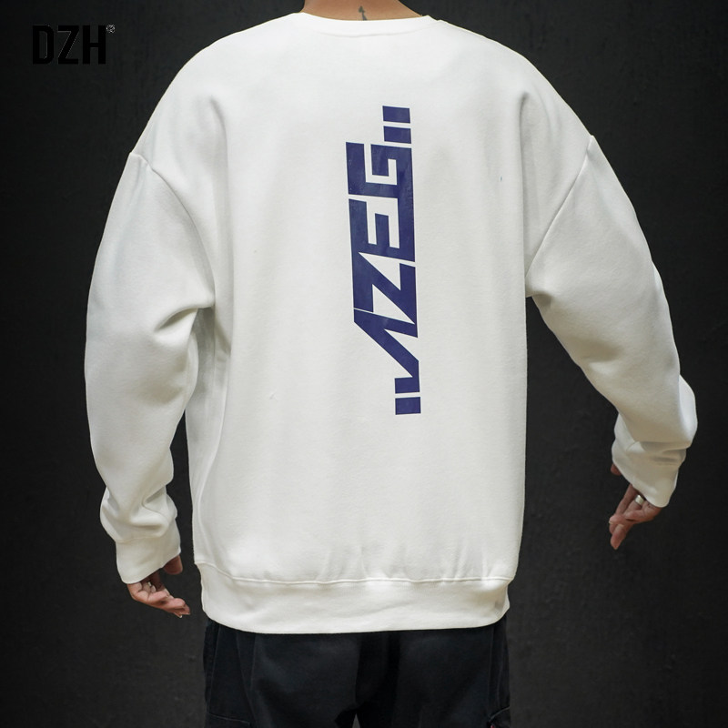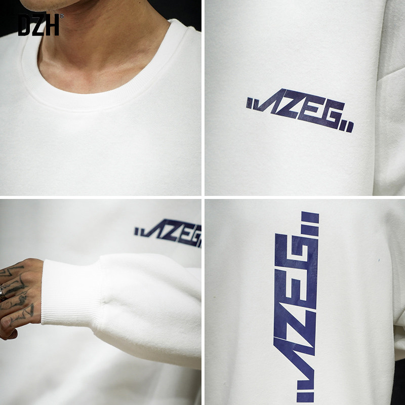 DZH Tide, белая весенняя толстовка с круглым воротником, свободный крой, тренд сезона