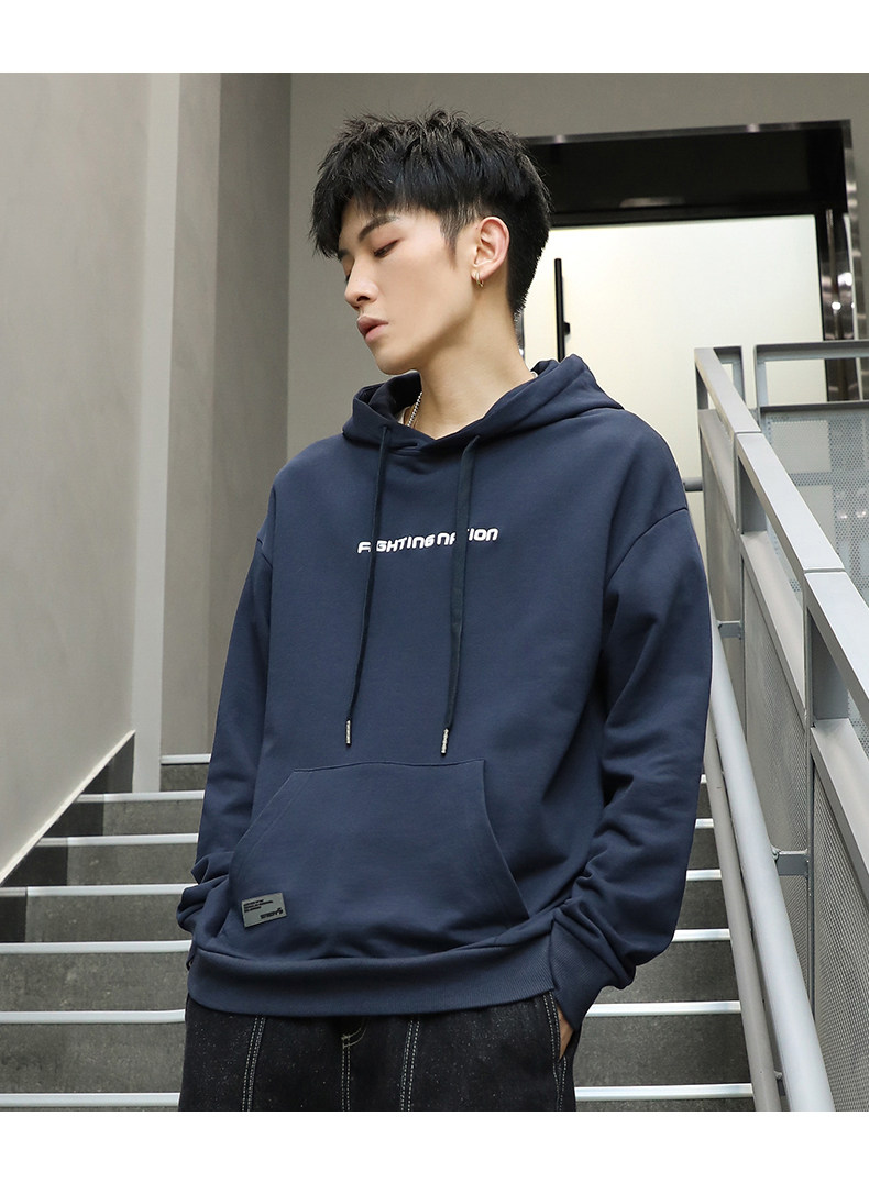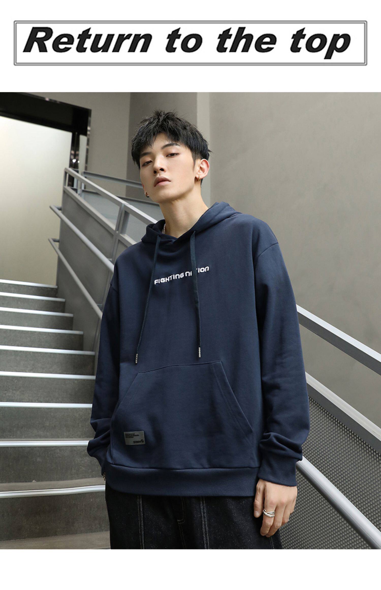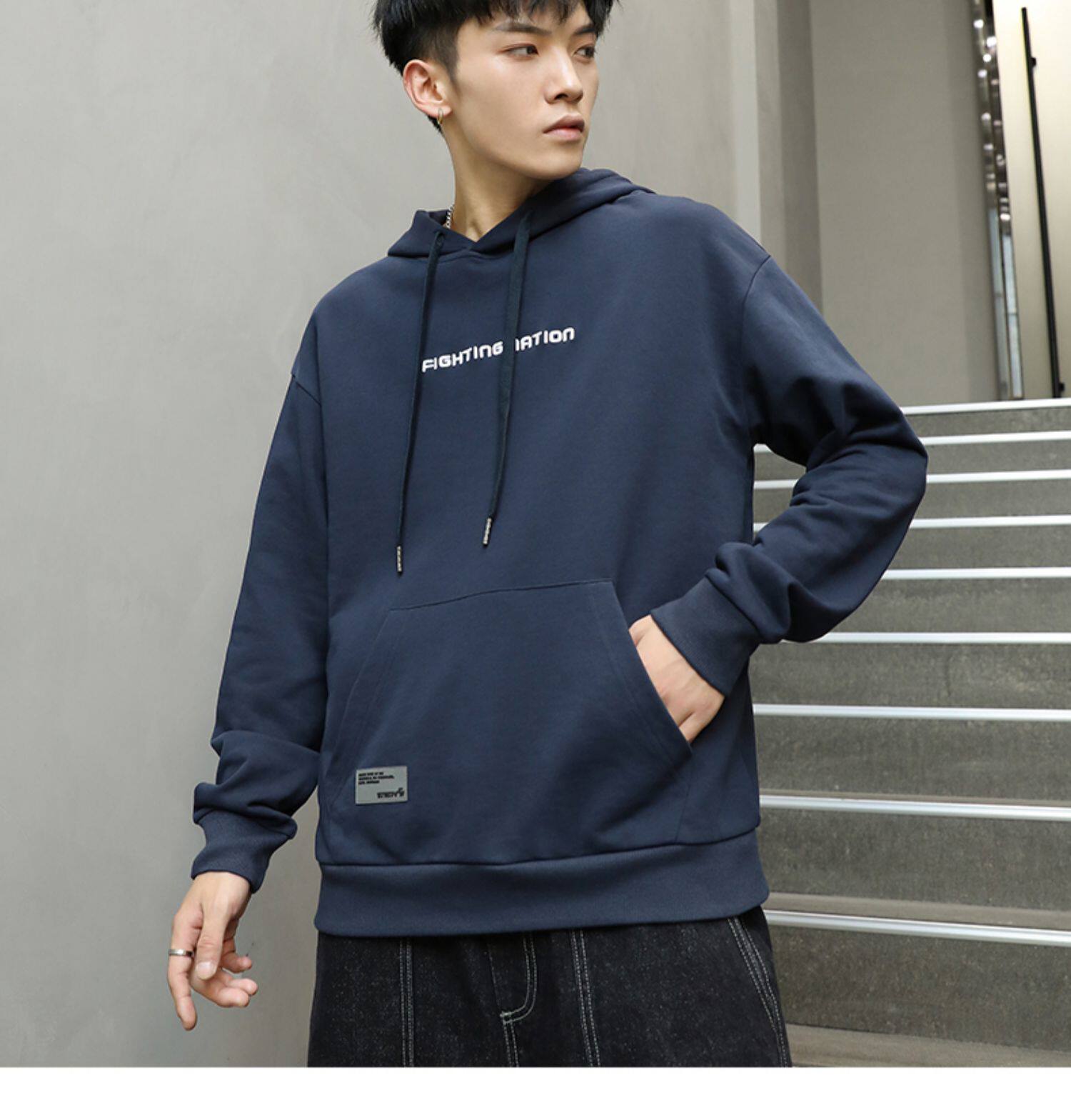 Синяя осенняя толстовка с капюшоном, спортивная куртка, большой размер, 2023