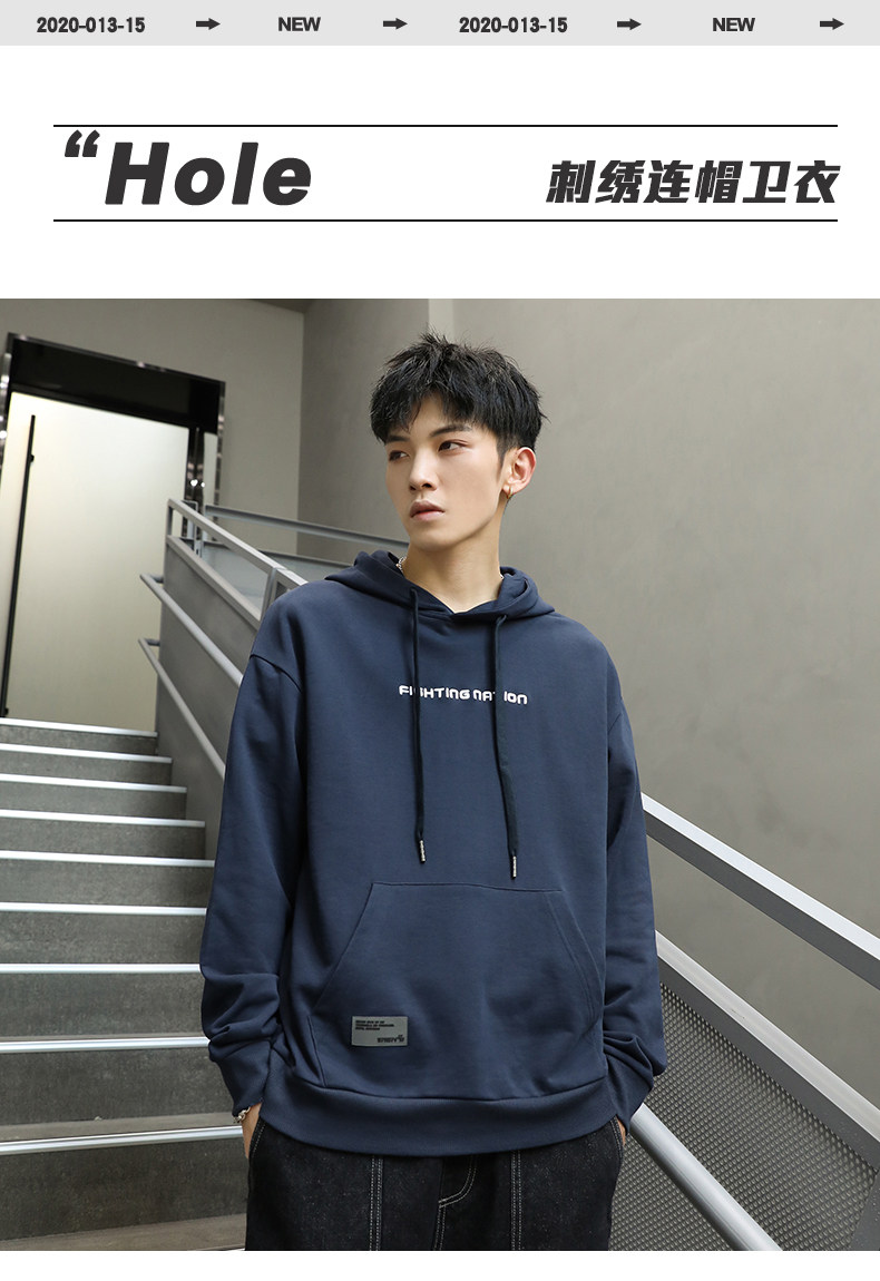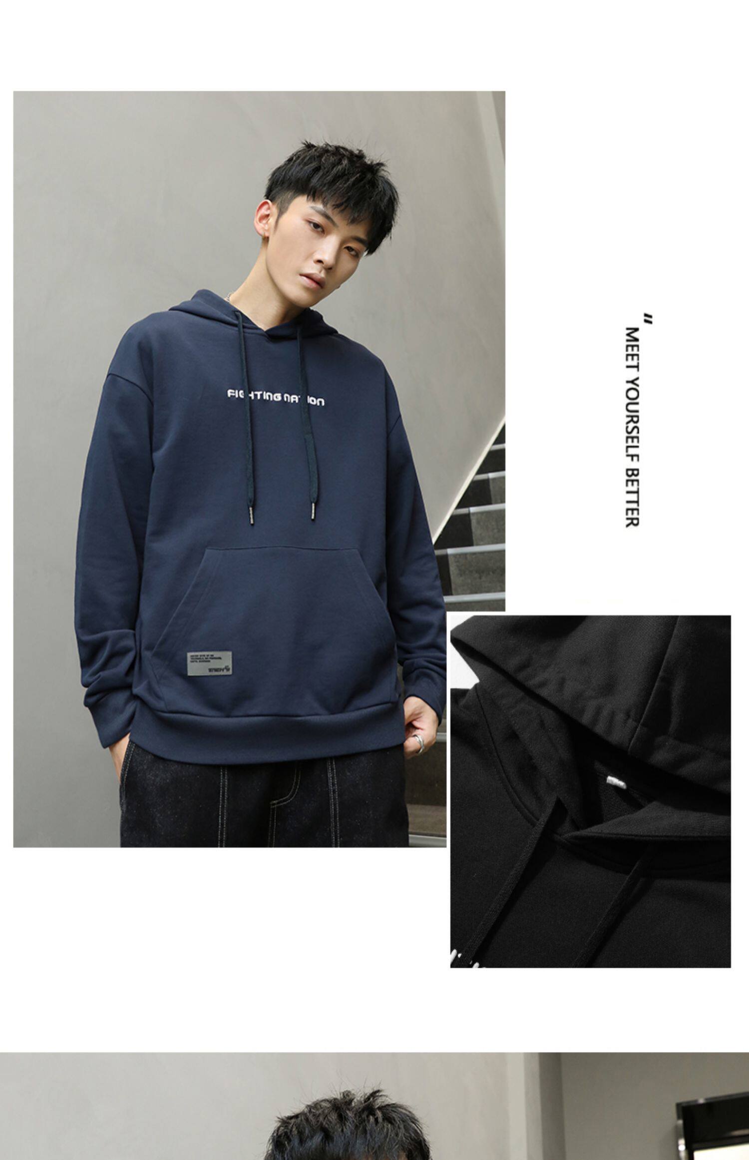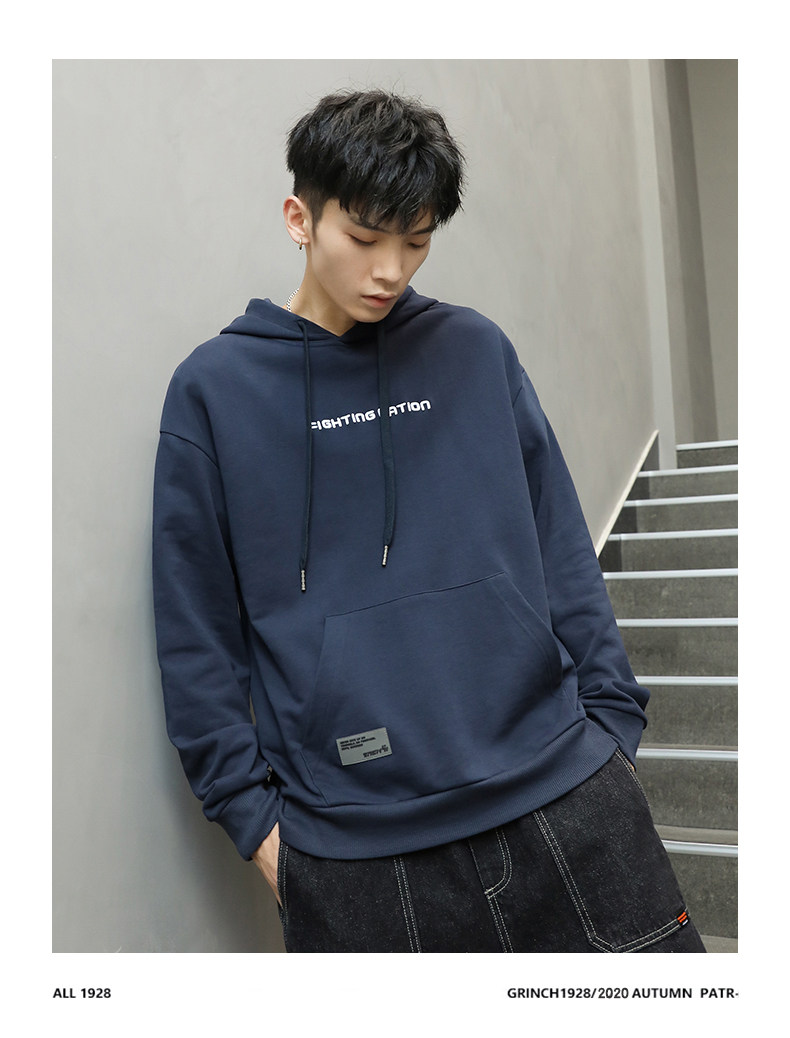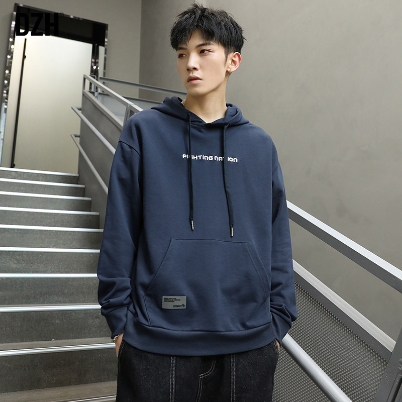 Синяя осенняя толстовка с капюшоном, спортивная куртка, большой размер, 2023