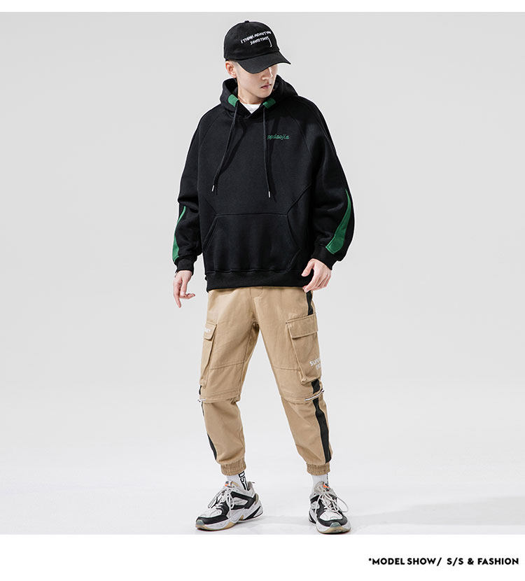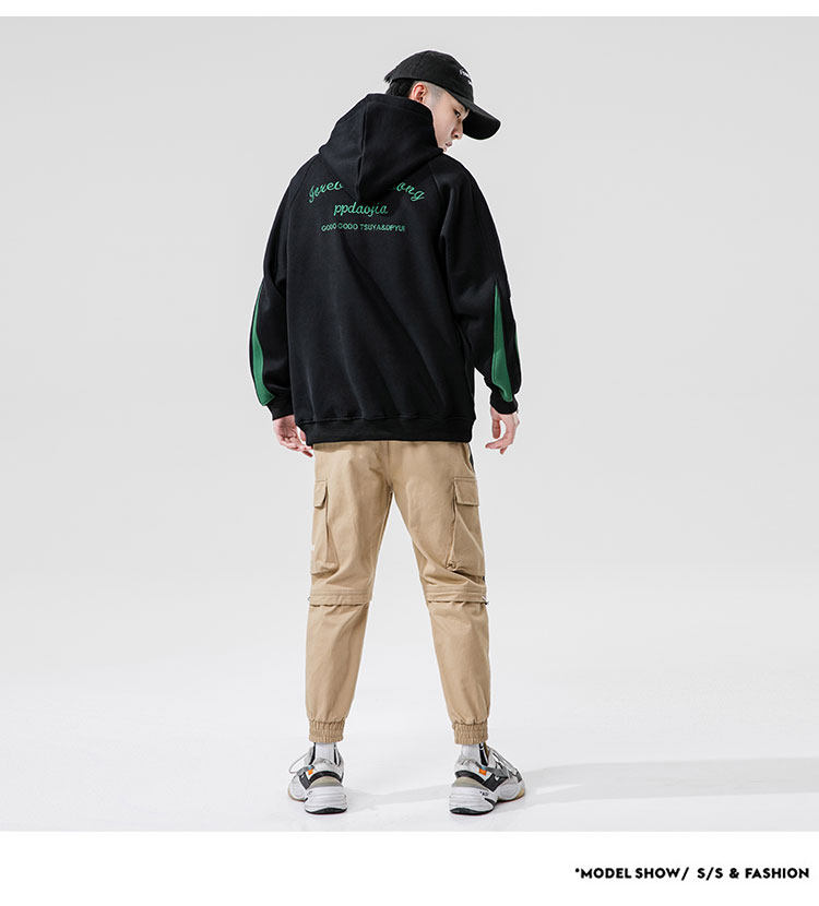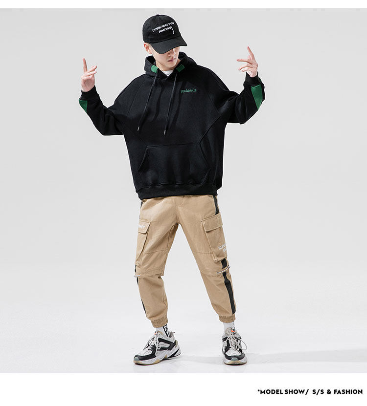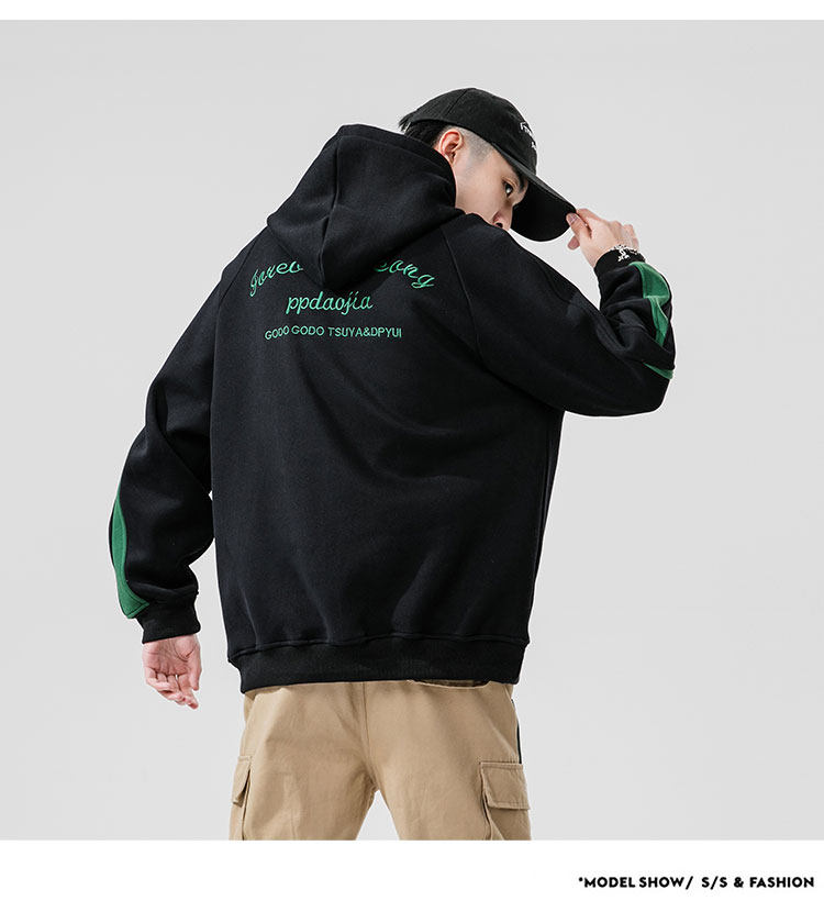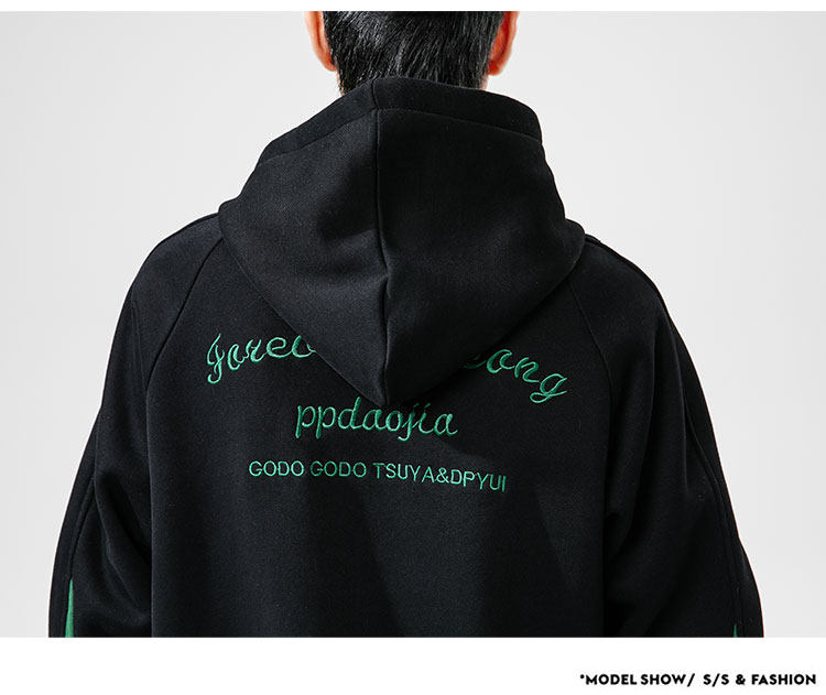 Tide, лонгслив, демисезонная трендовая черная толстовка с капюшоном, с вышивкой, оверсайз