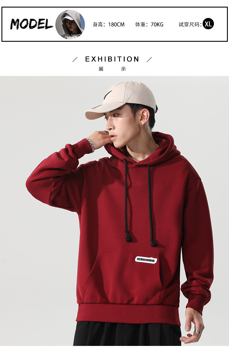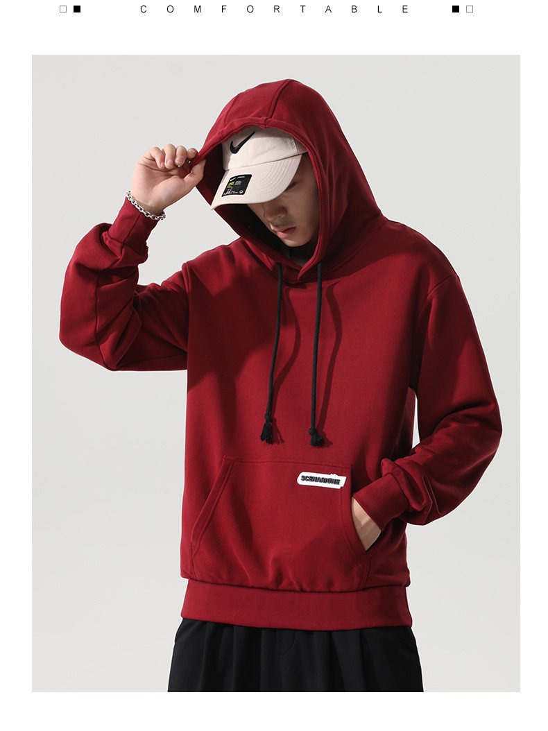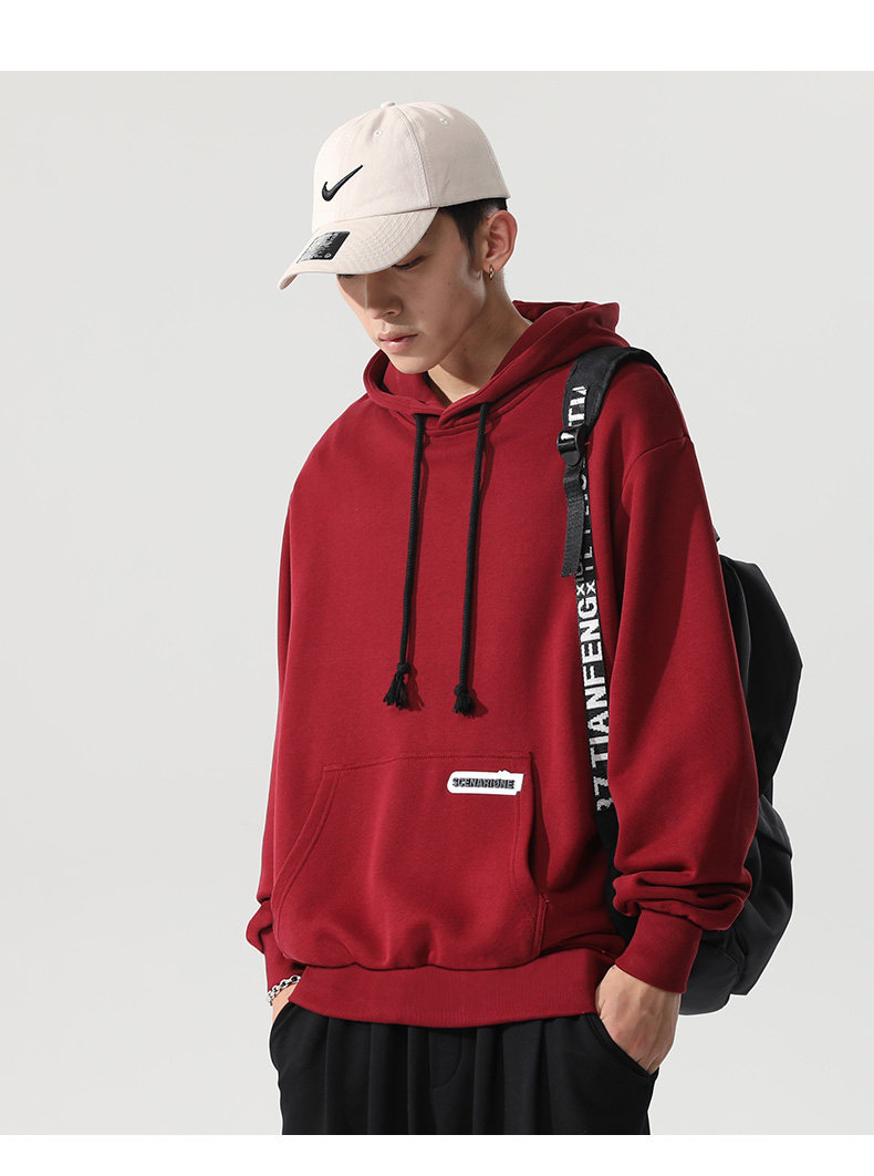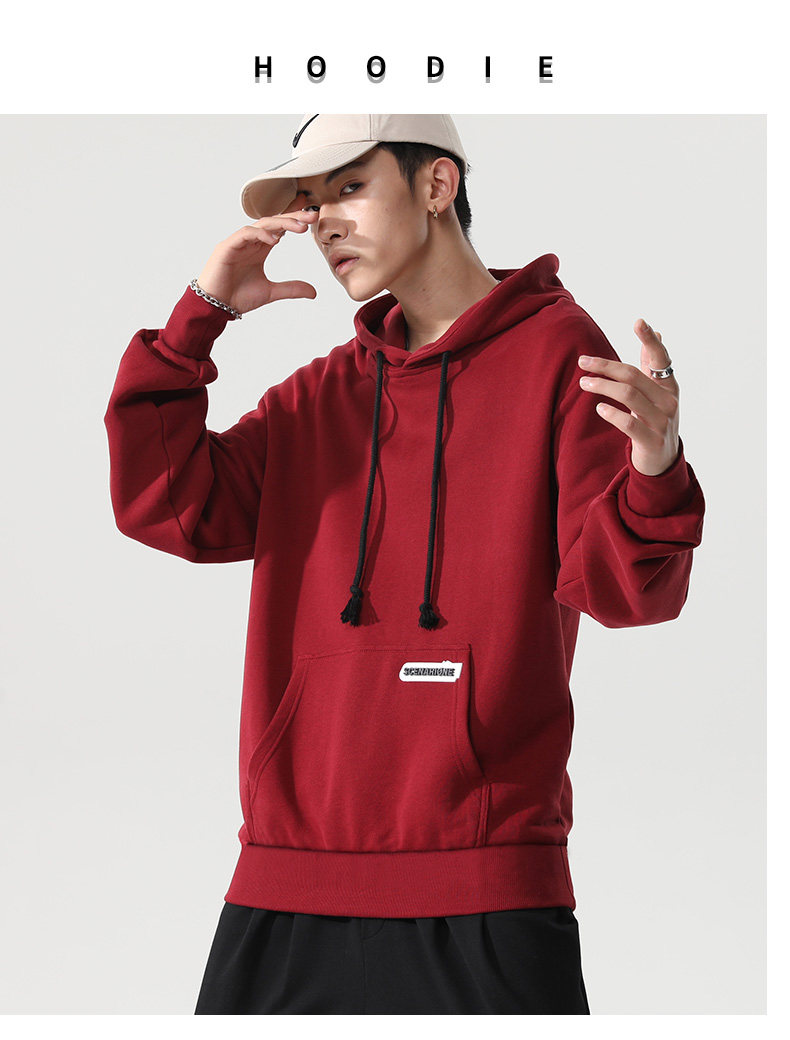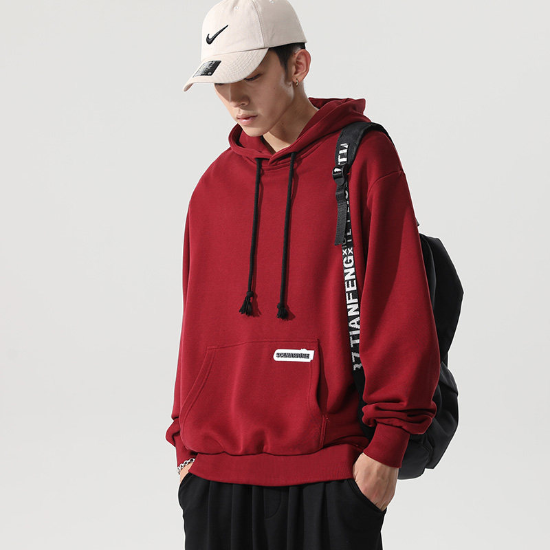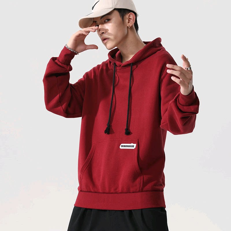 Весенняя спортивная осенняя брендовая бордовая утепленная толстовка с капюшоном, городской стиль, 2021 года