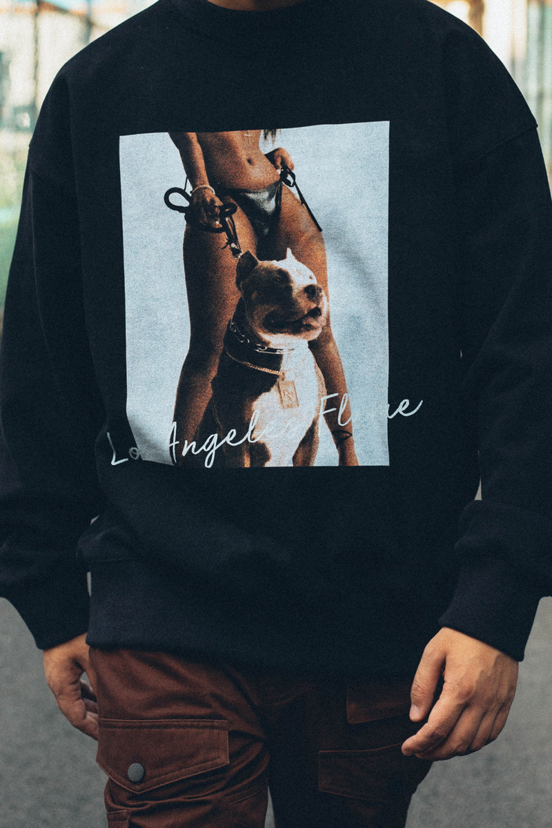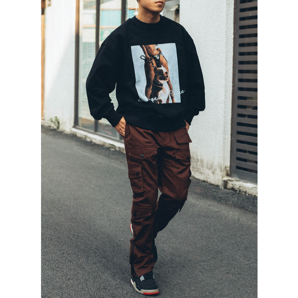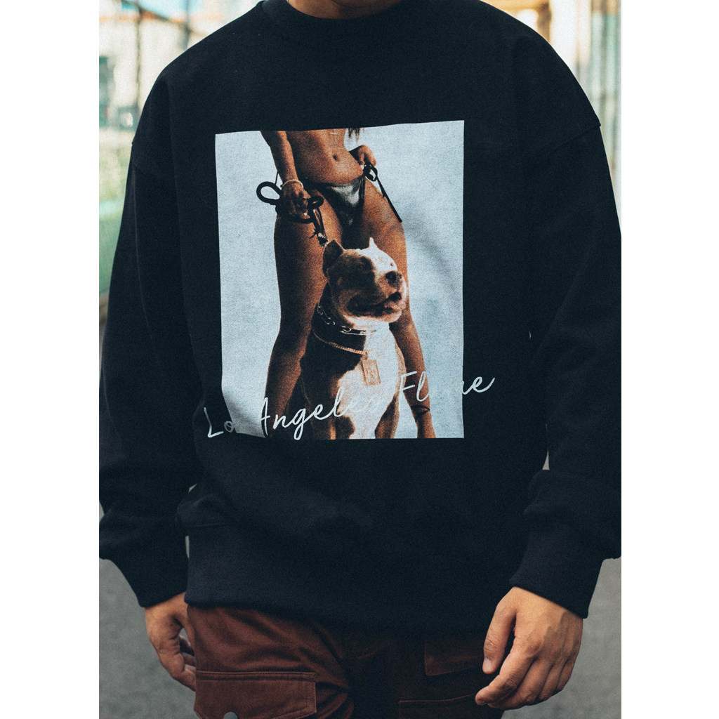 Antiadote20aw Street 460G плюс бархатный хулиганский собака фото печать круглого шеи.