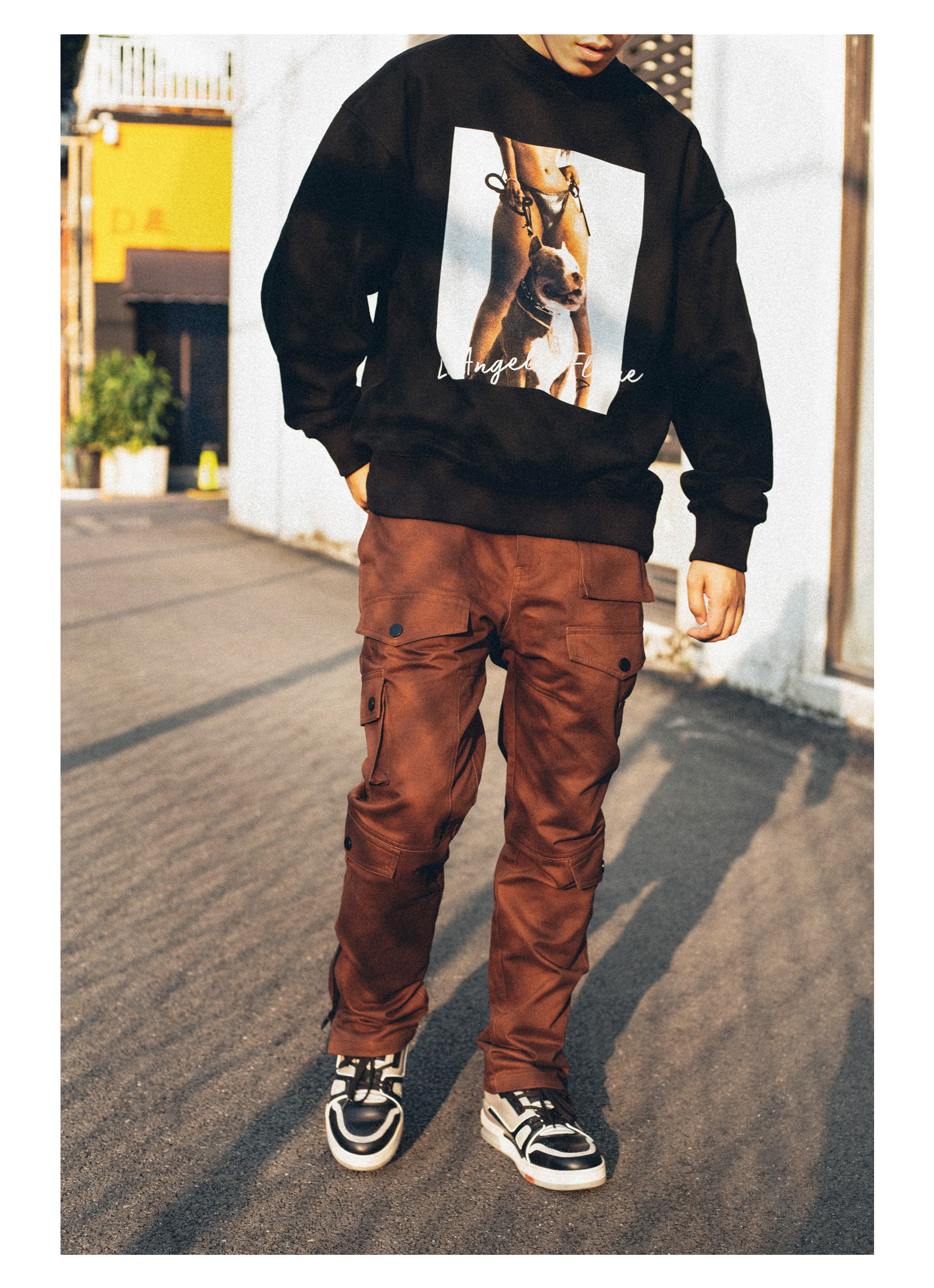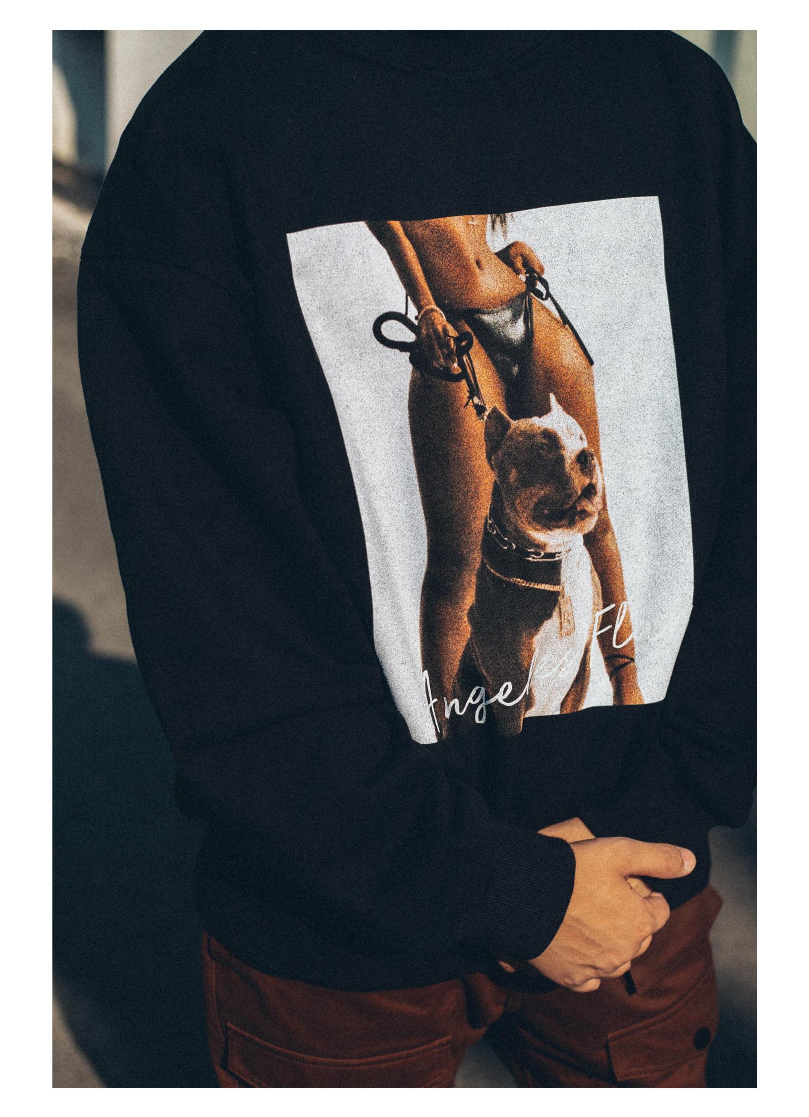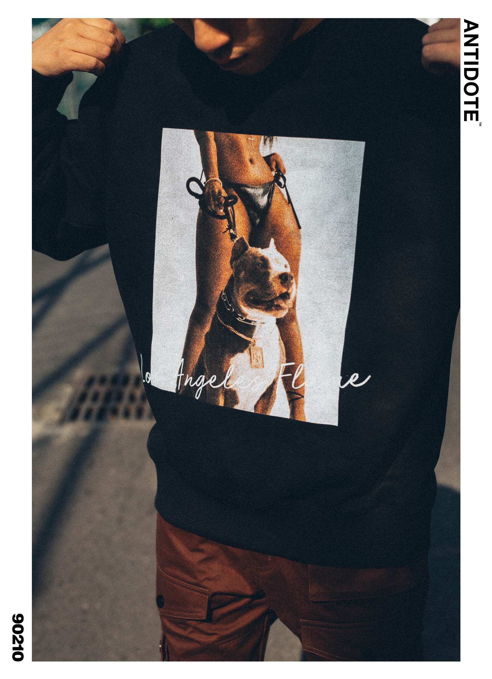 Antiadote20aw Street 460G плюс бархатный хулиганский собака фото печать круглого шеи.