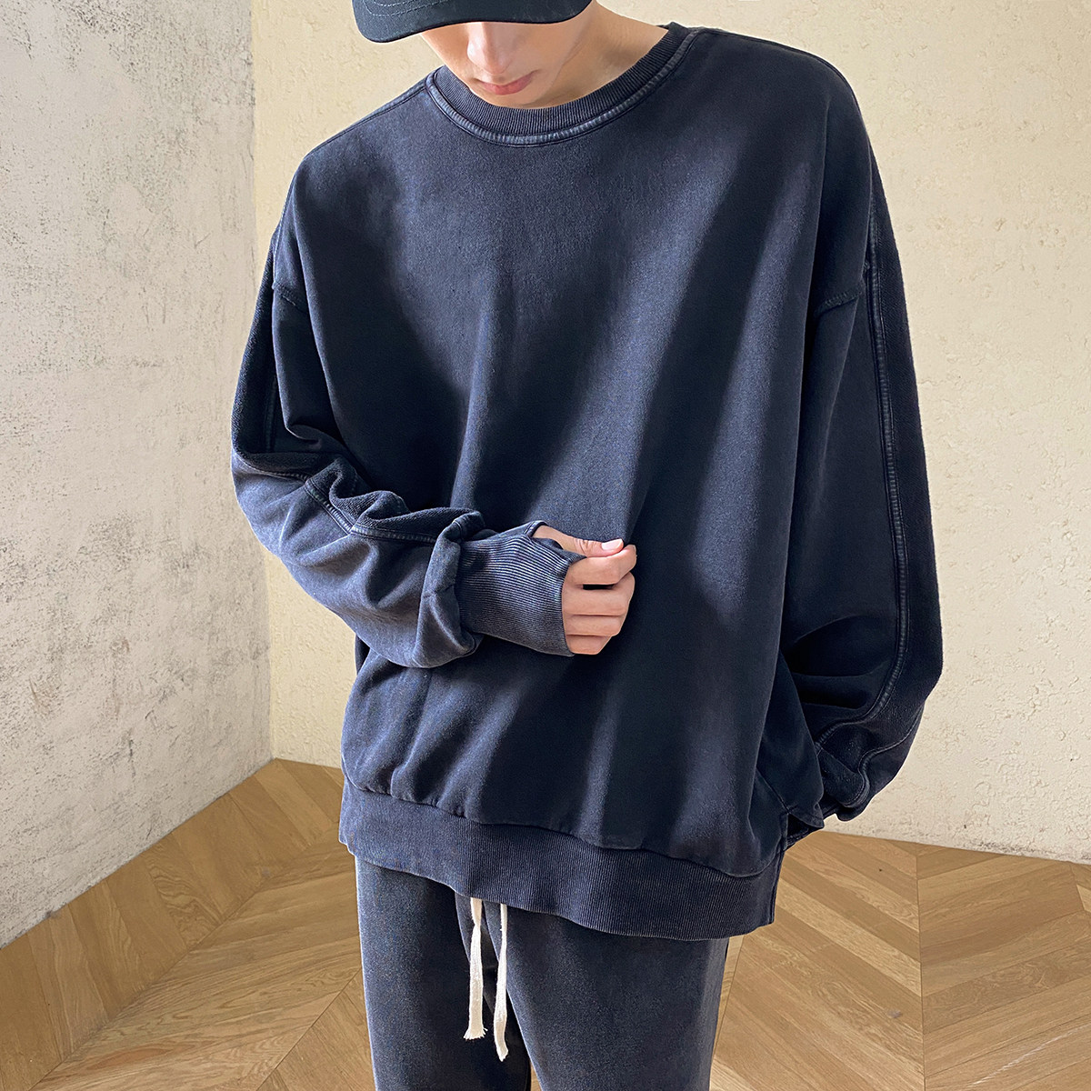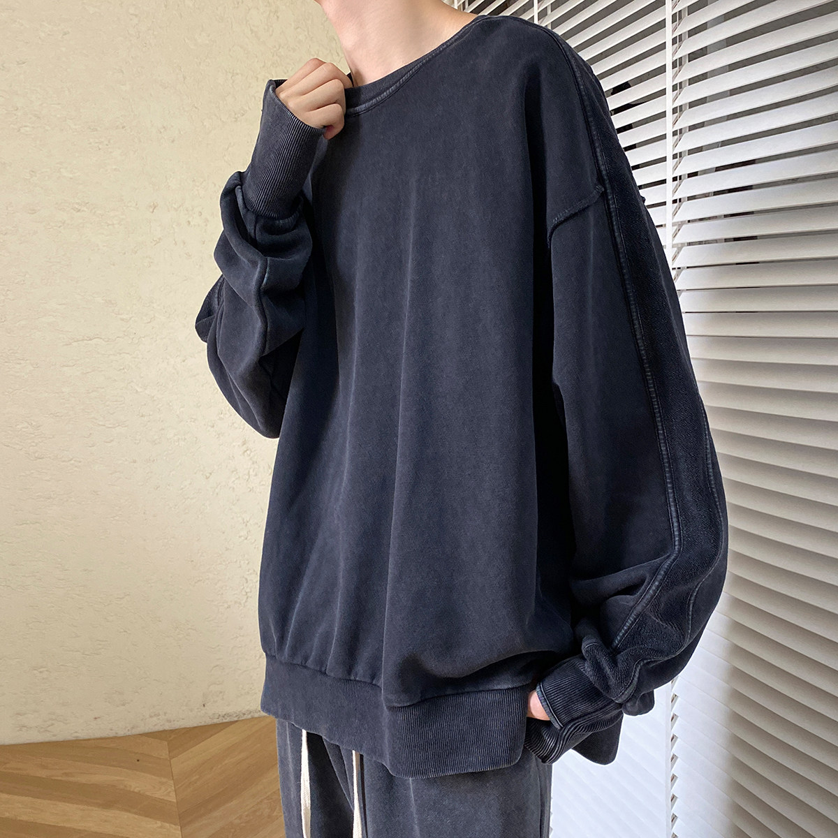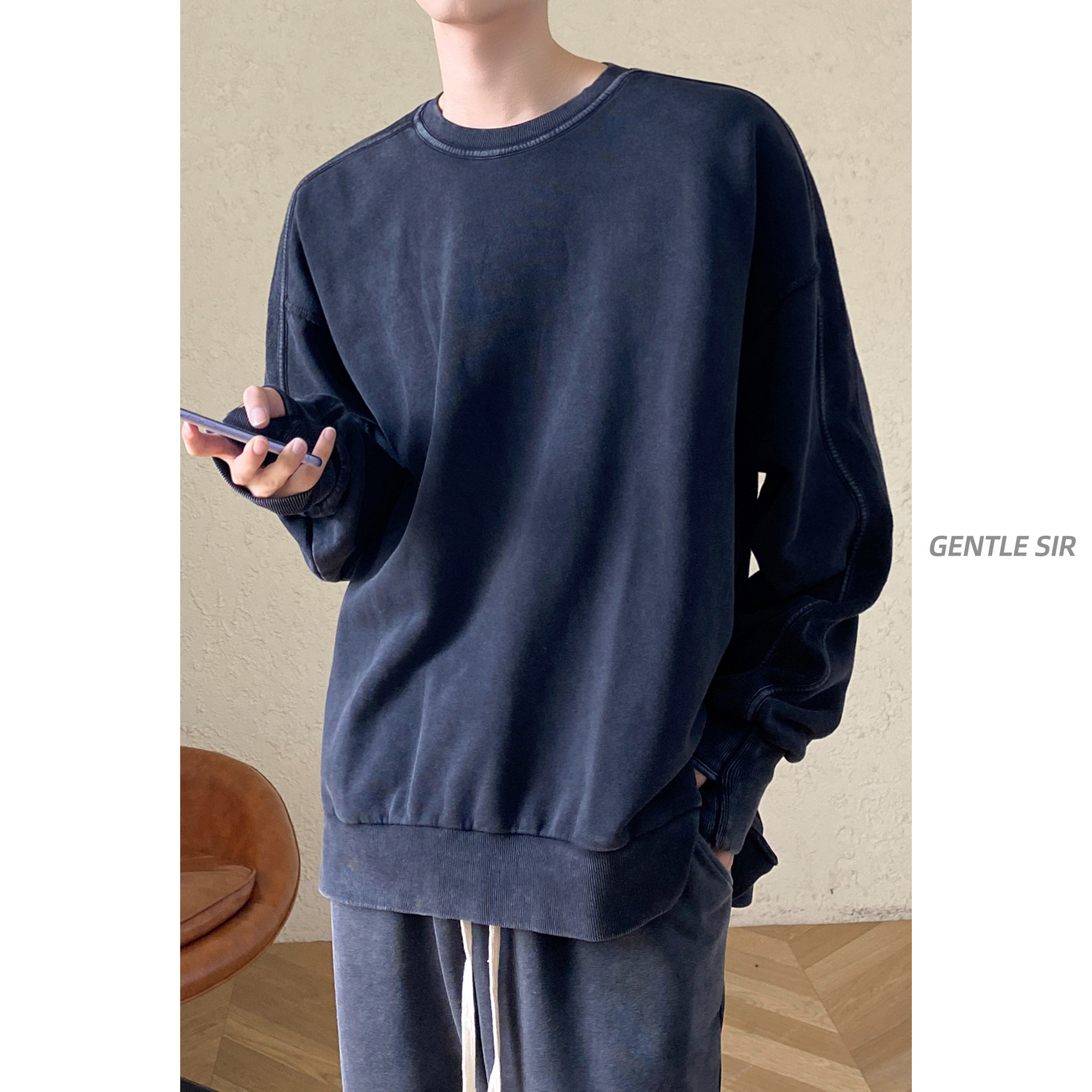 Трендовая брендовая демисезонная толстовка с круглым воротником, в корейском стиле, оверсайз