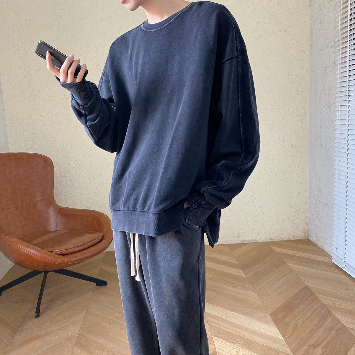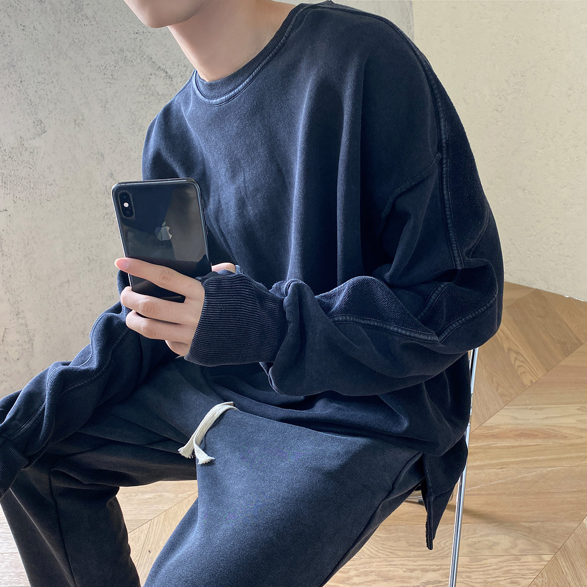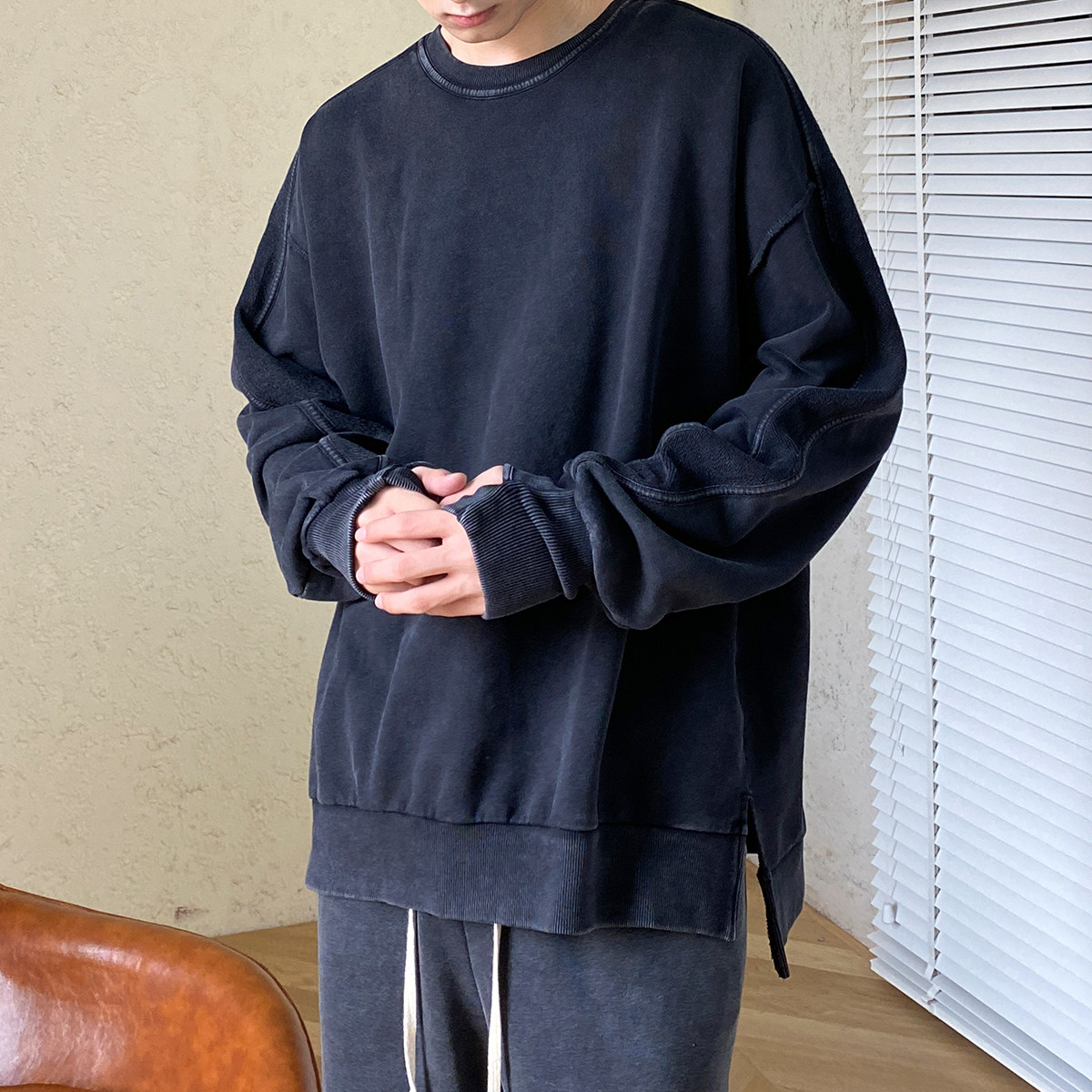 Трендовая брендовая демисезонная толстовка с круглым воротником, в корейском стиле, оверсайз