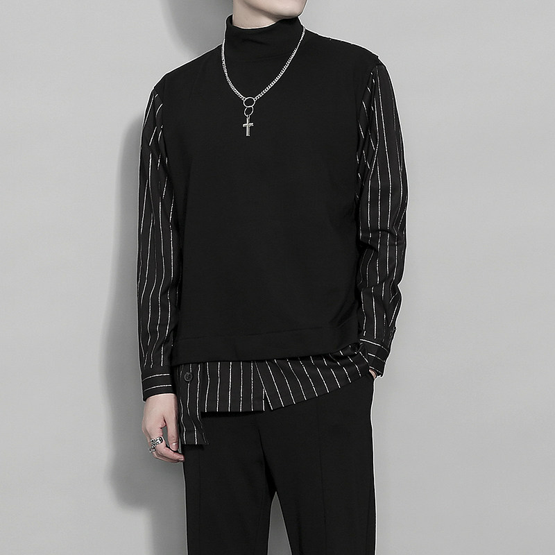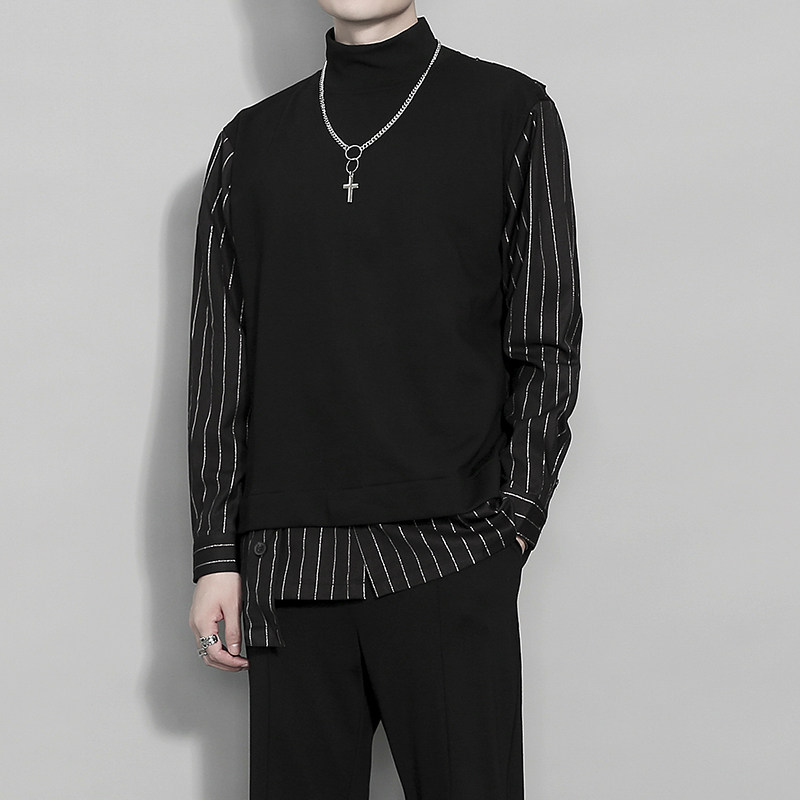 Оригинальная осенняя утепленный лонгслив, комплект, рубашка, толстовка, свитшот, имитация рубашки, высокий воротник