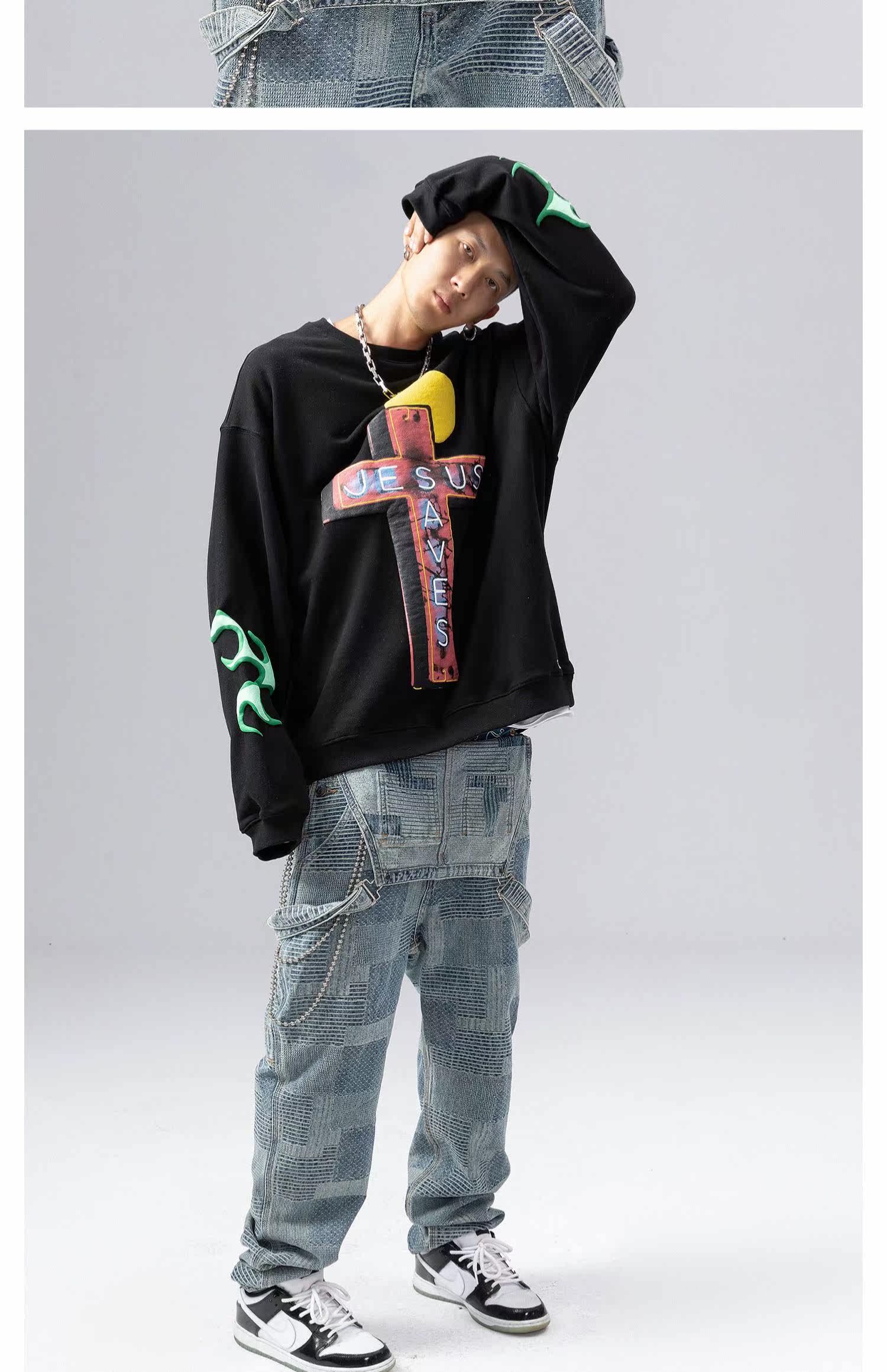 Осенняя хлопковая толстовка с круглым воротником, куртка для отдыха, ручная роспись, оверсайз