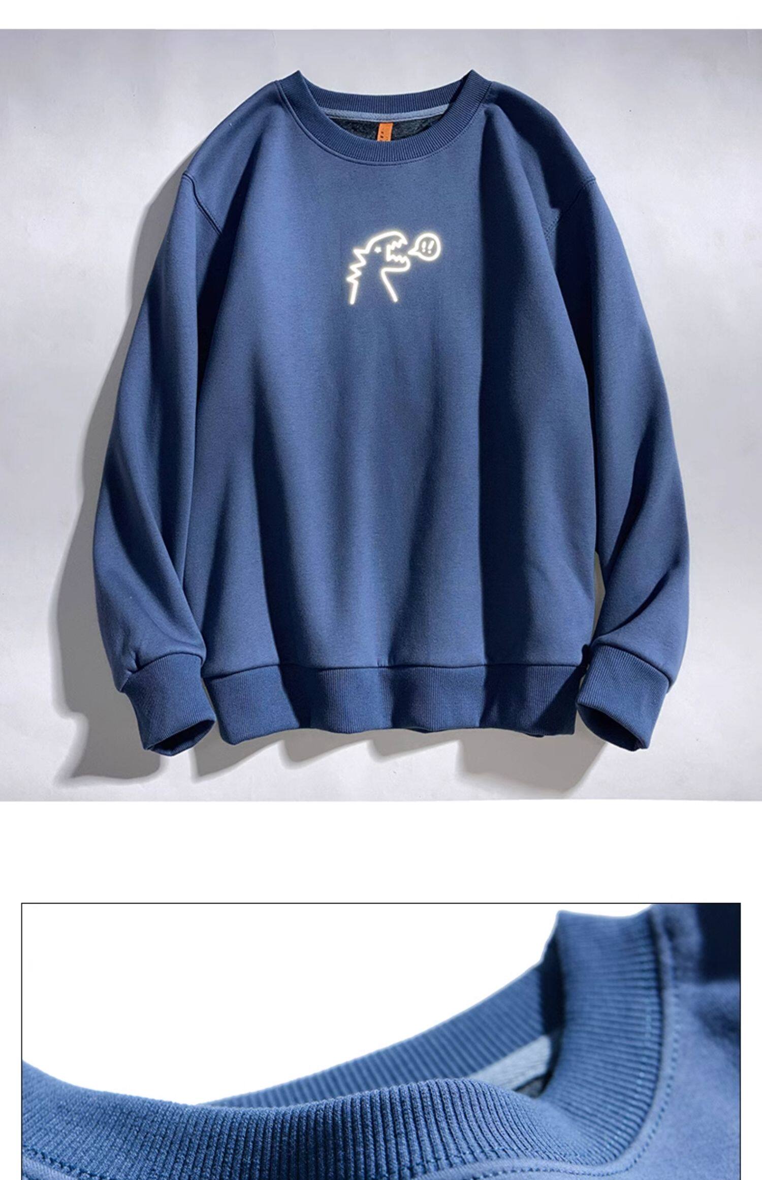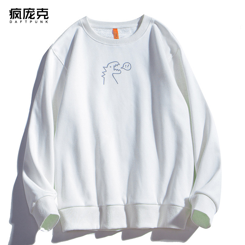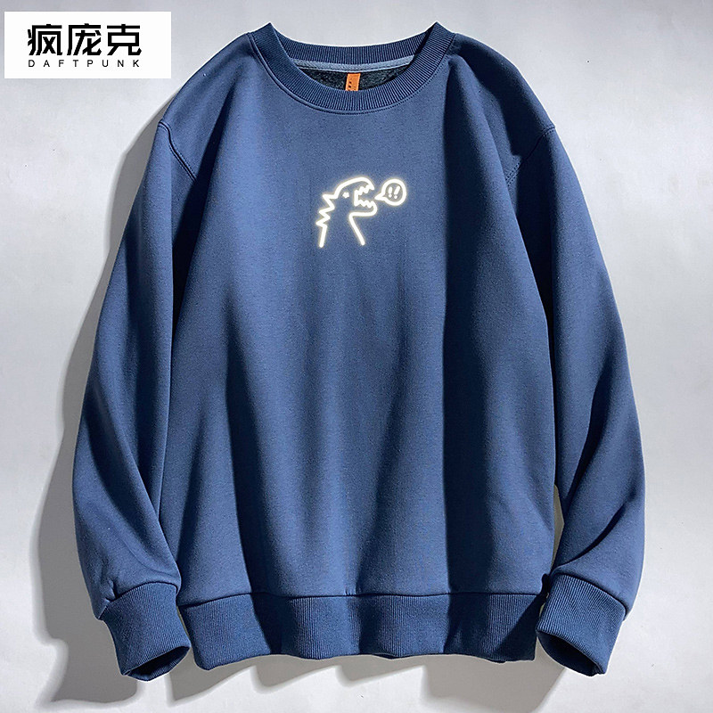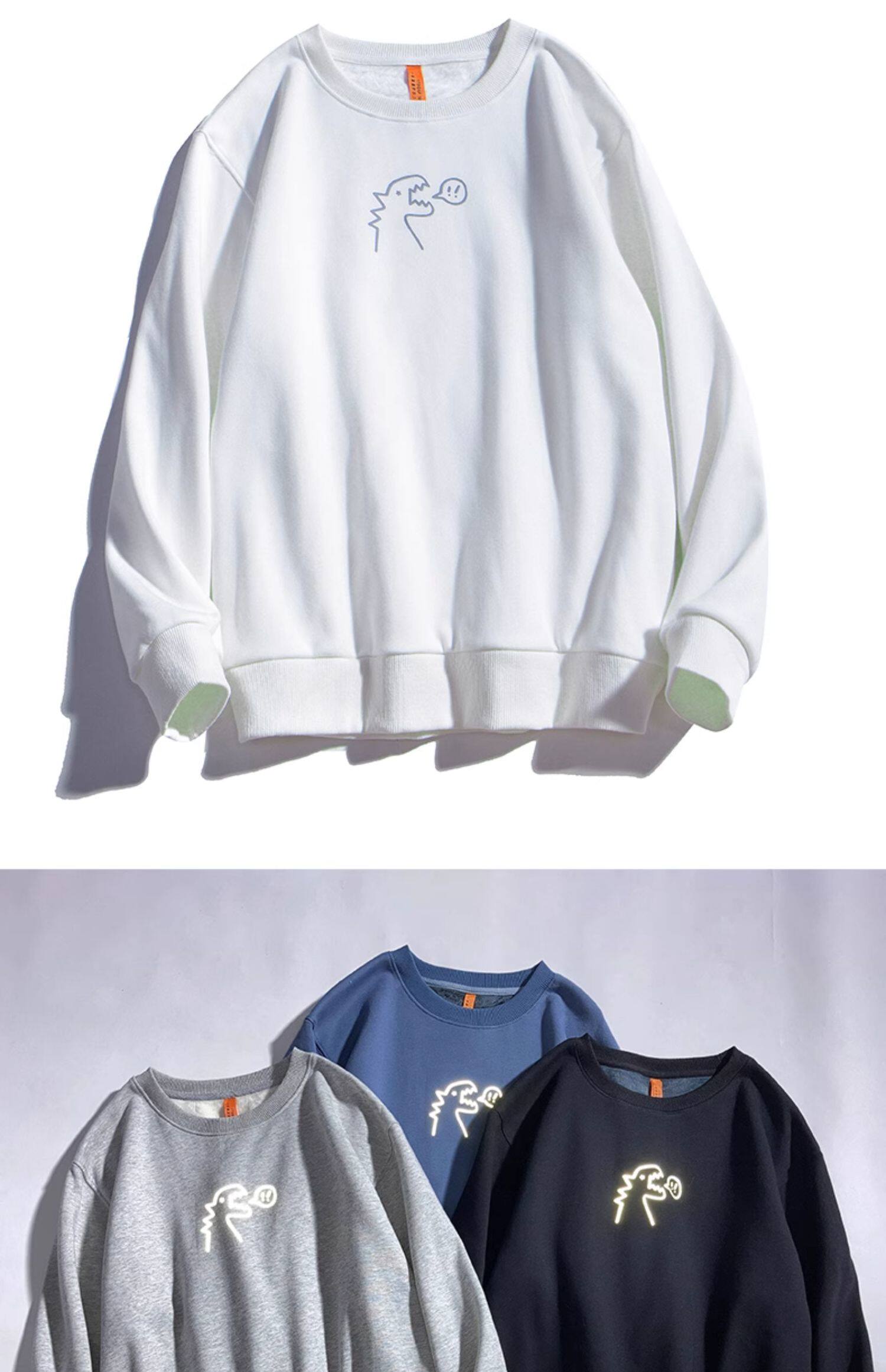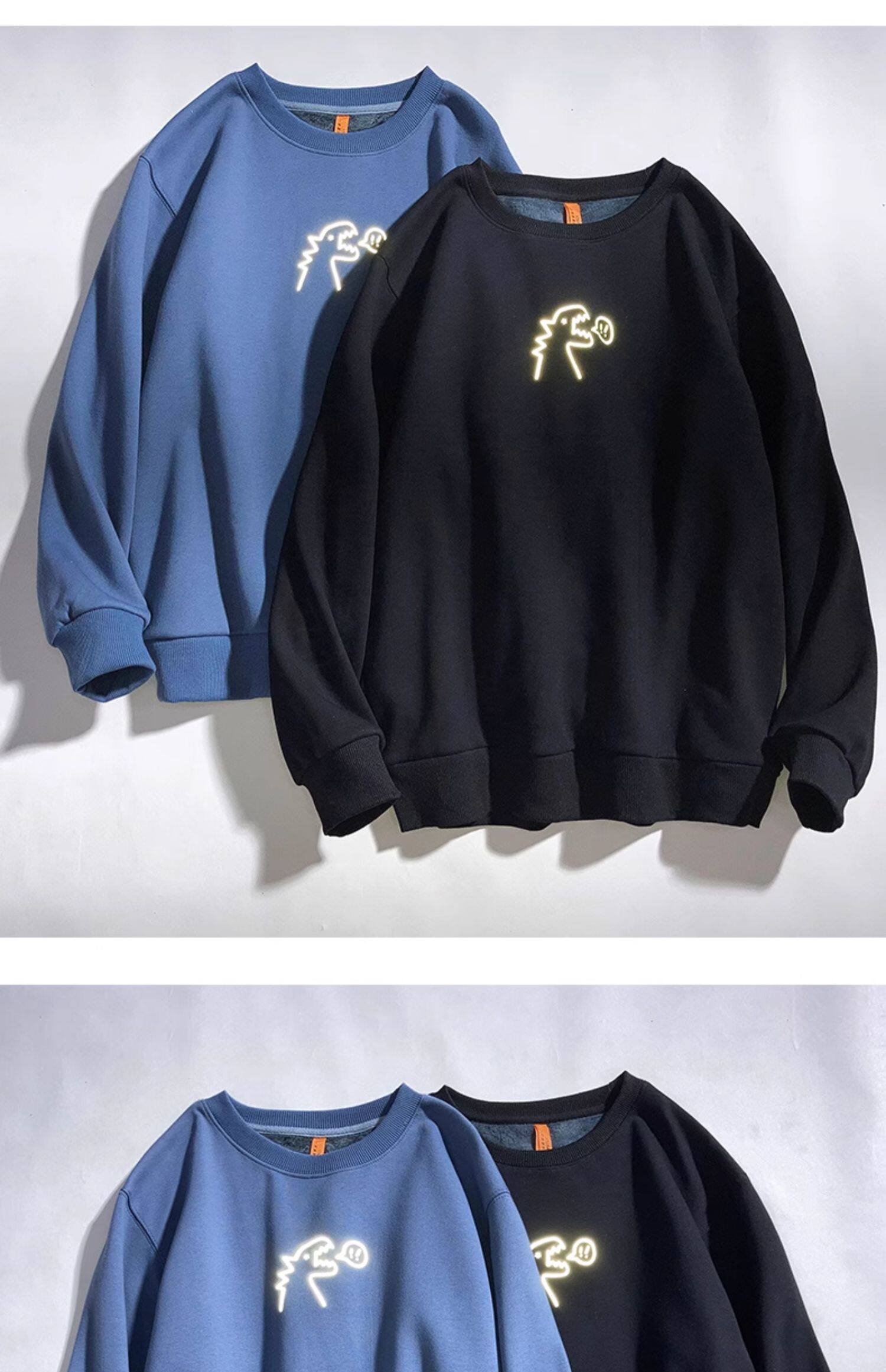 Милый динозавр, демисезонная удерживающая тепло трендовая светоотражающая мультяшная флисовая толстовка подходит для мужчин и женщин для школьников и студентов с круглым воротником, в корейском стиле