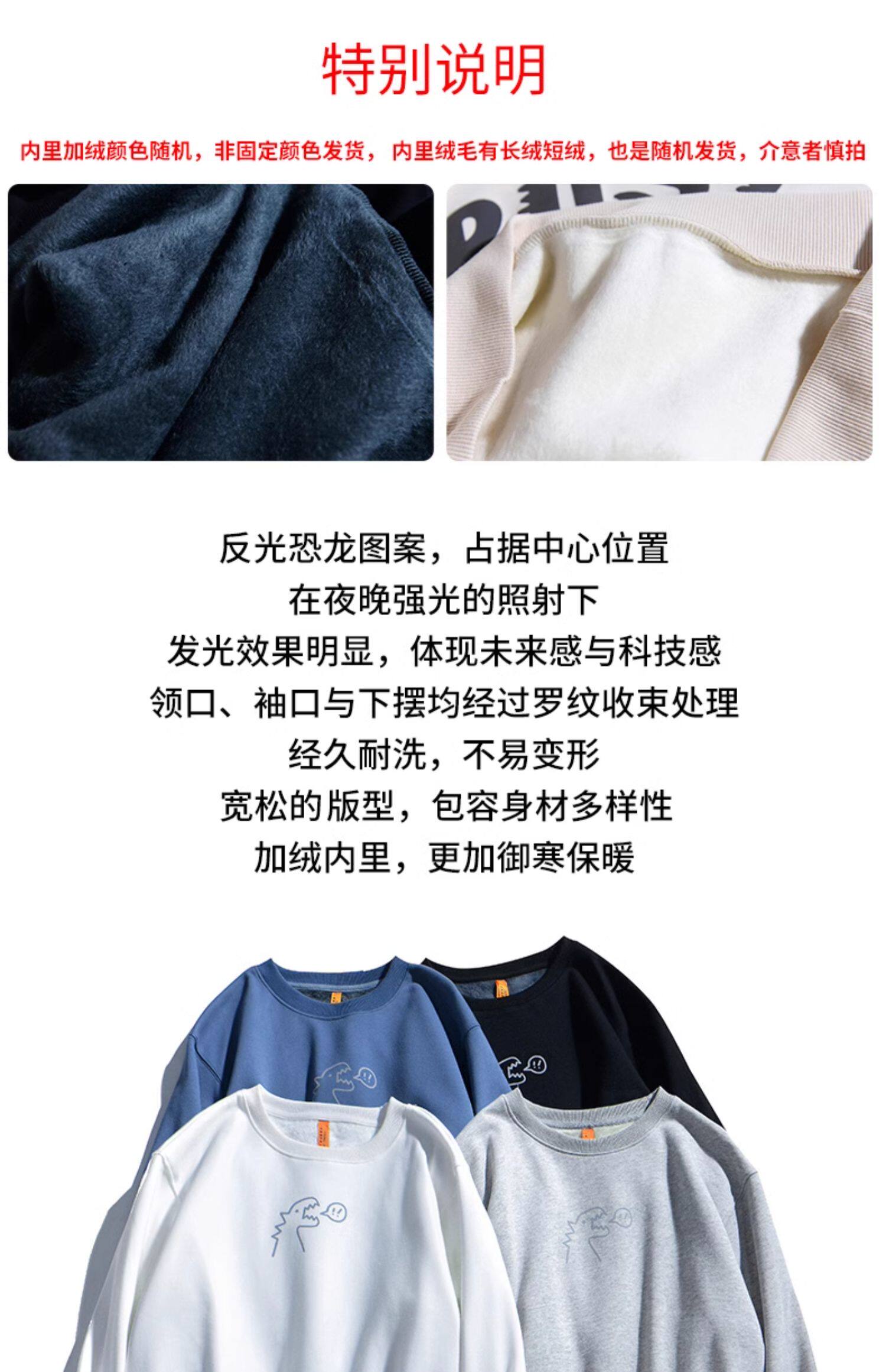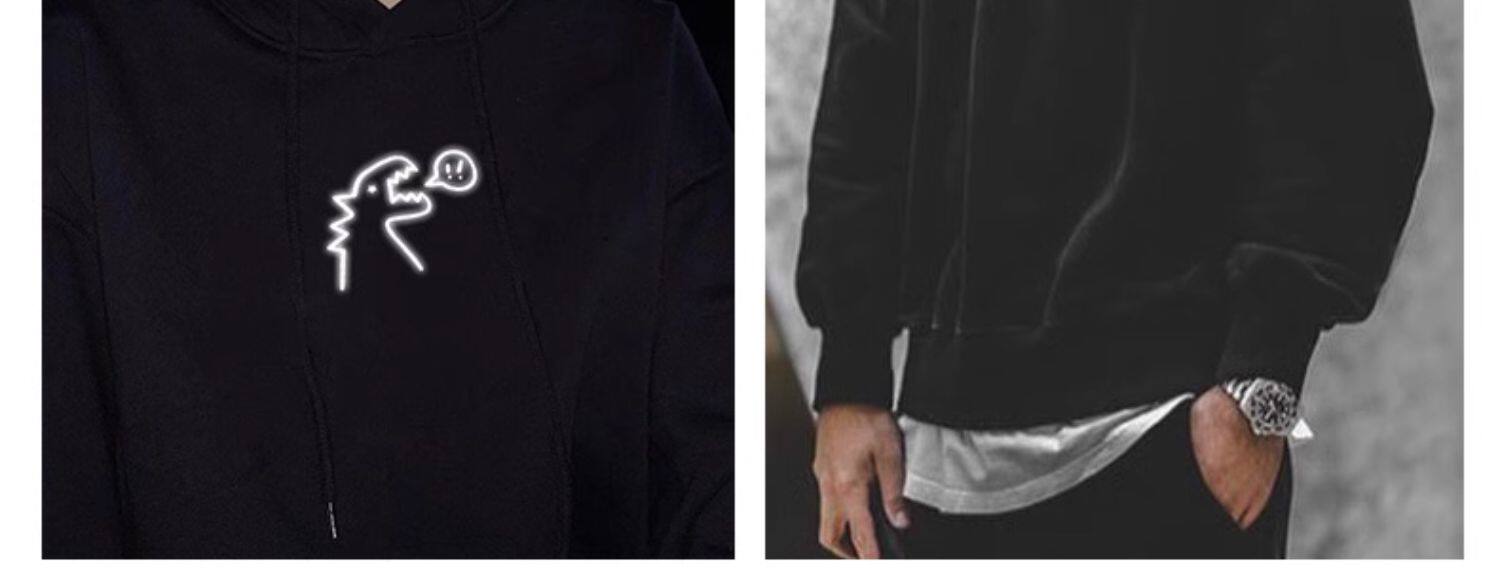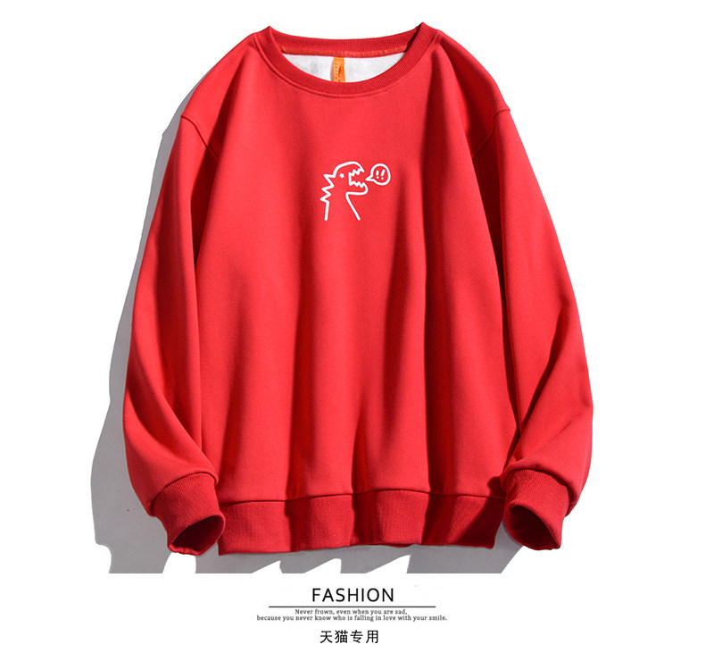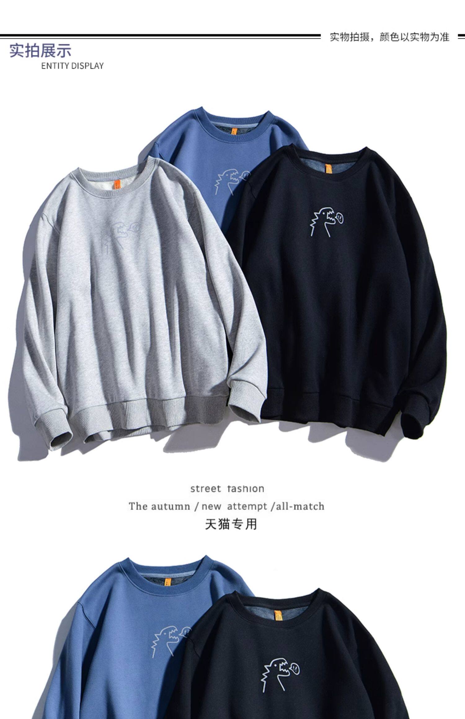 Милый динозавр, демисезонная удерживающая тепло трендовая светоотражающая мультяшная флисовая толстовка подходит для мужчин и женщин для школьников и студентов с круглым воротником, в корейском стиле