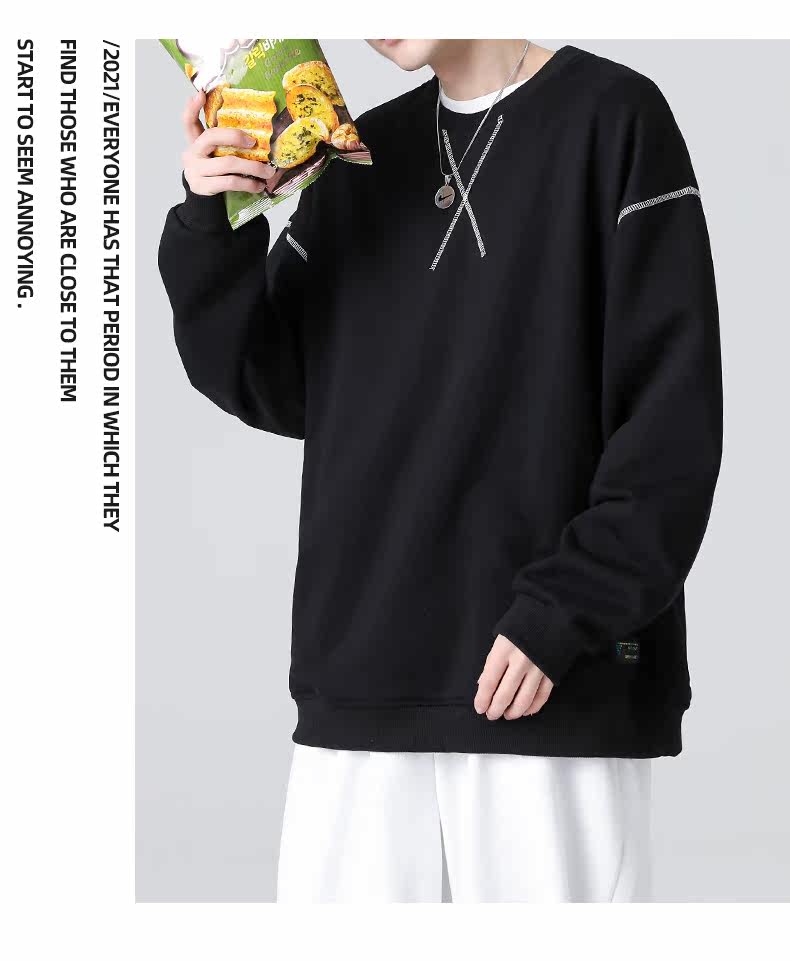 Трендовая универсальная осенняя толстовка с круглым воротником, мужская куртка для отдыха, оверсайз, коллекция 2021