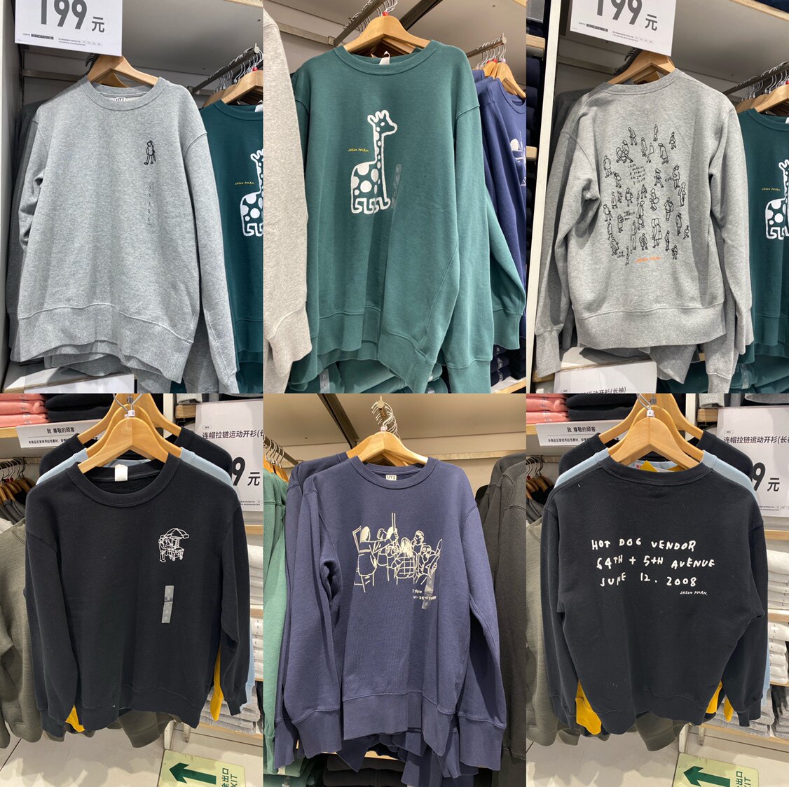 (Victopru) Uniqlo x Джейсон Полян Свитер Мужчина и Женщины Пара UT Подлинная иллюстрация круглый шея