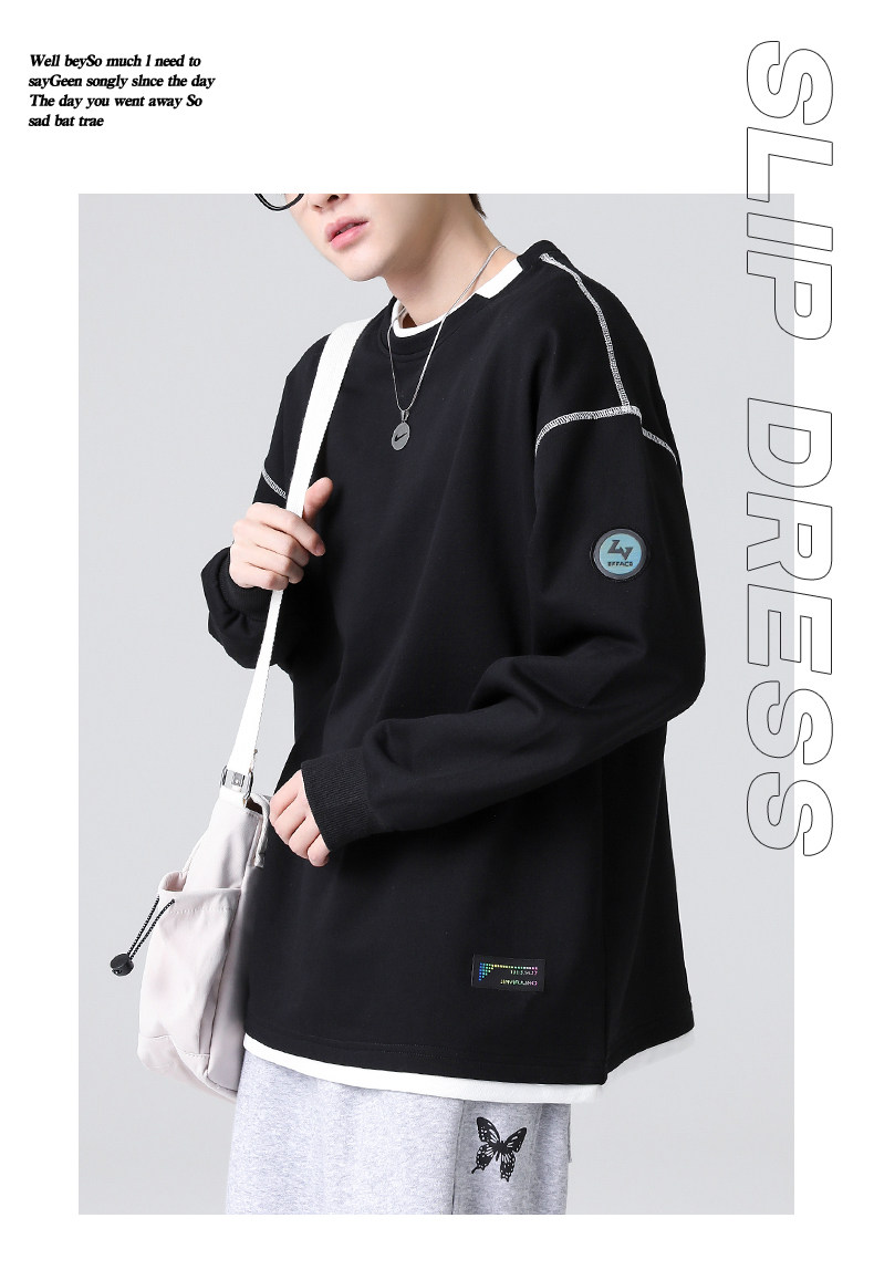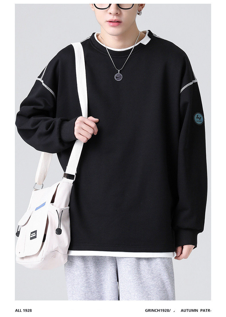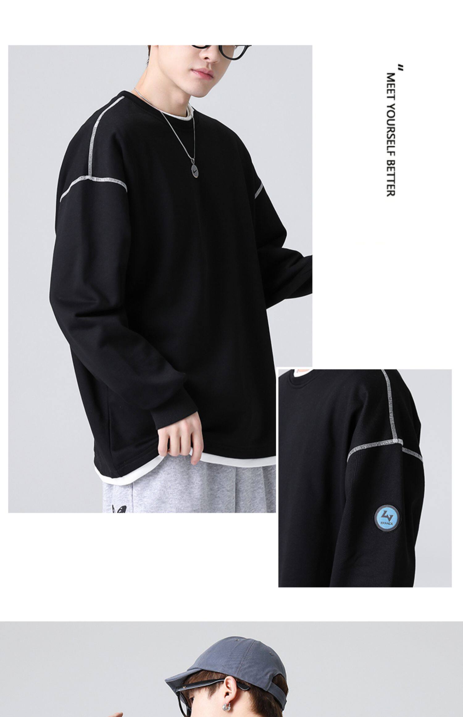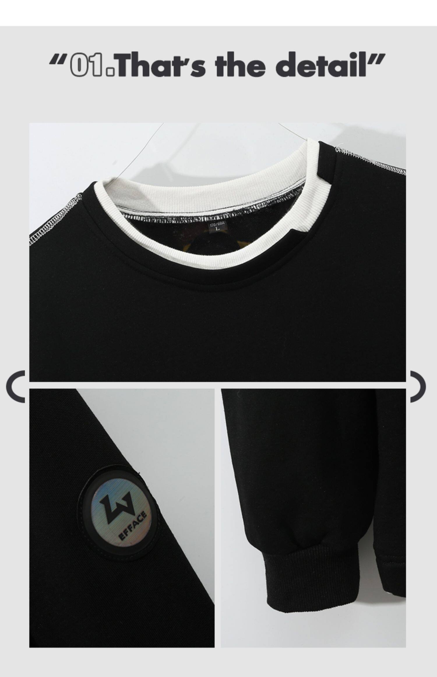 Черный комплект, демисезонная толстовка с круглым воротником, зимняя футболка, свободный крой, коллекция 2021
