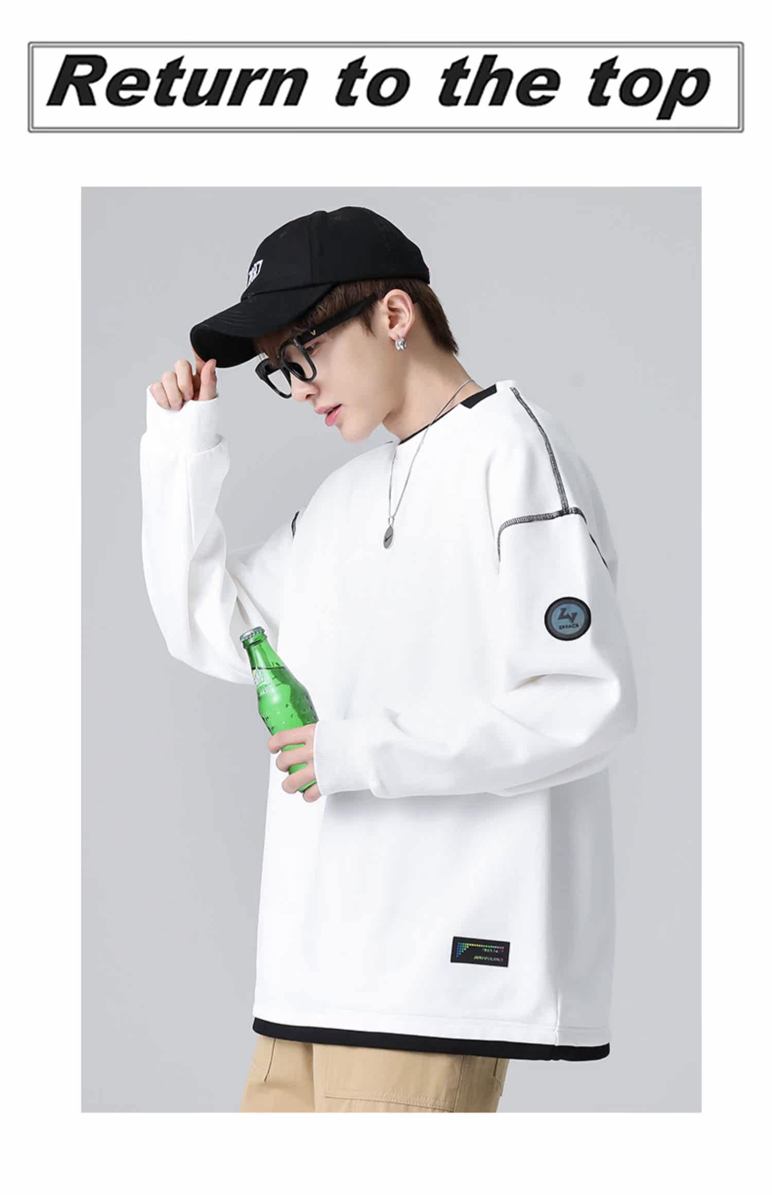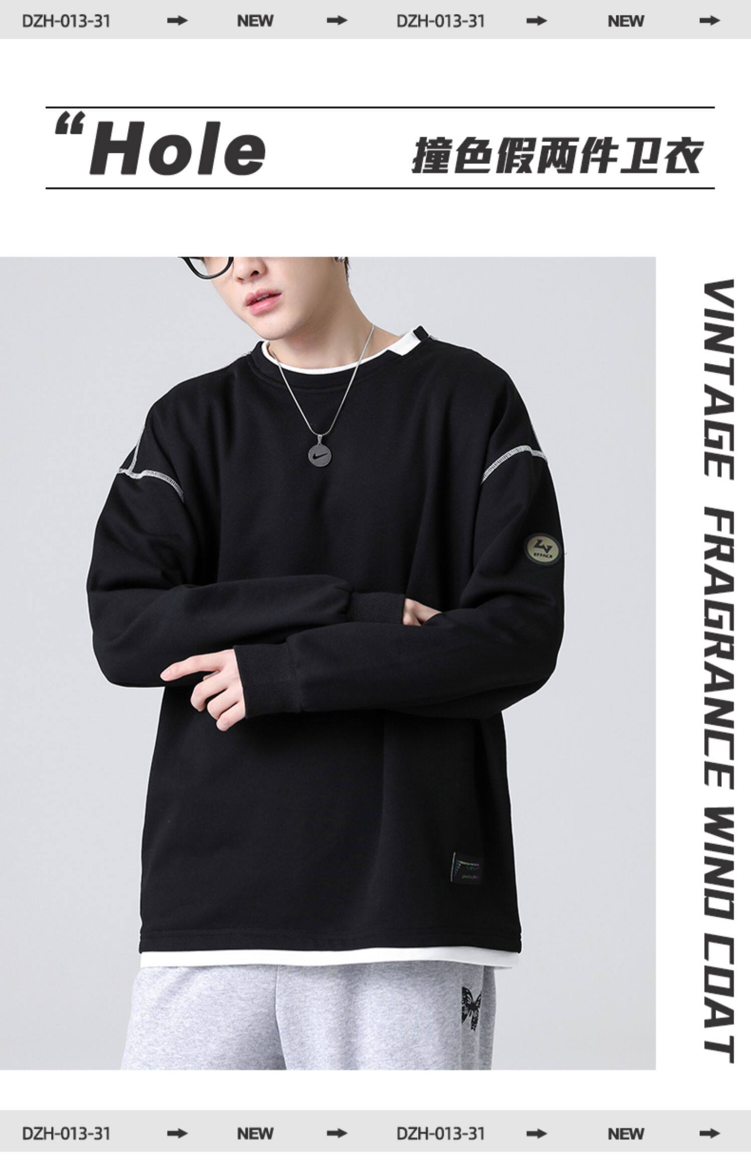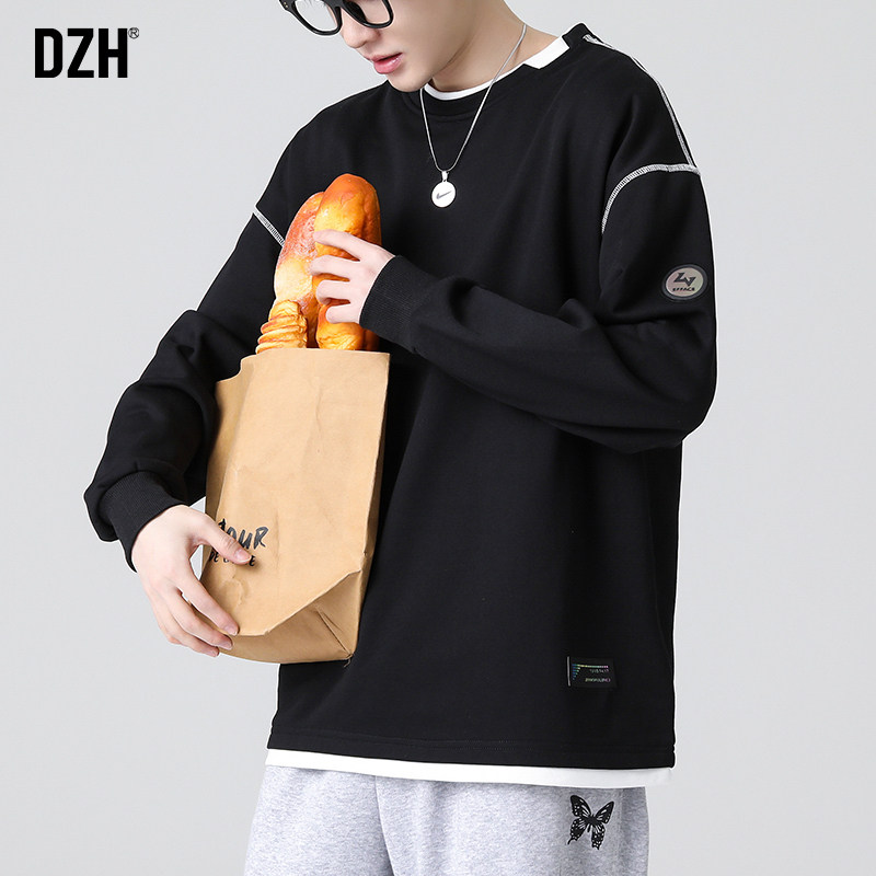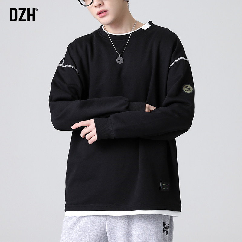 Черный комплект, демисезонная толстовка с круглым воротником, зимняя футболка, свободный крой, коллекция 2021