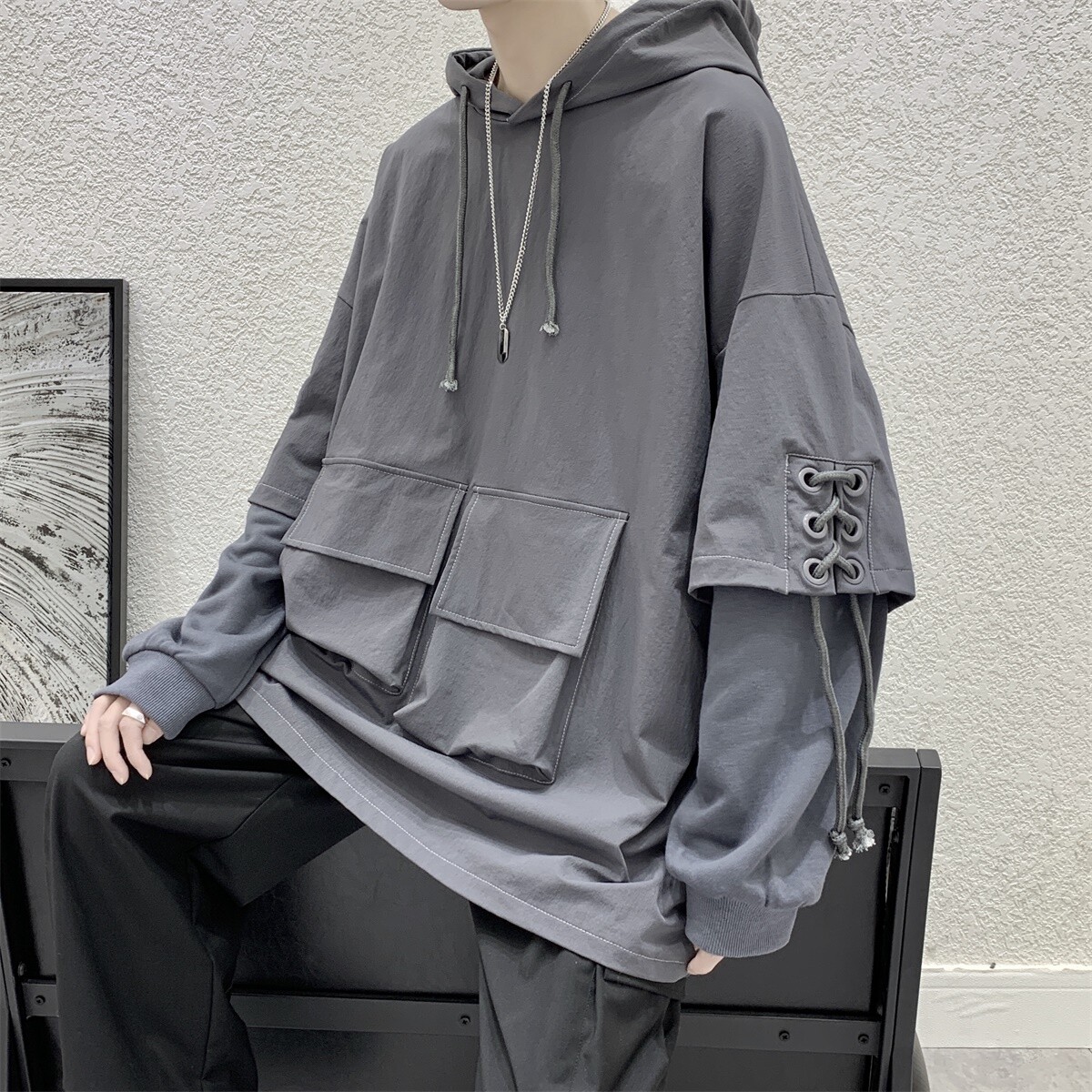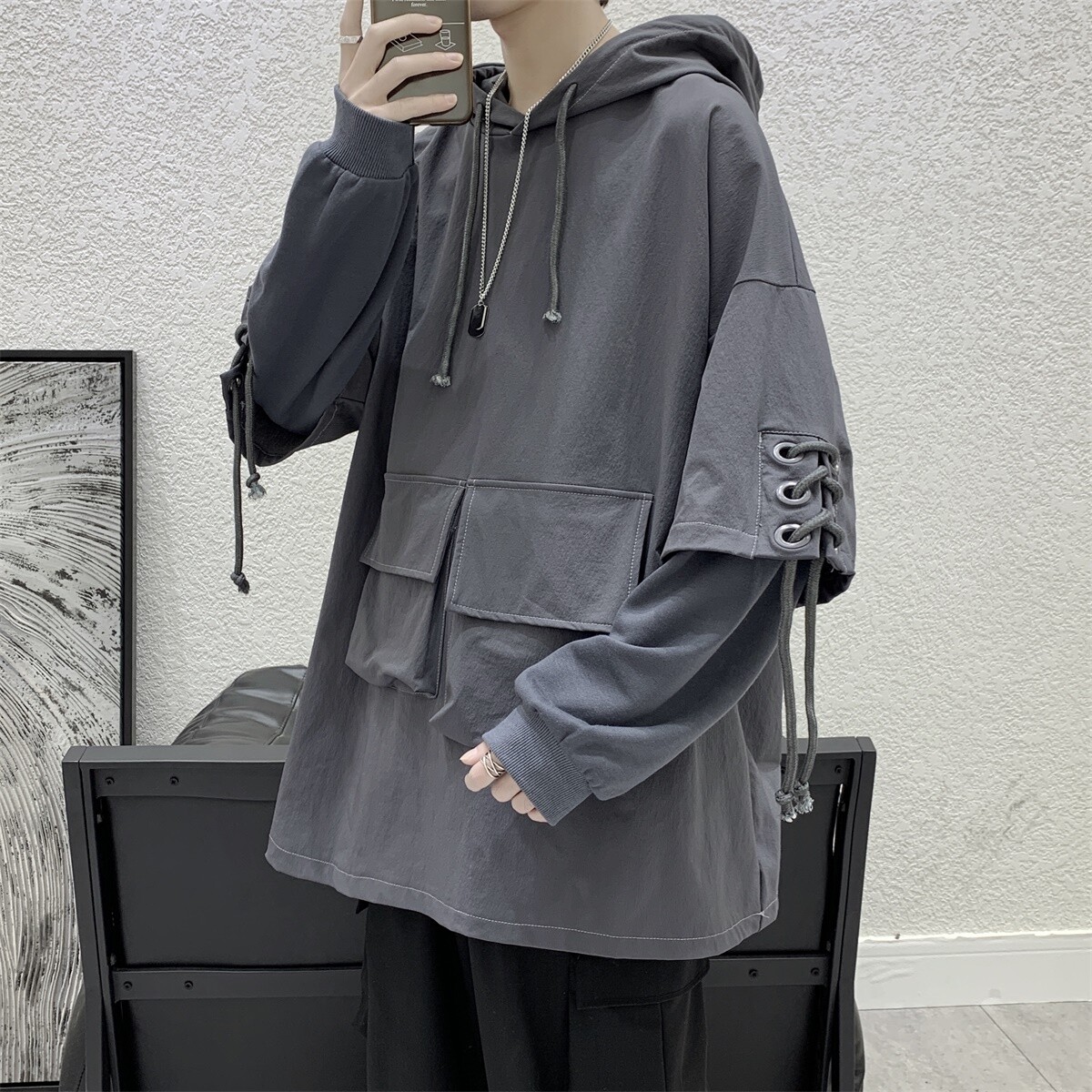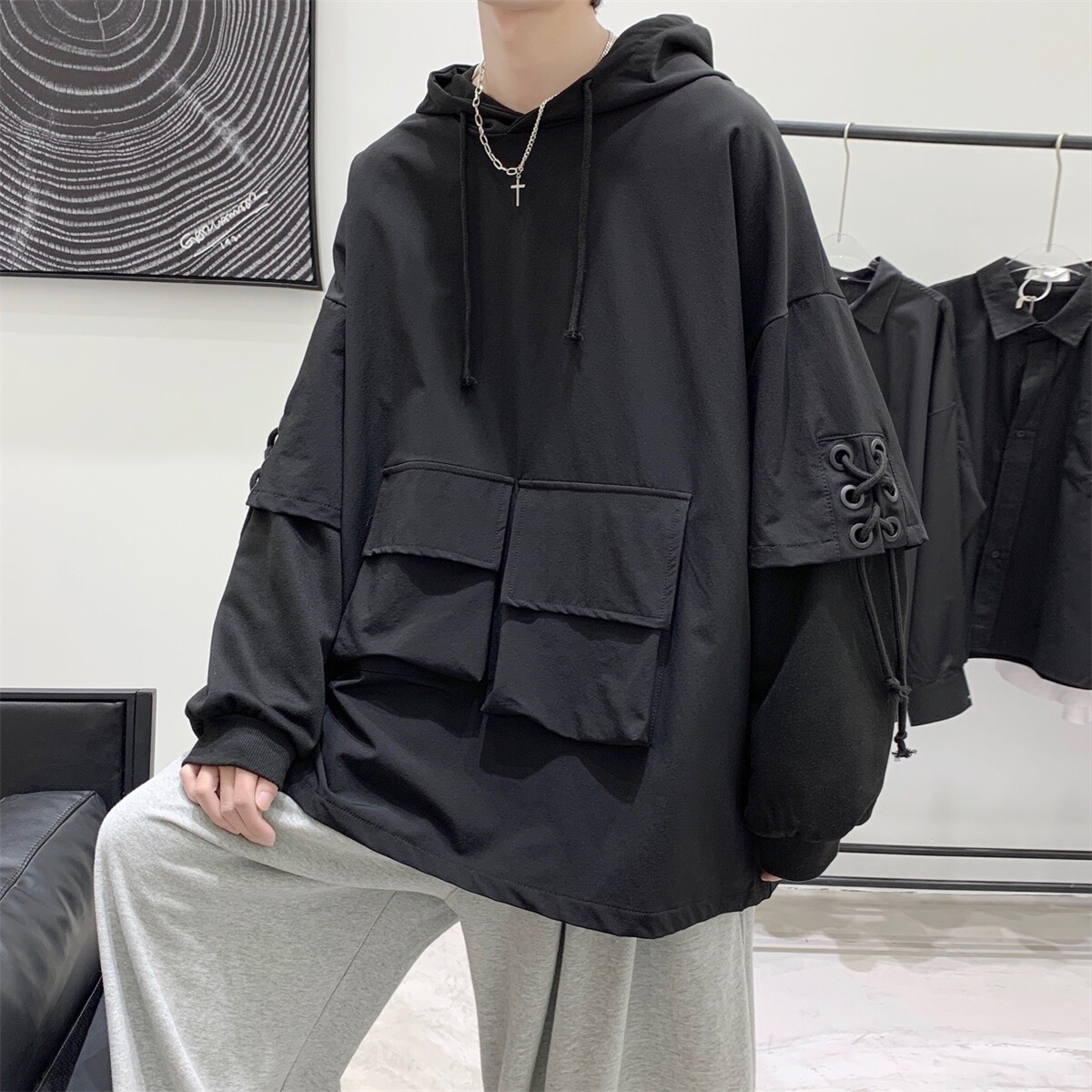 Комплект, осенняя толстовка с капюшоном, куртка, демисезонное термобелье, оверсайз