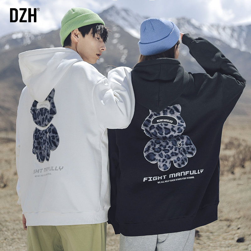 Брендовая парная одежда для влюбленных, бархатная зимняя толстовка с капюшоном, с медвежатами