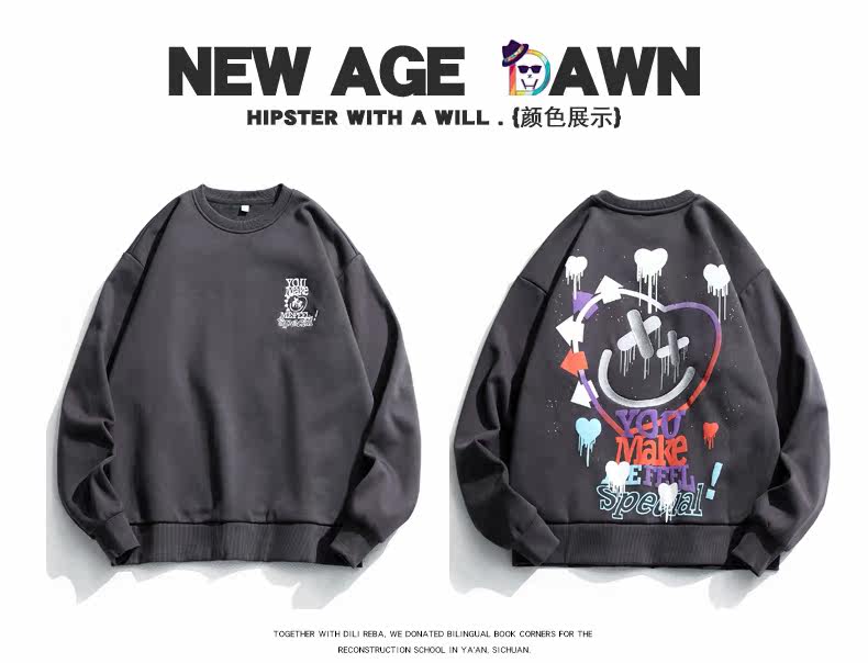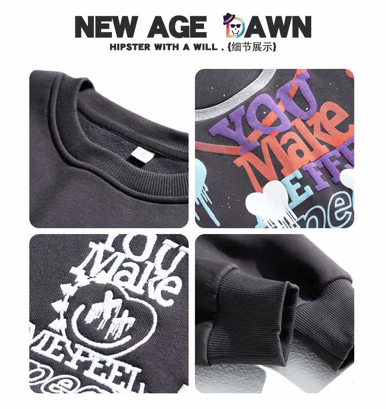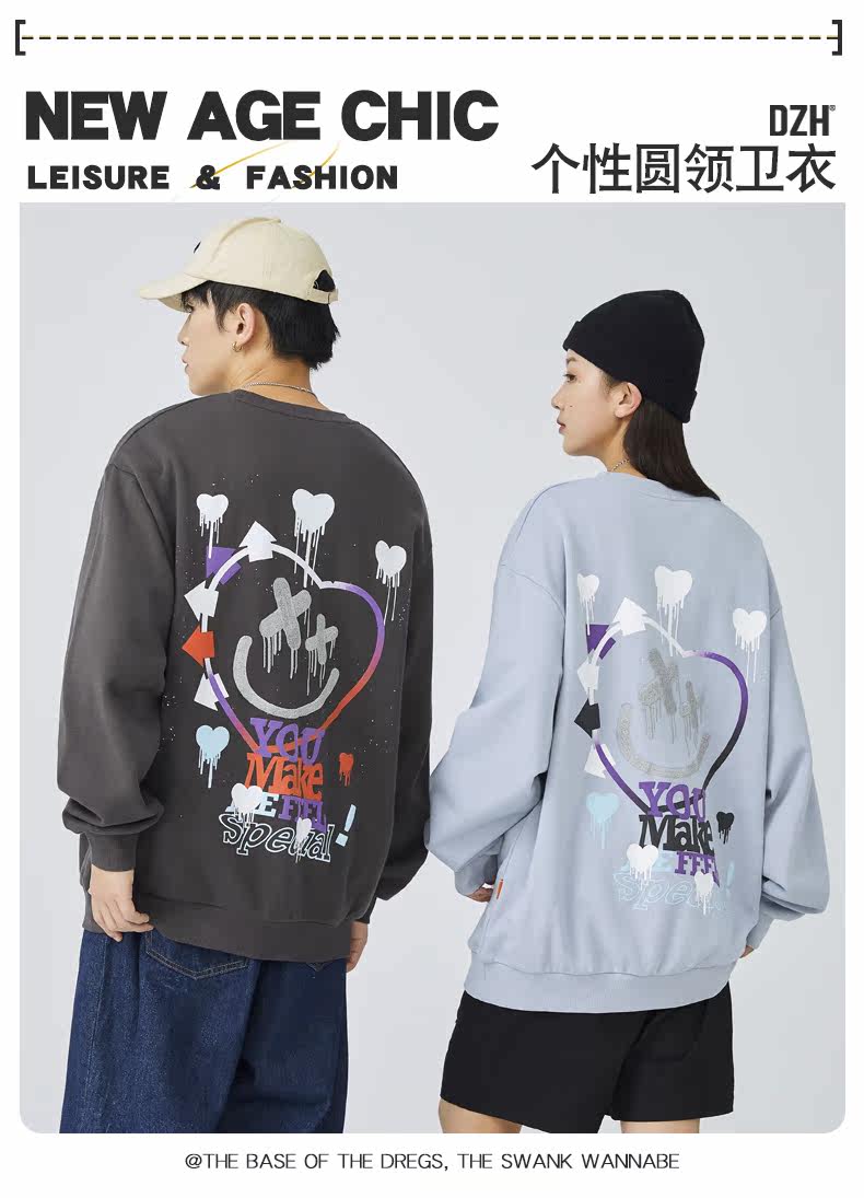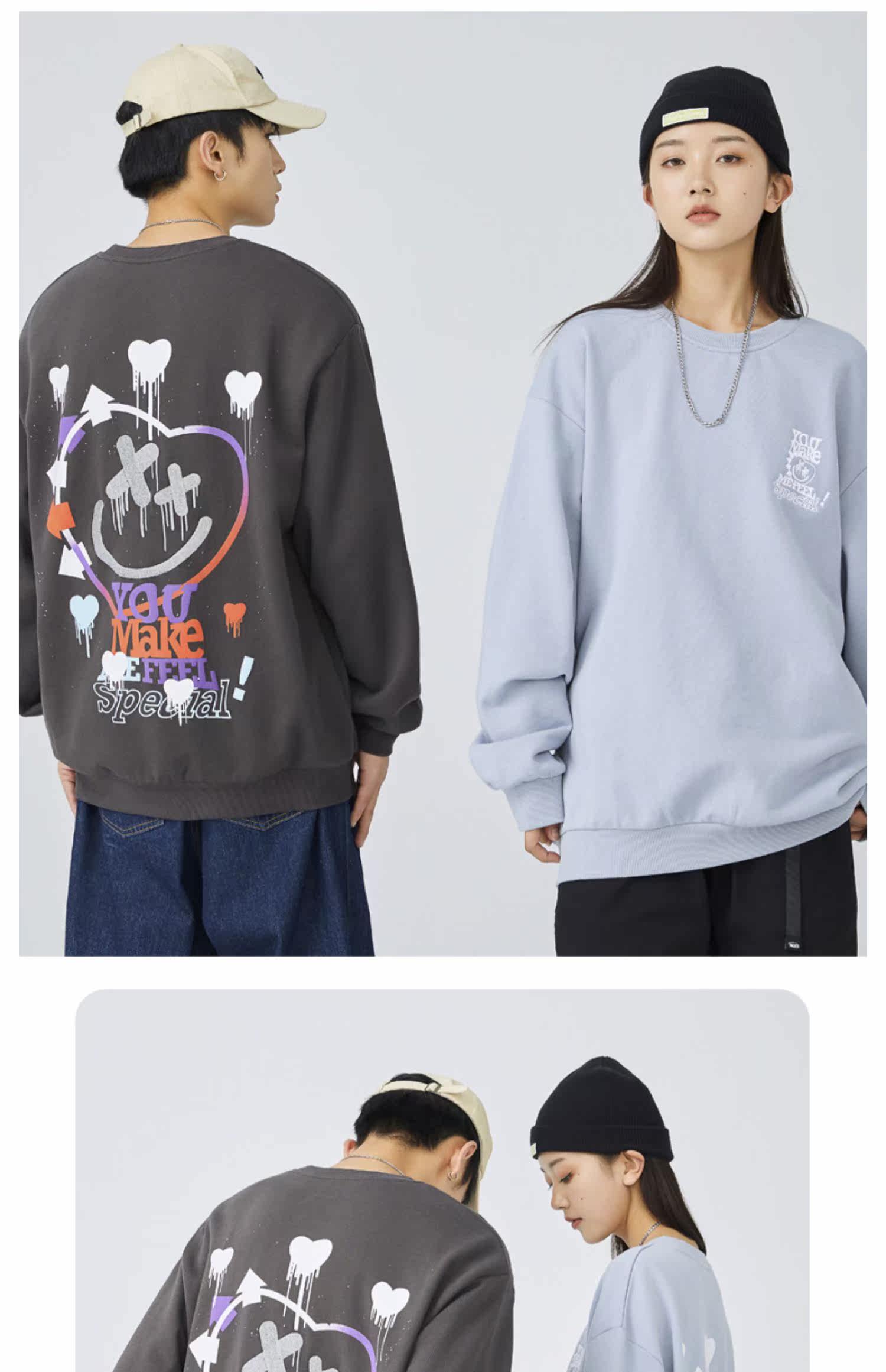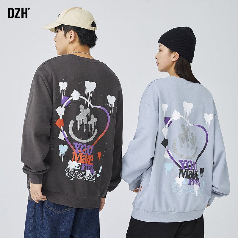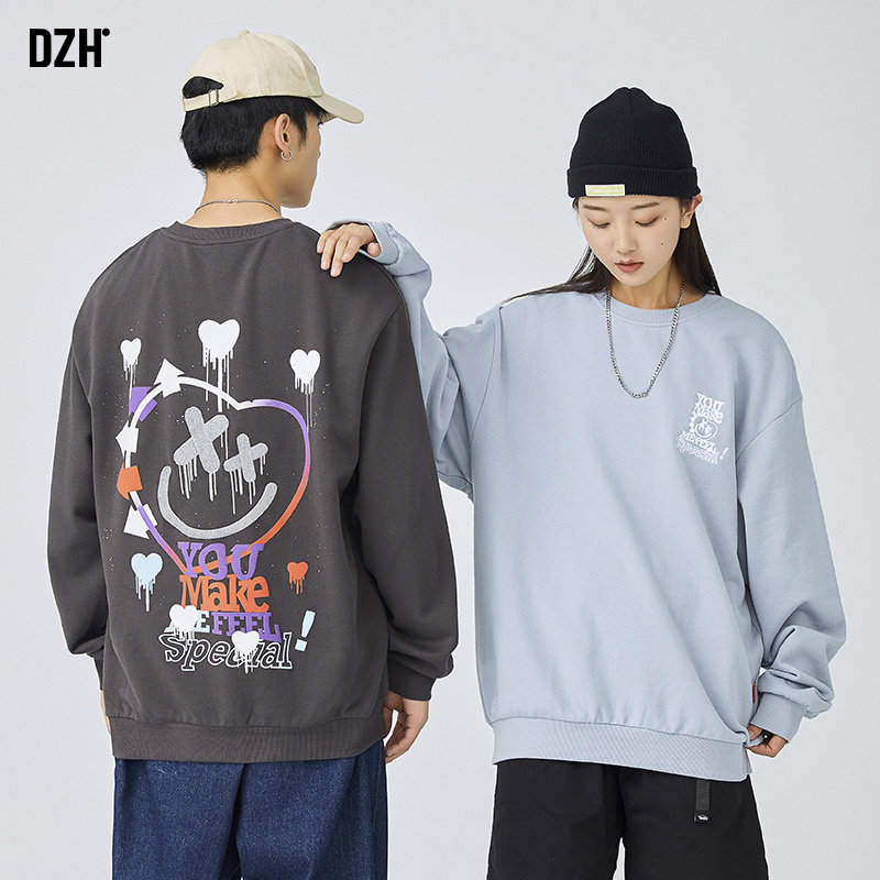 Хлопковая толстовка с круглым воротником, зимняя осенняя парная одежда, с вышивкой, оверсайз, коллекция 2021, для влюбленных
