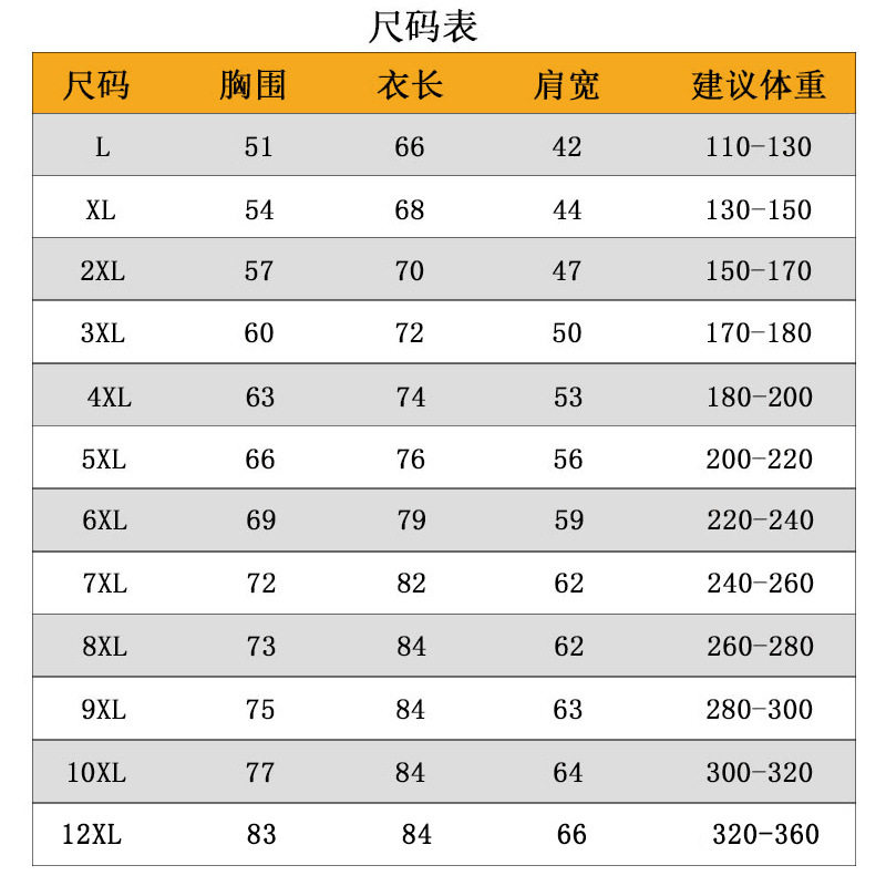 | Размер: | L (110-130 кот, XL (130-150 Catties), 2xl (145-170 Catties), 3xl (165-180 Catties), 4xl (175-200 кот), 5xl (195-220 Catties), 6xl (215-240 Catties), 7xl (235-260 Catties), 8xl (255-280 Catties), 9xl (275-300 Catties), 10xl (295-320 Catties), 12xl (320-360 Catties) |