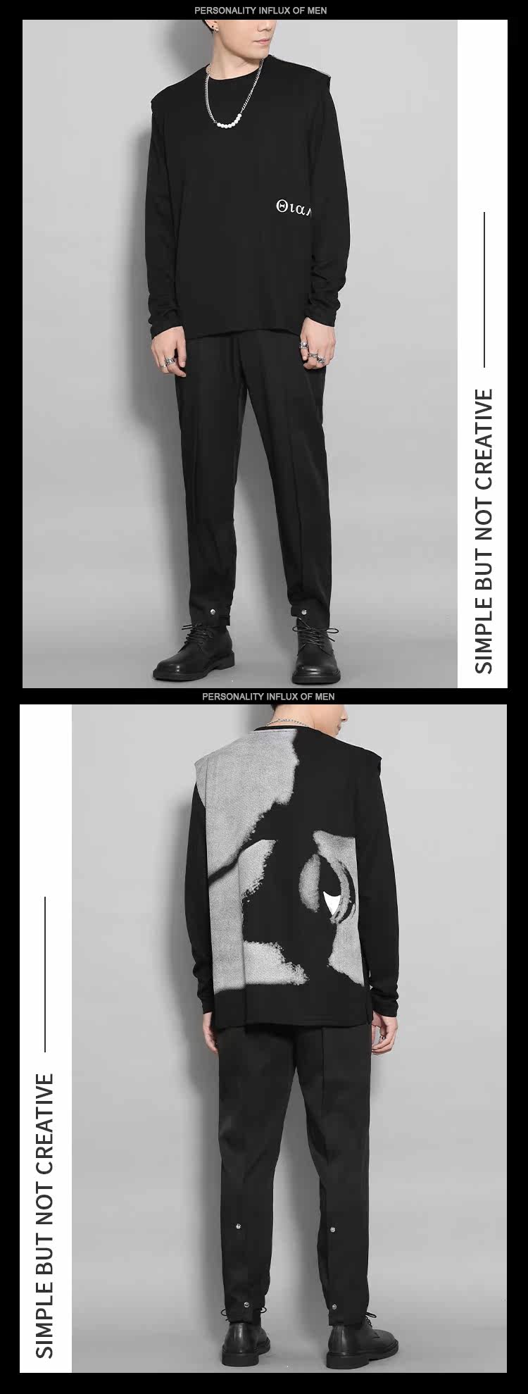 Оригинальный дизайнерский комплект, демисезонный осенний лонгслив с круглым воротником, в американском стиле