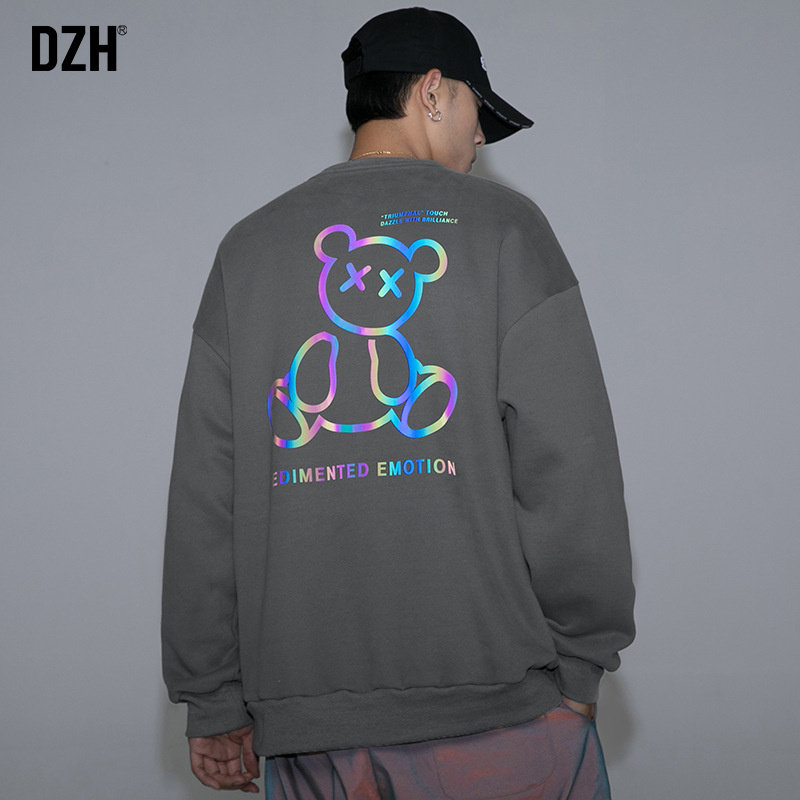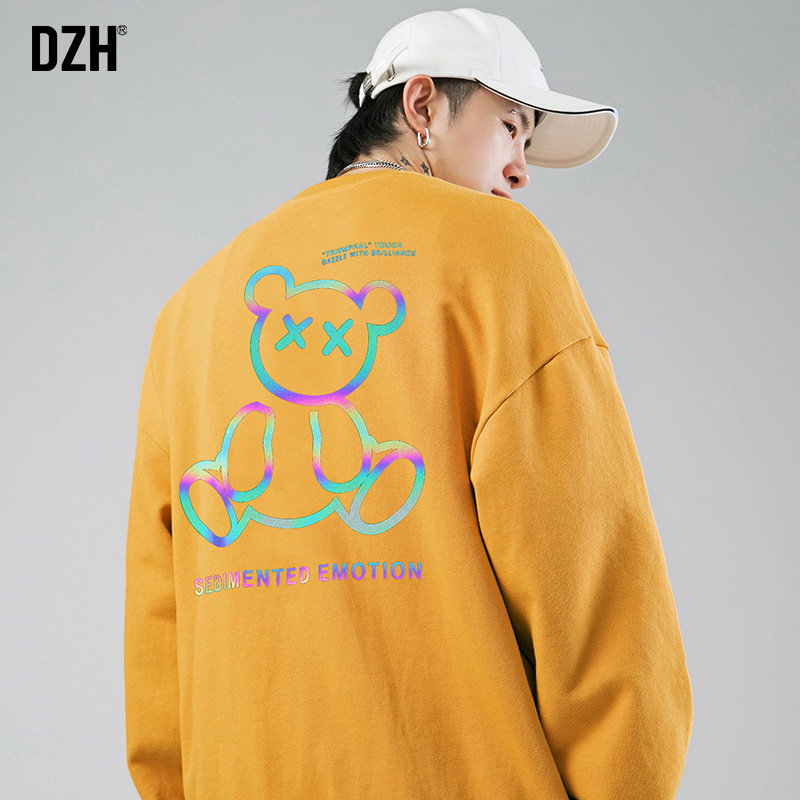 Tide, черный осенний светоотражающий лонгслив с круглым воротником, с медвежатами, коллекция 2021