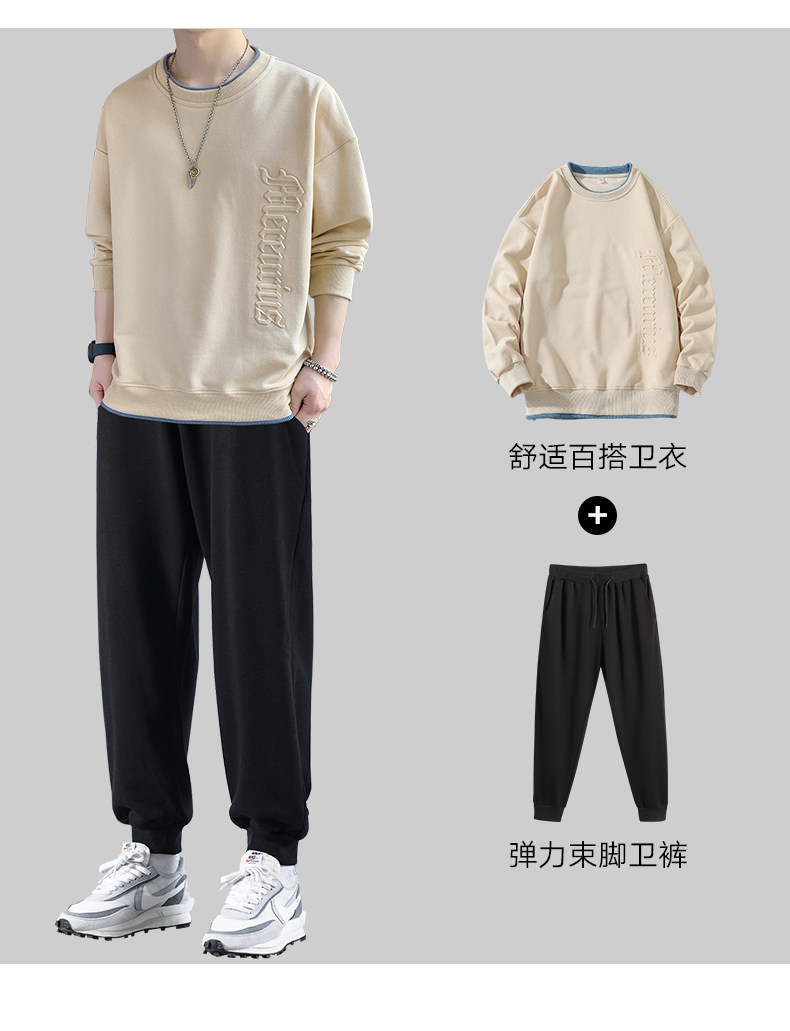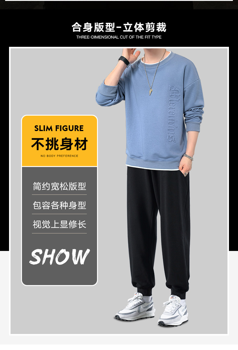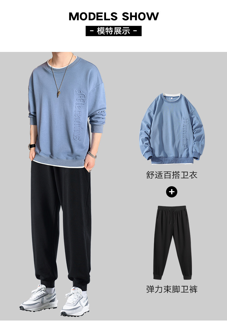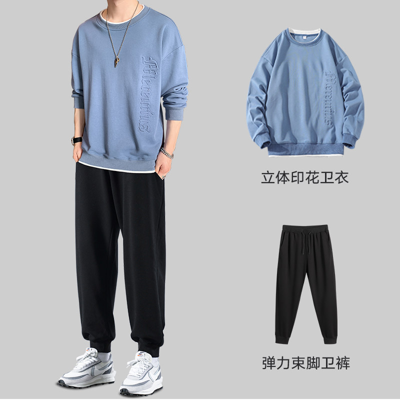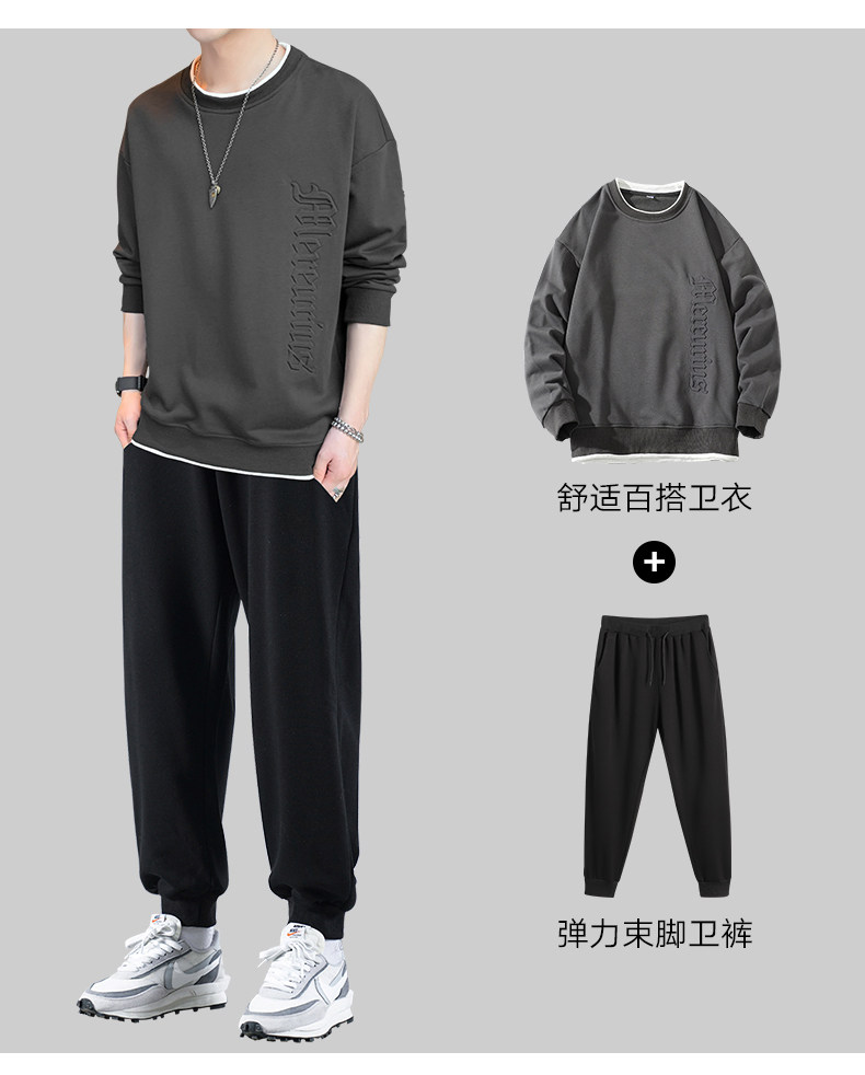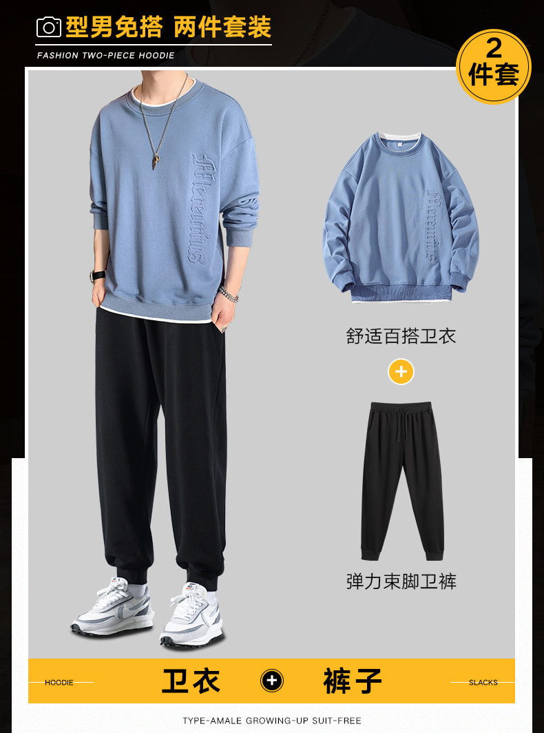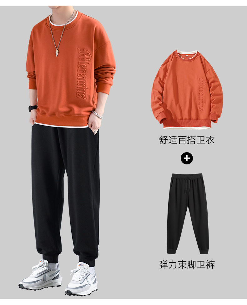 Мужской комплект, осенняя демисезонная трендовая спортивная толстовка с круглым воротником, коллекция 2021