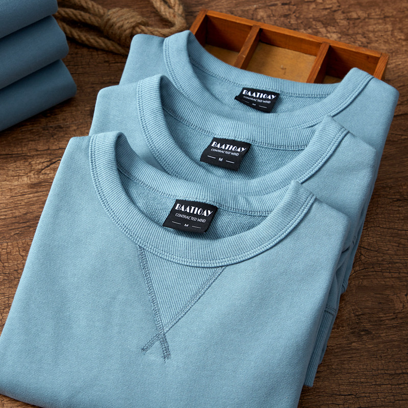 Хлопковая ретро толстовка, осенний лонгслив с круглым воротником, в американском стиле