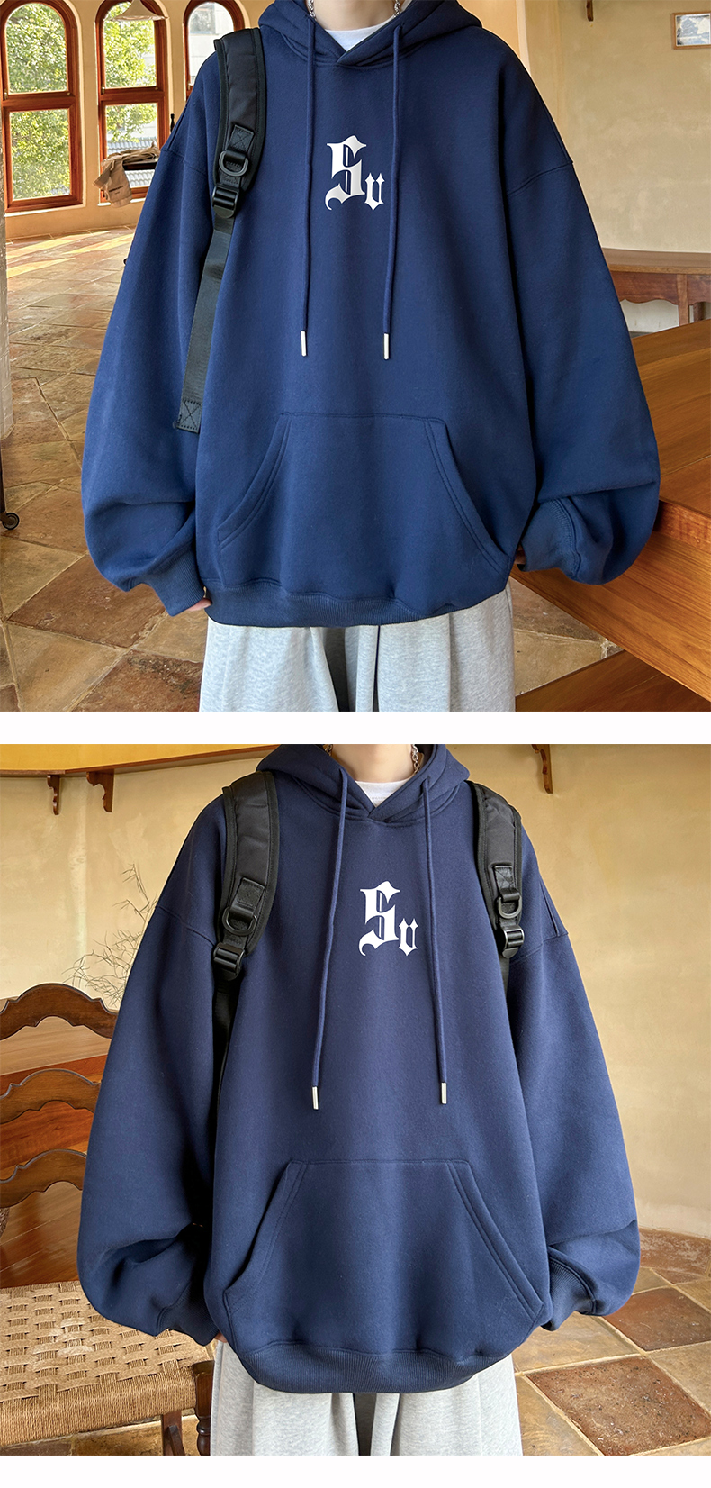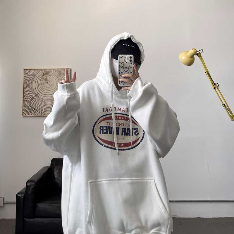 Ретро осенняя толстовка с капюшоном, большой размер, в американском стиле