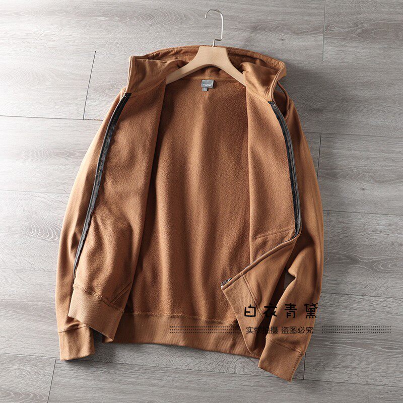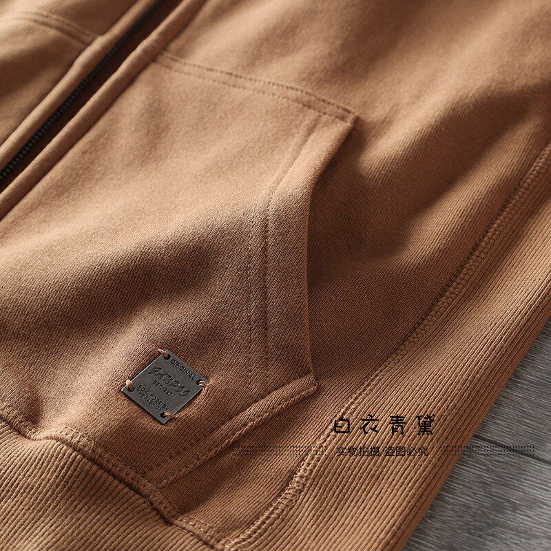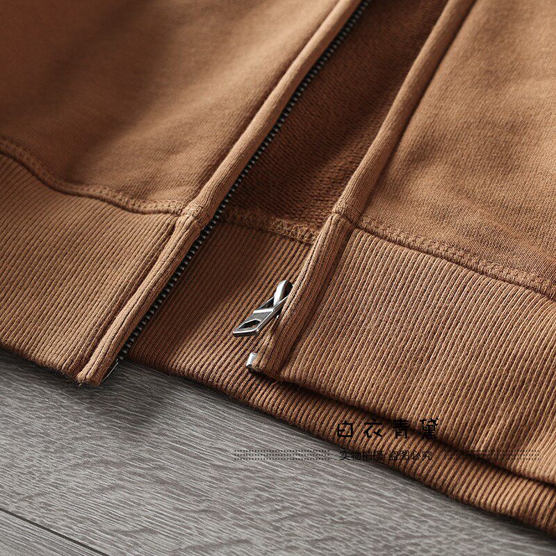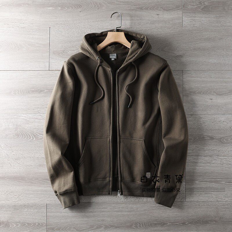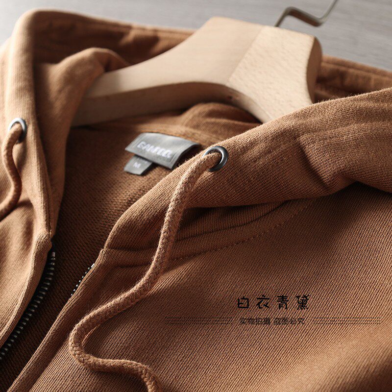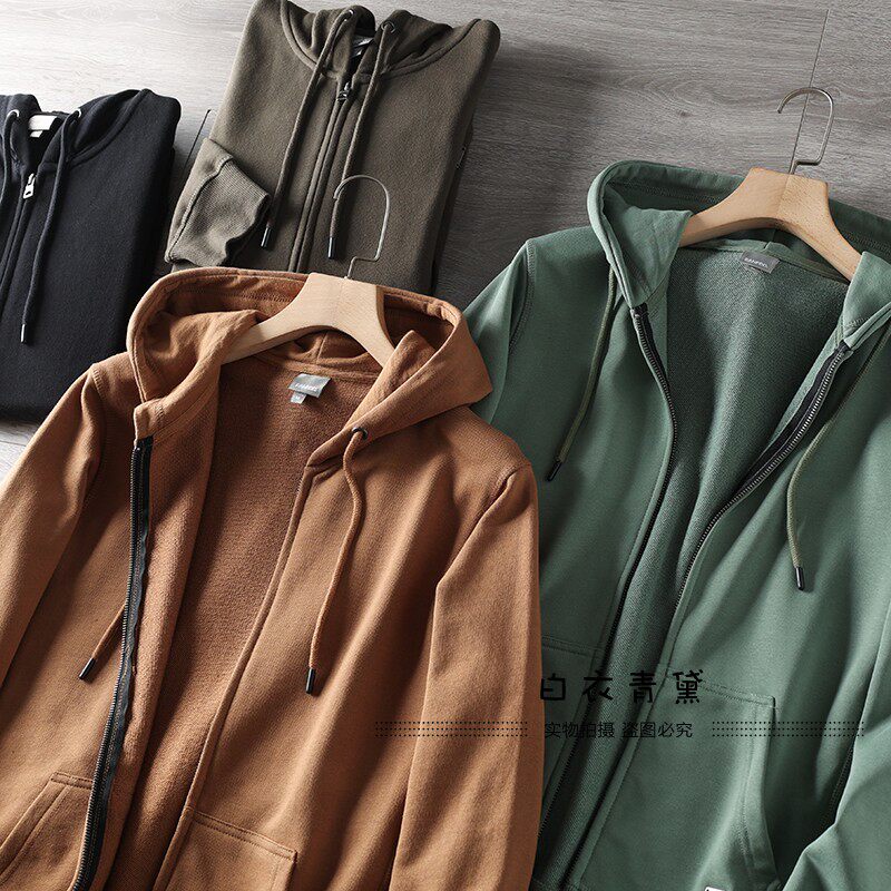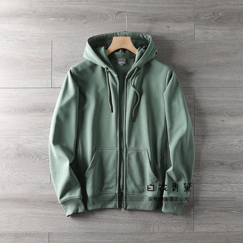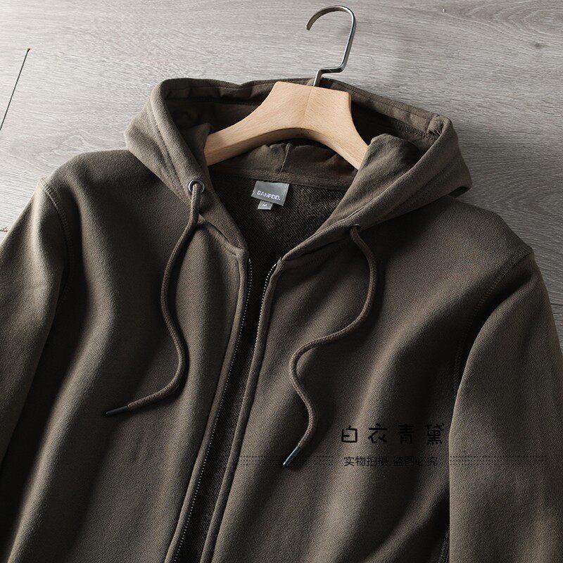 Купить товары Европейские и американские махровые толстовки с капюшоном из стираного хлопка для мужчин, спортивные и повседневные куртки-кардиганы, однотонные многофункциональные молодежные толстовки для мужчин