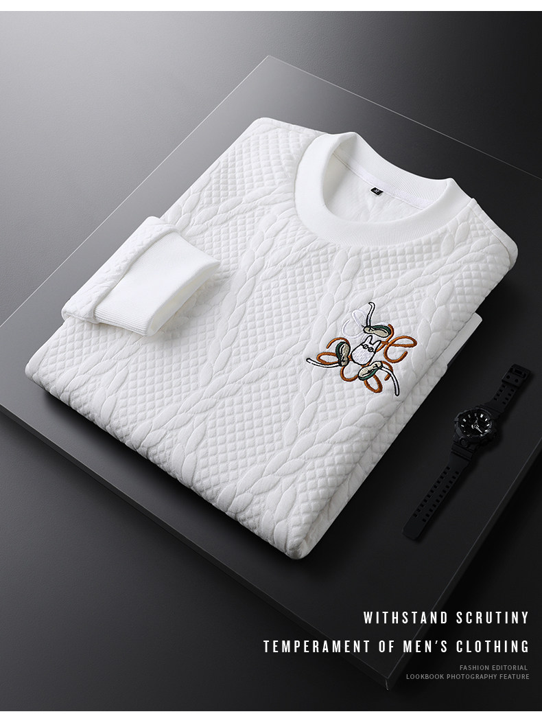 Cevleve Мужская белая трикотажная мягкая демисезонная удерживающая тепло толстовка с круглым воротником, коллекция 2023