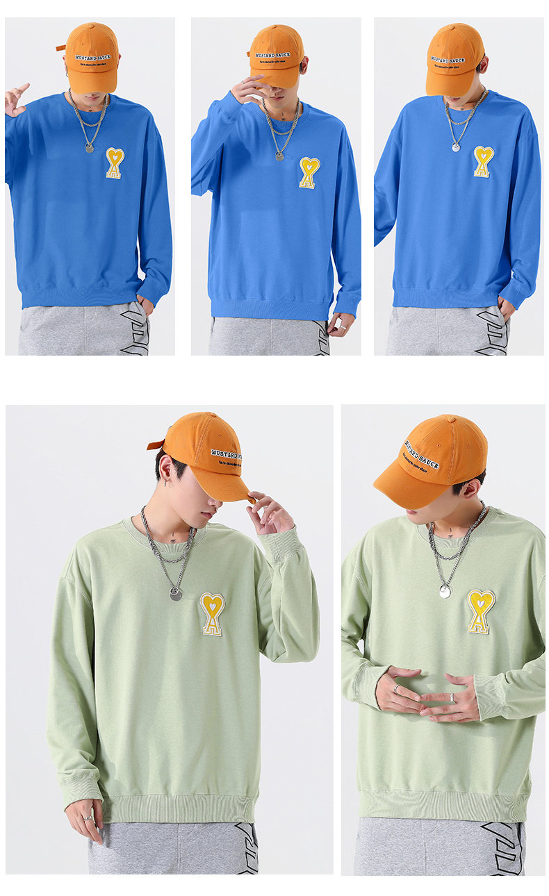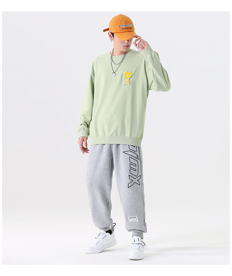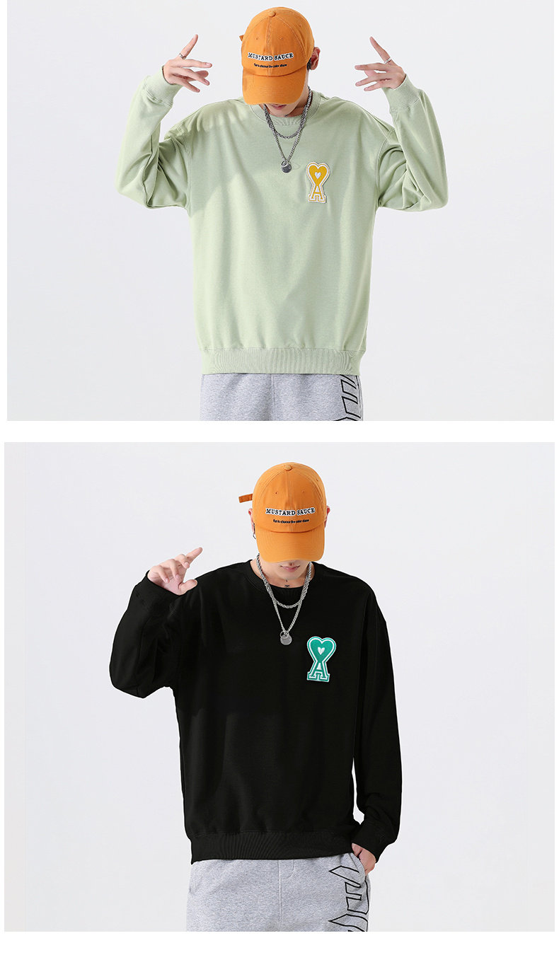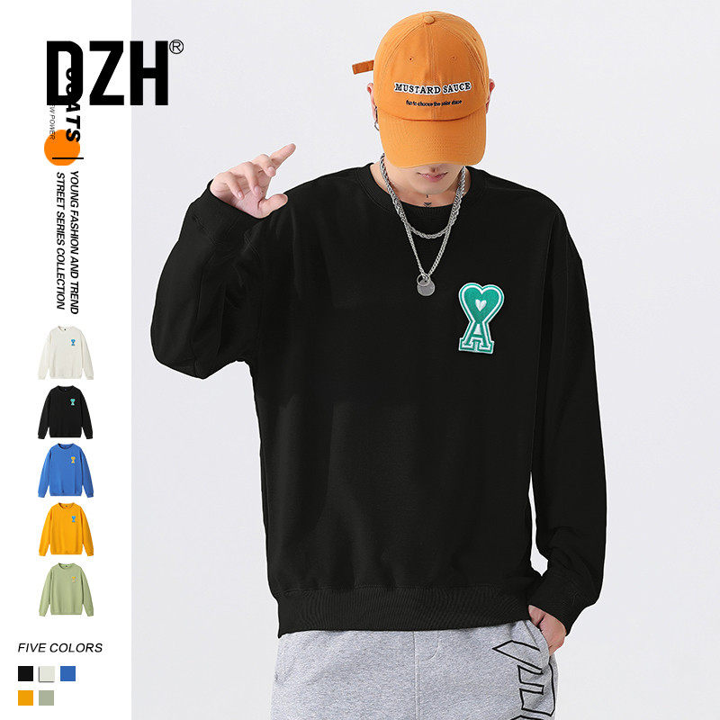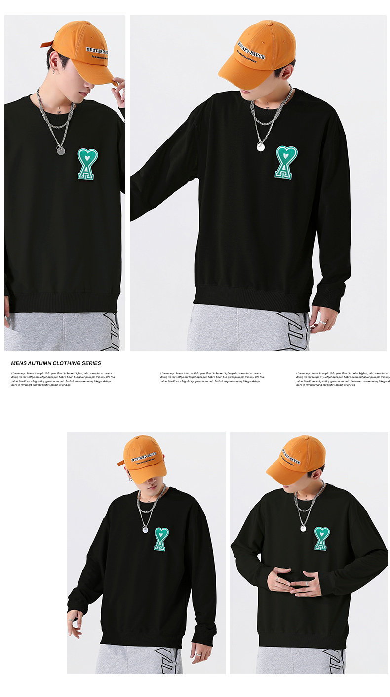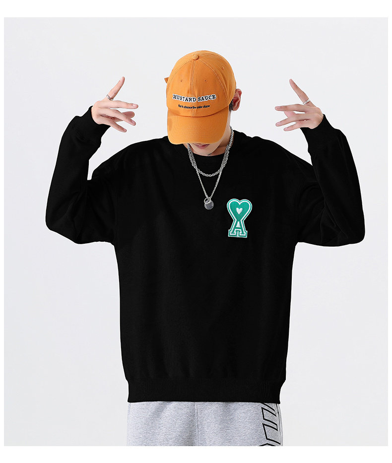 Черный демисезонный трендовый универсальный хлопковый свитшот с круглым воротником, в корейском стиле, для влюбленных, 2021 года